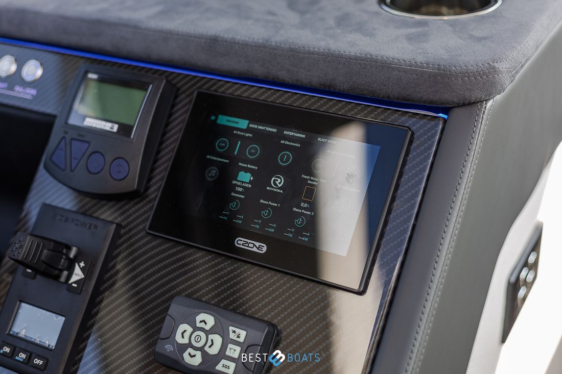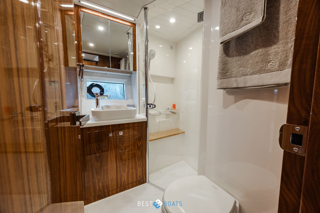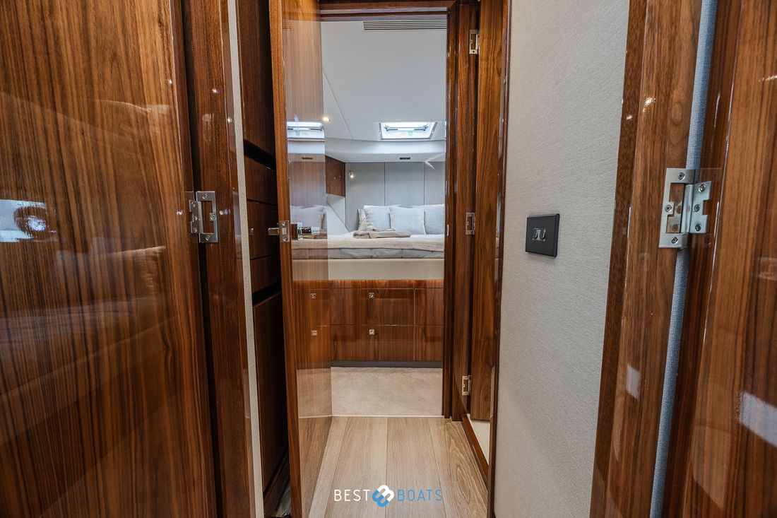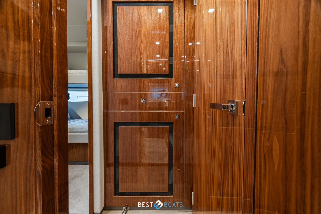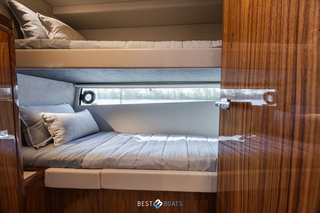 Ruimtes Salon Eethoek Machinekamer Hutten 3 Opmerkingen Hutten Het schip heeft drie indrukwekkende slaapkamers en twee badkamers. Alle kamers baden in natuurlijk licht door grote, getinte rompramen en de badkamers zijn luxueus afgewerkt met corian, porseleinen wastafel, een frame-loze glazen douche deur en teakhouten details. De eigenaarshut is achterin en heeft een groot vrijstaand tweepersoonsbed. Voorin heeft het schip een gastenhut waar een groot tweepersoonsbed staat en ook nog een hut met een stapelbed. Salon Indeling en verblijfsruimtes Met de natuurlijke licht inval, heeft het kombuis van uw 4600 SPORT YACHT-PLATIUM EDITION alle kenmerken van een design keuken waar u heerlijk kan koken. In de salon bevindt zich een luxe U-vormige lounge-eethoek met een massief houten klaptafel waaraan u kunt dineren met familie en vrienden. Aankleding Type interieur Modern, houtlook Opmerkingen Type interieur Vloer kleur is Blonde Lime Oak Kleur stoffering wit Matrassen Kussens Gordijnen Water Watertank & materiaal Inhoud 620 liter Materiaal watertank kunststof Watertankmeter Inhoud 151 liter Materiaal vuilwatertank kunststof Vuilwatertank & materiaal Vuilwatertankmeter Vuilwatertank afvoerpomp Dekafzuiging vuilwater Watersysteem Pressure system Opmerkingen Watersysteem Hydrofoor. Warm water Opmerkingen Warm water Boiler 45 liter, wordt verwarmd middels 220 volt van de walstroom of generator. dekwaspomp buitendouche Sanitair Aantal douches 2 Opmerkingen Aantal douches Douchecabine met glazen scheidingswand. Toiletten 2 Opmerkingen Toiletten Sanitation ( Vacuflush) incl. vuilwaterpomp voor leidigen tank. Vacuum Entertainment TV Opmerkingen TV Entertainmentpakket omvat: Master stateroom - 32'' LED TV, All-In-One Stereo, Bluetooth/AM/FM Stereo met ingebouwde speaker Salon - 43" LED TV op elektrische lift, Fusion Apollo 770 Stereo met FM, Bluetooth, Airplay en Partybus, 4 x speakers en subwoofer in salon met 4 x 6,5" JL Audio speakers en afstandsbediening naar cockpit Forward Deck - Extra zone buiten salon systeem inclusief twee speakers (bediend vanuit salon, cockpit of Fusion-Link App) Vertaald met DeepL.com (gratis versie) Radio/CD-speler Opmerkingen Radio/CD-speler Fusion DVD-speler Blu-rayspeler Keuken Kooktoestel & brandstof Opmerkingen Kooktoestel & brandstof Inductie Aantal 2 Kookbrandstof elektrisch Oven Opmerkingen Oven Combi oven/magnetron. Aantal 1 Magnetron Opmerkingen Magnetron Combi oven/magnetron. Aantal 1 Koelkast & voeding Opmerkingen Koelkast & voeding een koelkast en vrieskast in de keuken, bij de buiten keuken eveneens een koelkast Inhoud Koelkast 150 liter Voeding elektrisch Vriezer Inhoud Vriezer 50 liter Klimaatregeling Verwarming 1 CV Opmerkingen Verwarming Het jacht wordt uitgevoerd met een Webasto syteem: Webasto heating system - Burner/heater – Webasto Thermo Top Pro 120, 24V Blower/heat exchanges 2 x BB4 for Saloon / Galley 1 x BB4 for Fwd Cabin / Head 1 x BB4 for Port Cabin / Companionway 1 x BB4 for Aft Cabin / Head Airconditioning Opmerkingen Airconditioning - Condensors - 1 x 24.000BTU, 1 x 12.000BTU, 1 x 12.000BTU - Luchtbehandelingskasten: - 2 x 12.000BTU (salon/keuken) - 1 x 12.000BTU (eigenaarshut & ensuite) - 1 x 6.000BTU (bakboord hut) - 1 x 8.000BTU (voorkajuit & stbd hoofd) Merk airconditioning Dometic -