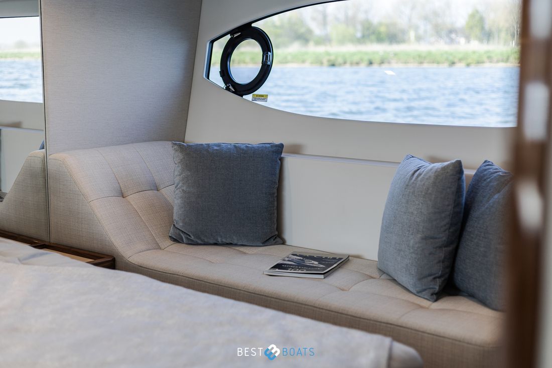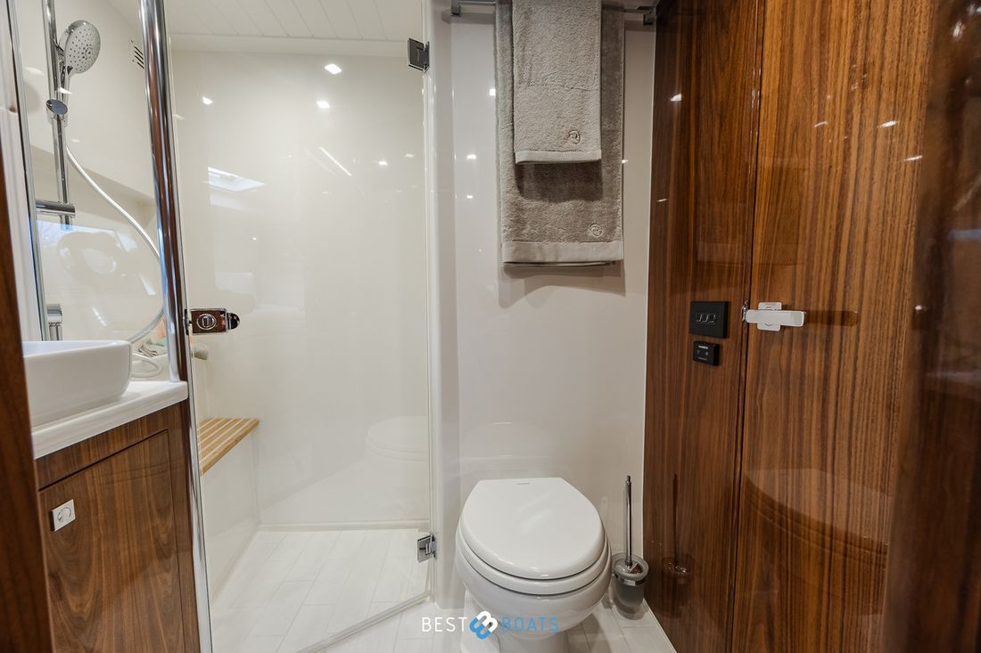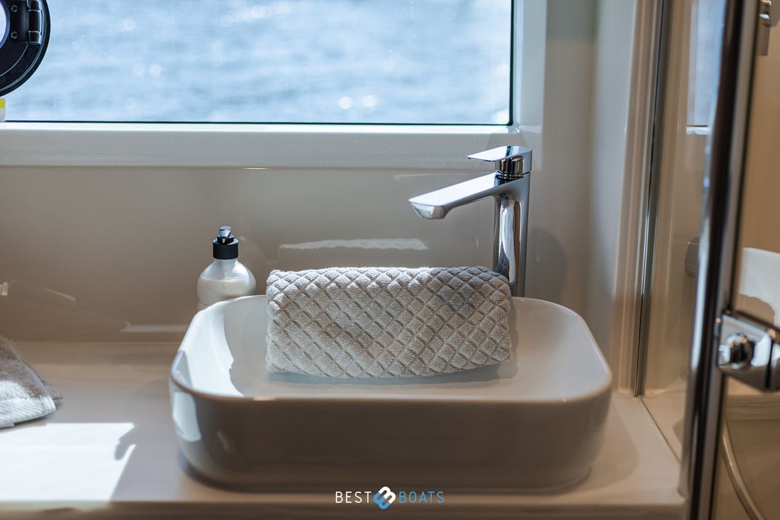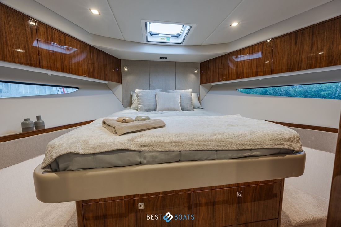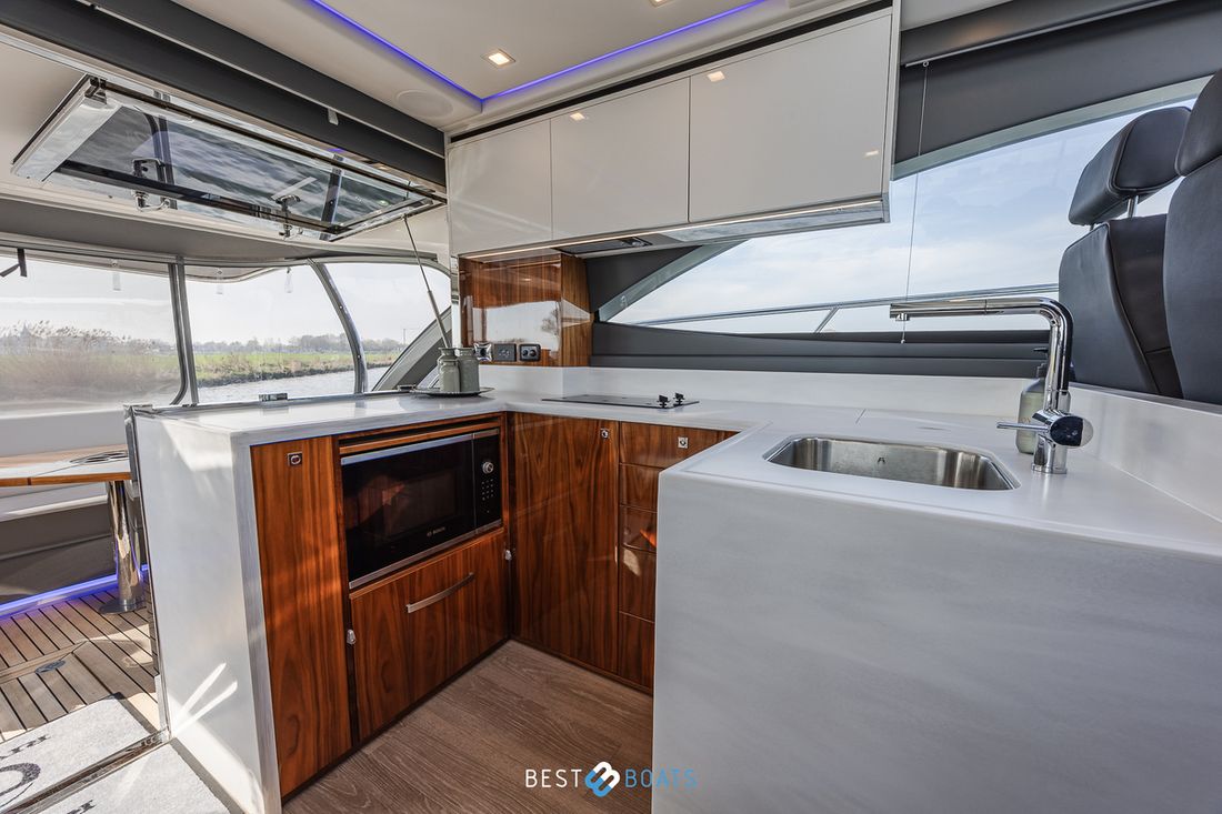 Ruimtes Salon Eethoek Machinekamer Hutten 3 Opmerkingen Hutten Het schip heeft drie indrukwekkende slaapkamers en twee badkamers. Alle kamers baden in natuurlijk licht door grote, getinte rompramen en de badkamers zijn luxueus afgewerkt met corian, porseleinen wastafel, een frame-loze glazen douche deur en teakhouten details. De eigenaarshut is achterin en heeft een groot vrijstaand tweepersoonsbed. Voorin heeft het schip een gastenhut waar een groot tweepersoonsbed staat en ook nog een hut met een stapelbed. Salon Indeling en verblijfsruimtes Met de natuurlijke licht inval, heeft het kombuis van uw 4600 SPORT YACHT-PLATIUM EDITION alle kenmerken van een design keuken waar u heerlijk kan koken. In de salon bevindt zich een luxe U-vormige lounge-eethoek met een massief houten klaptafel waaraan u kunt dineren met familie en vrienden. Aankleding Type interieur Modern, houtlook Opmerkingen Type interieur Vloer kleur is Blonde Lime Oak Kleur stoffering wit Matrassen Kussens Gordijnen Water Watertank & materiaal Inhoud 620 liter Materiaal watertank kunststof Watertankmeter Inhoud 151 liter Materiaal vuilwatertank kunststof Vuilwatertank & materiaal Vuilwatertankmeter Vuilwatertank afvoerpomp Dekafzuiging vuilwater Watersysteem Pressure system Opmerkingen Watersysteem Hydrofoor. Warm water Opmerkingen Warm water Boiler 45 liter, wordt verwarmd middels 220 volt van de walstroom of generator. dekwaspomp buitendouche Sanitair Aantal douches 2 Opmerkingen Aantal douches Douchecabine met glazen scheidingswand. Toiletten 2 Opmerkingen Toiletten Sanitation ( Vacuflush) incl. vuilwaterpomp voor leidigen tank. Vacuum Entertainment TV Opmerkingen TV Entertainmentpakket omvat: Master stateroom - 32'' LED TV, All-In-One Stereo, Bluetooth/AM/FM Stereo met ingebouwde speaker Salon - 43" LED TV op elektrische lift, Fusion Apollo 770 Stereo met FM, Bluetooth, Airplay en Partybus, 4 x speakers en subwoofer in salon met 4 x 6,5" JL Audio speakers en afstandsbediening naar cockpit Forward Deck - Extra zone buiten salon systeem inclusief twee speakers (bediend vanuit salon, cockpit of Fusion-Link App) Vertaald met DeepL.com (gratis versie) Radio/CD-speler Opmerkingen Radio/CD-speler Fusion DVD-speler Blu-rayspeler Keuken Kooktoestel & brandstof Opmerkingen Kooktoestel & brandstof Inductie Aantal 2 Kookbrandstof elektrisch Oven Opmerkingen Oven Combi oven/magnetron. Aantal 1 Magnetron Opmerkingen Magnetron Combi oven/magnetron. Aantal 1 Koelkast & voeding Opmerkingen Koelkast & voeding een koelkast en vrieskast in de keuken, bij de buiten keuken eveneens een koelkast Inhoud Koelkast 150 liter Voeding elektrisch Vriezer Inhoud Vriezer 50 liter Klimaatregeling Verwarming 1 CV Opmerkingen Verwarming Het jacht wordt uitgevoerd met een Webasto syteem: Webasto heating system - Burner/heater – Webasto Thermo Top Pro 120, 24V Blower/heat exchanges 2 x BB4 for Saloon / Galley 1 x BB4 for Fwd Cabin / Head 1 x BB4 for Port Cabin / Companionway 1 x BB4 for Aft Cabin / Head Airconditioning Opmerkingen Airconditioning - Condensors - 1 x 24.000BTU, 1 x 12.000BTU, 1 x 12.000BTU - Luchtbehandelingskasten: - 2 x 12.000BTU (salon/keuken) - 1 x 12.000BTU (eigenaarshut & ensuite) - 1 x 6.000BTU (bakboord hut) - 1 x 8.000BTU (voorkajuit & stbd hoofd) Merk airconditioning Dometic -