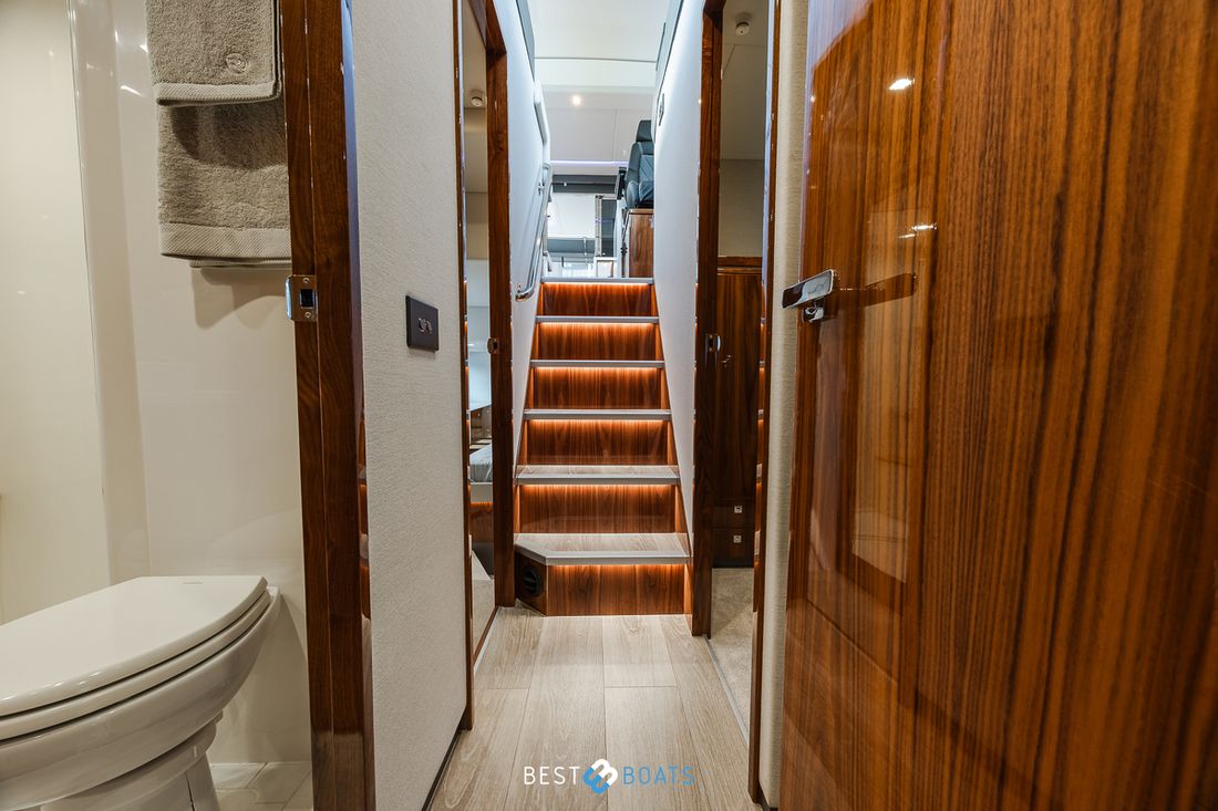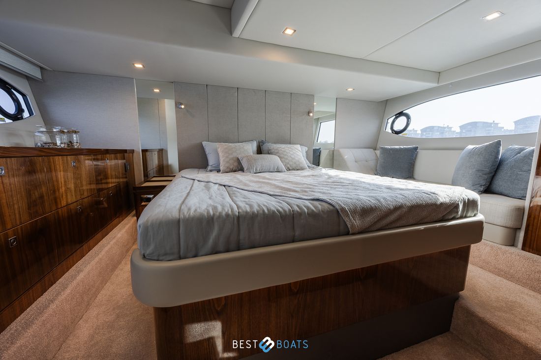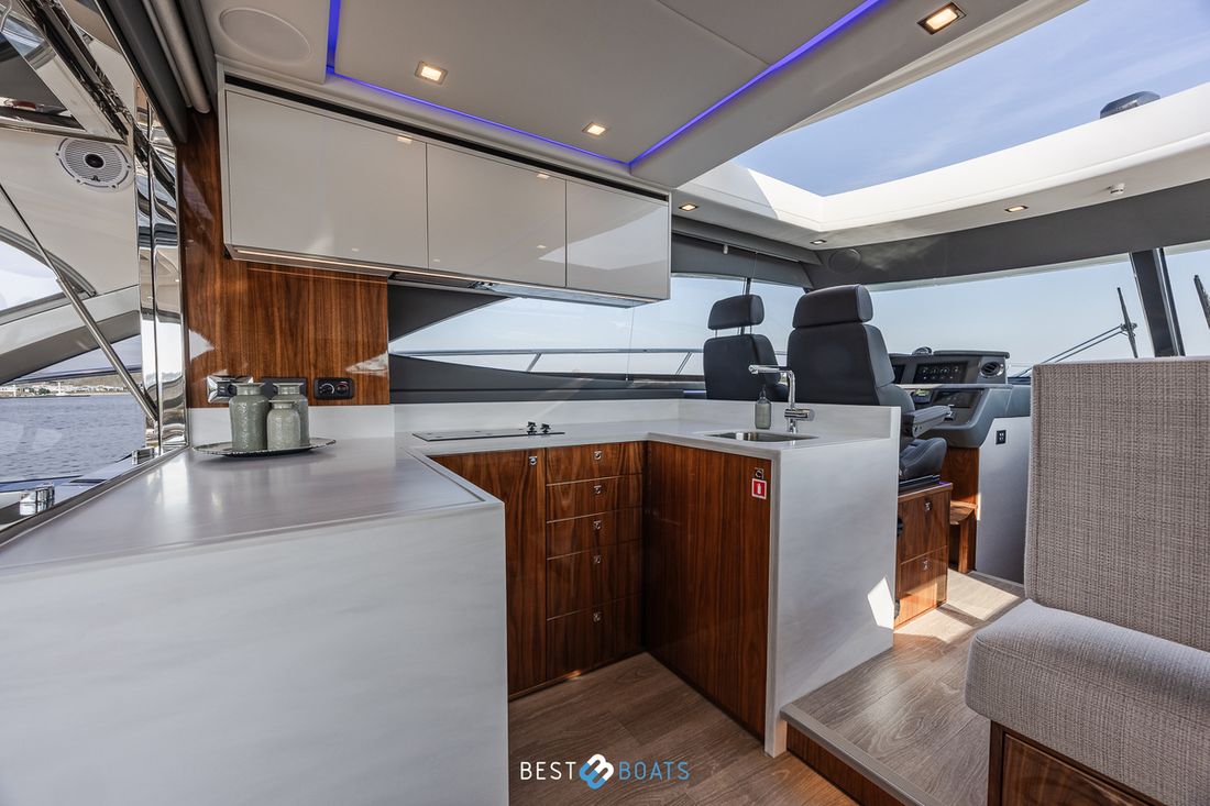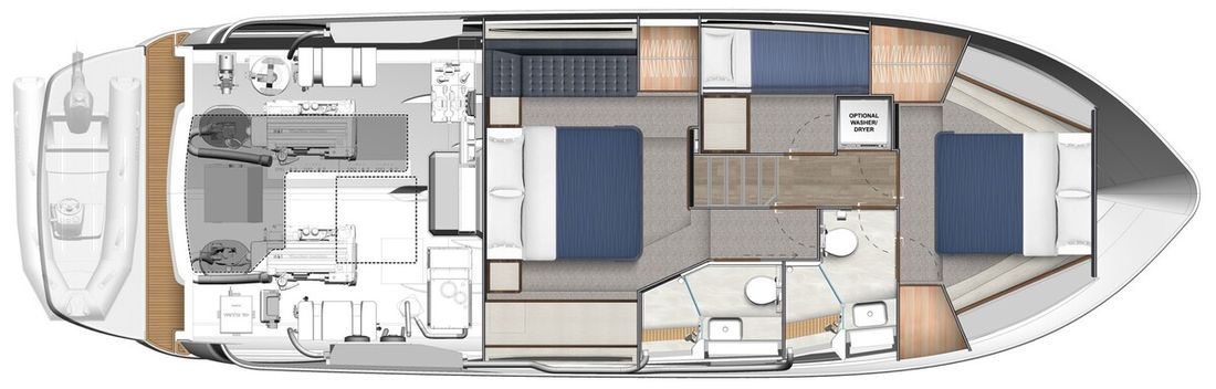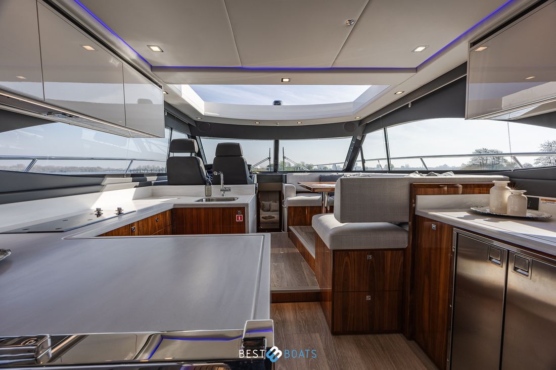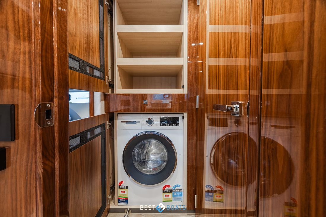 Ruimtes Salon Eethoek Machinekamer Hutten 3 Opmerkingen Hutten Het schip heeft drie indrukwekkende slaapkamers en twee badkamers. Alle kamers baden in natuurlijk licht door grote, getinte rompramen en de badkamers zijn luxueus afgewerkt met corian, porseleinen wastafel, een frame-loze glazen douche deur en teakhouten details. De eigenaarshut is achterin en heeft een groot vrijstaand tweepersoonsbed. Voorin heeft het schip een gastenhut waar een groot tweepersoonsbed staat en ook nog een hut met een stapelbed. Salon Indeling en verblijfsruimtes Met de natuurlijke licht inval, heeft het kombuis van uw 4600 SPORT YACHT-PLATIUM EDITION alle kenmerken van een design keuken waar u heerlijk kan koken. In de salon bevindt zich een luxe U-vormige lounge-eethoek met een massief houten klaptafel waaraan u kunt dineren met familie en vrienden. Aankleding Type interieur Modern, houtlook Opmerkingen Type interieur Vloer kleur is Blonde Lime Oak Kleur stoffering wit Matrassen Kussens Gordijnen Water Watertank & materiaal Inhoud 620 liter Materiaal watertank kunststof Watertankmeter Inhoud 151 liter Materiaal vuilwatertank kunststof Vuilwatertank & materiaal Vuilwatertankmeter Vuilwatertank afvoerpomp Dekafzuiging vuilwater Watersysteem Pressure system Opmerkingen Watersysteem Hydrofoor. Warm water Opmerkingen Warm water Boiler 45 liter, wordt verwarmd middels 220 volt van de walstroom of generator. dekwaspomp buitendouche Sanitair Aantal douches 2 Opmerkingen Aantal douches Douchecabine met glazen scheidingswand. Toiletten 2 Opmerkingen Toiletten Sanitation ( Vacuflush) incl. vuilwaterpomp voor leidigen tank. Vacuum Entertainment TV Opmerkingen TV Entertainmentpakket omvat: Master stateroom - 32'' LED TV, All-In-One Stereo, Bluetooth/AM/FM Stereo met ingebouwde speaker Salon - 43" LED TV op elektrische lift, Fusion Apollo 770 Stereo met FM, Bluetooth, Airplay en Partybus, 4 x speakers en subwoofer in salon met 4 x 6,5" JL Audio speakers en afstandsbediening naar cockpit Forward Deck - Extra zone buiten salon systeem inclusief twee speakers (bediend vanuit salon, cockpit of Fusion-Link App) Vertaald met DeepL.com (gratis versie) Radio/CD-speler Opmerkingen Radio/CD-speler Fusion DVD-speler Blu-rayspeler Keuken Kooktoestel & brandstof Opmerkingen Kooktoestel & brandstof Inductie Aantal 2 Kookbrandstof elektrisch Oven Opmerkingen Oven Combi oven/magnetron. Aantal 1 Magnetron Opmerkingen Magnetron Combi oven/magnetron. Aantal 1 Koelkast & voeding Opmerkingen Koelkast & voeding een koelkast en vrieskast in de keuken, bij de buiten keuken eveneens een koelkast Inhoud Koelkast 150 liter Voeding elektrisch Vriezer Inhoud Vriezer 50 liter Klimaatregeling Verwarming 1 CV Opmerkingen Verwarming Het jacht wordt uitgevoerd met een Webasto syteem: Webasto heating system - Burner/heater – Webasto Thermo Top Pro 120, 24V Blower/heat exchanges 2 x BB4 for Saloon / Galley 1 x BB4 for Fwd Cabin / Head 1 x BB4 for Port Cabin / Companionway 1 x BB4 for Aft Cabin / Head Airconditioning Opmerkingen Airconditioning - Condensors - 1 x 24.000BTU, 1 x 12.000BTU, 1 x 12.000BTU - Luchtbehandelingskasten: - 2 x 12.000BTU (salon/keuken) - 1 x 12.000BTU (eigenaarshut & ensuite) - 1 x 6.000BTU (bakboord hut) - 1 x 8.000BTU (voorkajuit & stbd hoofd) Merk airconditioning Dometic -