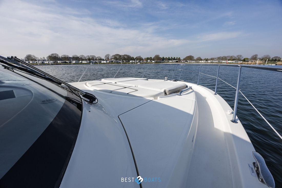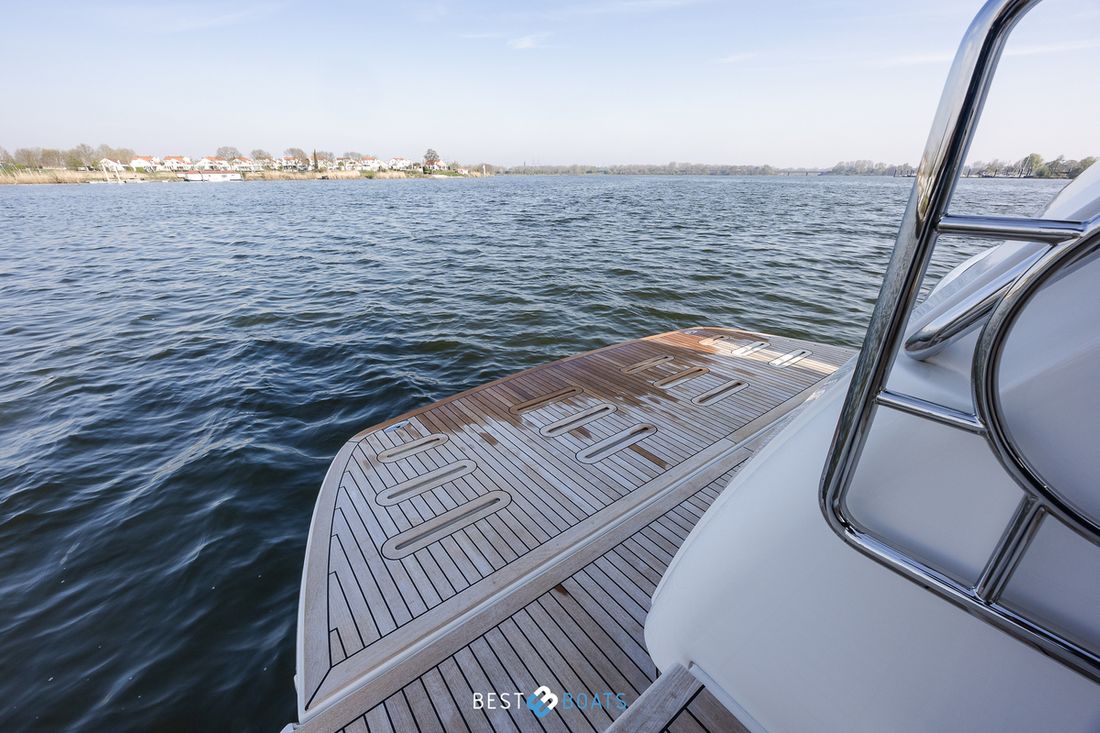 Anker Ankers & materiaal Opmerkingen Ankers & materiaal Anker - galvanised 27kg (60lb), 50m (162ft) of 8mm (5/16") gegalvaniseerde korte schakelketting Aantal 1 Materiaal ankers gegalvaniseerd Anker bevestiging ketting Ankerlier elektrisch Opmerkingen Ankerlier Ankerketting teller op Dashboard. Dekuitrusting Bimini Kuiptent Buitenkussens Zeerailing Opmerkingen Zeerailing Volledig RVS Zwemplatform Opmerkingen Zwemplatform Teak begelegd - Hydraulische bediening voor platform (omhoog/omlaag max. 300kg/661lbs) met vaste kookplaatsectie, inclusief versteviging van spiegel (boottrim & prestaties worden beïnvloed) - Inclusief zwemtrap. Zwemtrap Opmerkingen Zwemtrap Geintregeerd in zwemplatvorm. Preek- en hekstoel(en) Overig Teakdek Stootwillen, lijnen Opmerkingen Stootwillen, lijnen Volledige set. Kuiptafel -