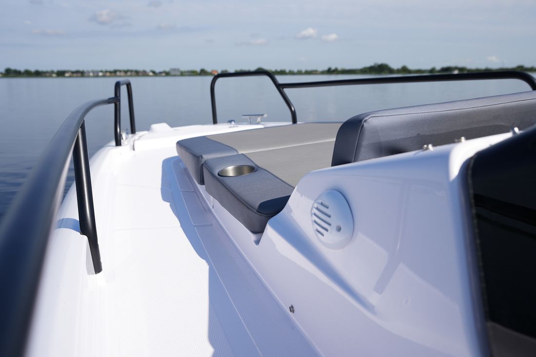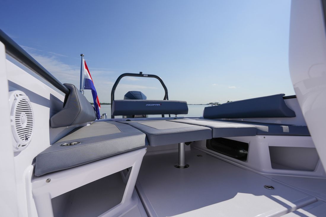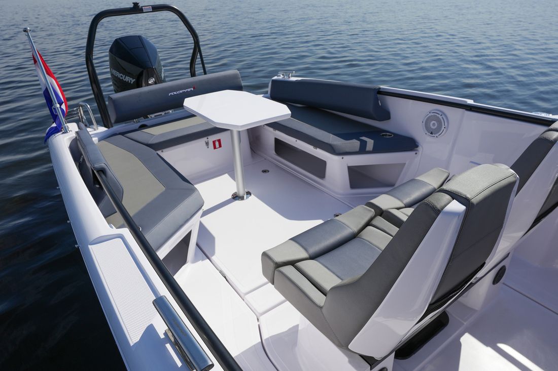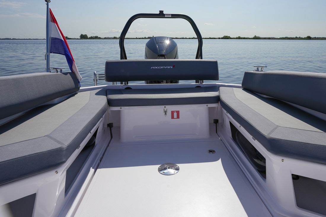 De Axopar 25 Cross Bow combineert de unieke voordelen van een RIB (Rigid Inflatable Boat) met haar stabiele vaareigenschappen, lichte constructie en ongeëvenaarde veiligheid, met de ruimte en het design van een motorcruiser. De Axopar 25 is verkrijgbaar in een Cross Bow en T-top versie. Het merk Axopar heeft in de laatste jaren naam gemaakt en ongelofelijk veel internationale prijzen gewonnen. De Axopar 25 Cross Bow die wij op voorraad hebben staan is uitgerust met een Mercury V8 250 pk Verado Outboard (Wit).