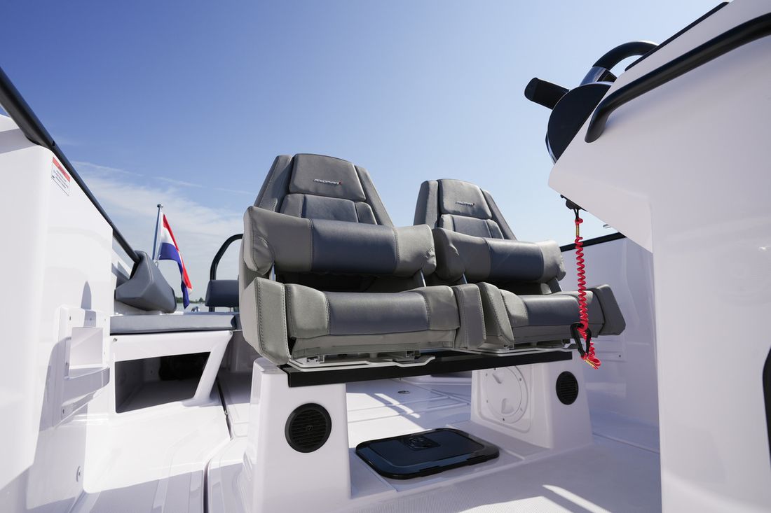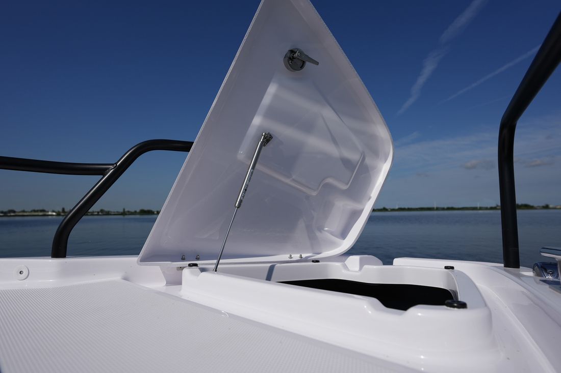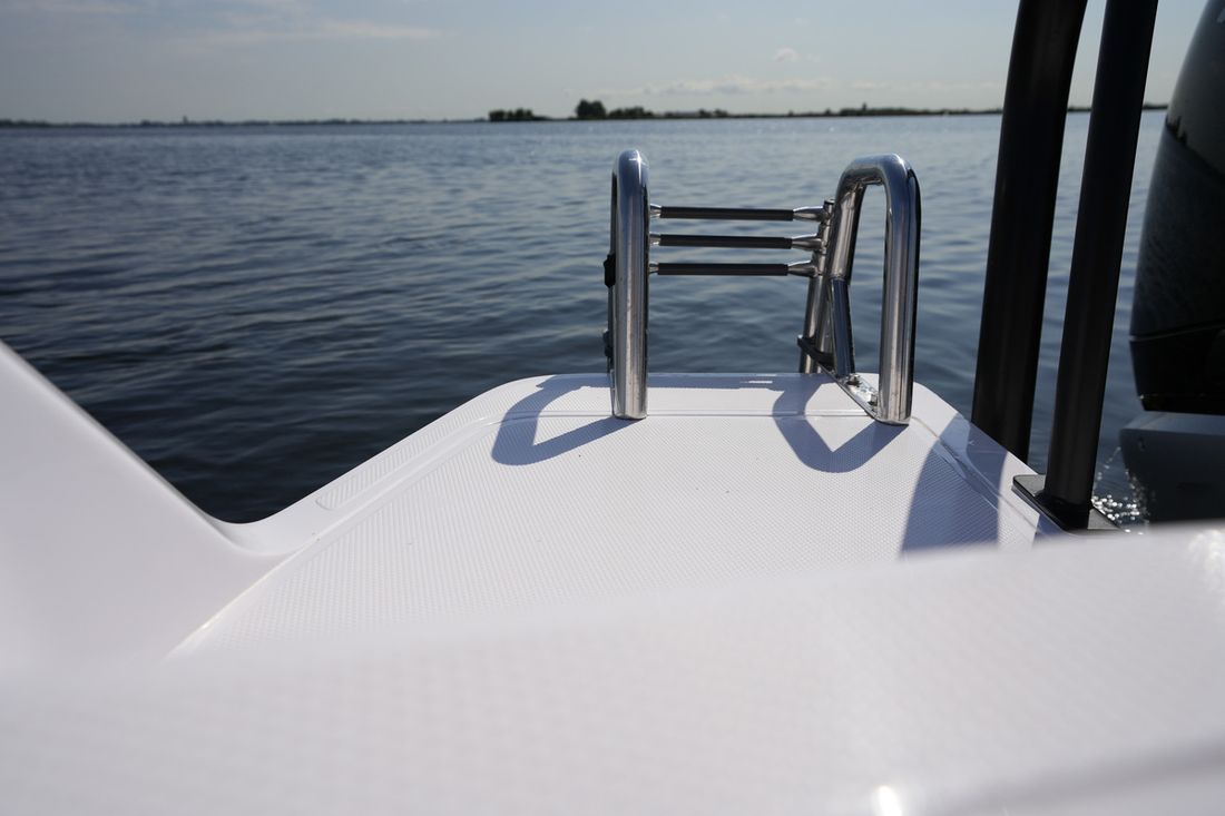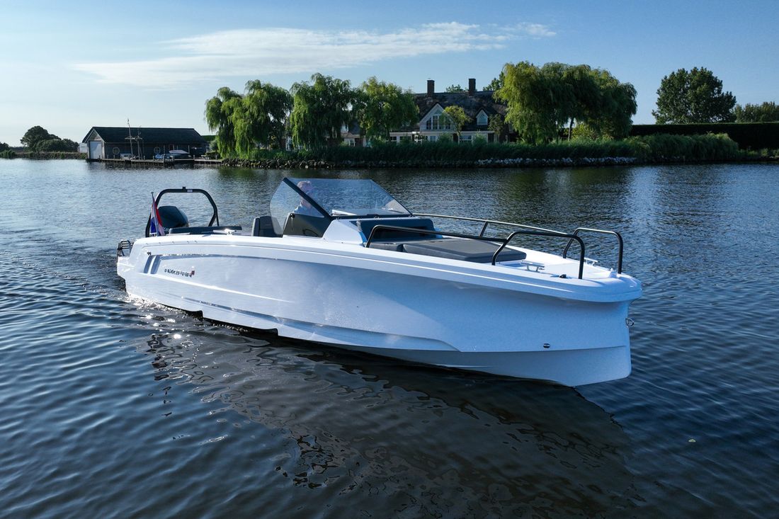 De Axopar 25 Cross Bow combineert de unieke voordelen van een RIB (Rigid Inflatable Boat) met haar stabiele vaareigenschappen, lichte constructie en ongeëvenaarde veiligheid, met de ruimte en het design van een motorcruiser. De Axopar 25 is verkrijgbaar in een Cross Bow en T-top versie. Het merk Axopar heeft in de laatste jaren naam gemaakt en ongelofelijk veel internationale prijzen gewonnen. De Axopar 25 Cross Bow die wij op voorraad hebben staan is uitgerust met een Mercury V8 250 pk Verado Outboard (Wit).