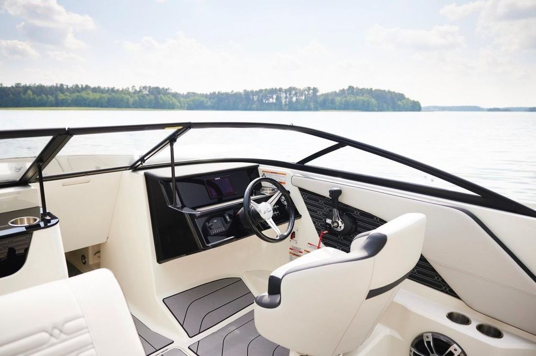 Beginners, doorgewinterde watersporters en iedereen daar tussenin kunnen de nieuwe SEA RAY SPX 190 besturen. De stuurstand biedt bediening met één druk op de knop en is uitgerust met een Digital Dash met een standaard 7? Simrad® touchscreen-display en SmartCraft® Connect voor intuïtieve motormonitoring. Met alles in één informatieportaal kunt u minder tijd besteden aan zorgen over uw boot en meer tijd besteden aan het maken van herinneringen. De stuurstand is ook uitgerust met een premium Fusion® SRX400-stereosysteem voor superieure audio op de golven.