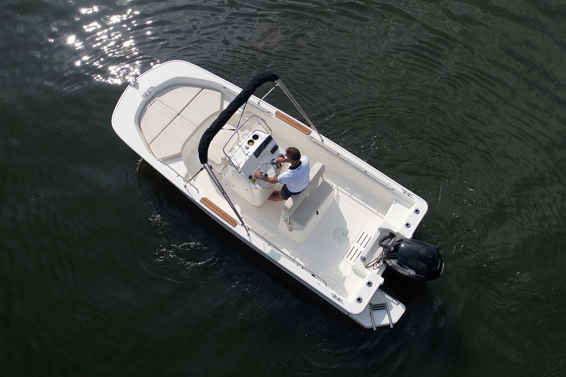 Nieuw geleverd Ontwerper Boston Whaler Werf Boston Whaler Opmerkingen Werf Boston Whaler Opmerkingen CE C CE-normering C Romp, dek en opbouw Rompvorm v-bodem Opmerkingen Rompvorm diepe v Rompkleur wit Dek en opbouw materiaal polyester sandwich Kuip middenkuip Open Kuip (OK) Opbouw vorm, materiaal polyester sandwich Afmetingen en gewichten Opmerkingen Doorvaarthoogte 149 cm Diepgang maximaal 30 cm Waterverplaatsing 0.635 ton Besturing en driftbeperking Besturing stuurwiel Opmerkingen Besturing stuurwiel Plek besturing buiten Roer enkel -