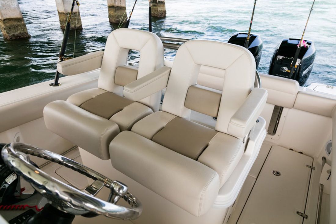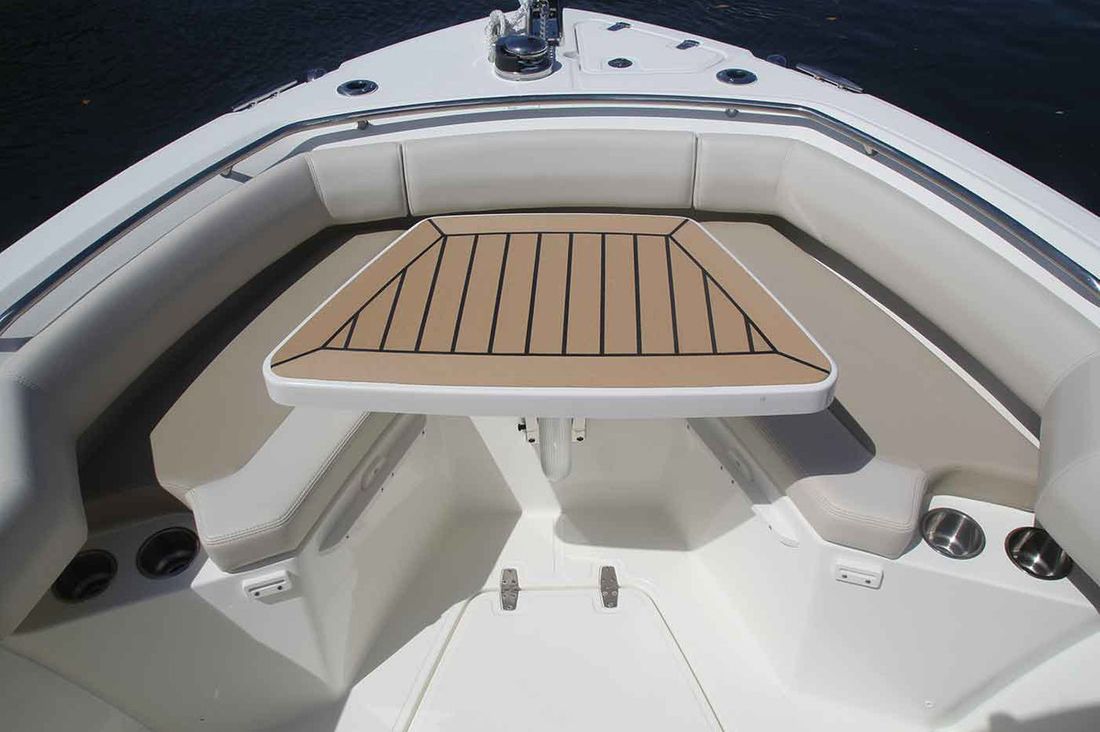 Nieuw geleverd Ontwerper Boston Whaler Werf Boston Whaler Romp, dek en opbouw Rompvorm v-bodem Rompkleur wit Dek en opbouw materiaal polyester sandwich Kuip middenkuip Open Kuip (OK) Afmetingen en gewichten Diepgang maximaal 46 cm Waterverplaatsing 2.427 kg Besturing en driftbeperking Besturing stuurwiel Plek besturing buiten Roer dubbel -