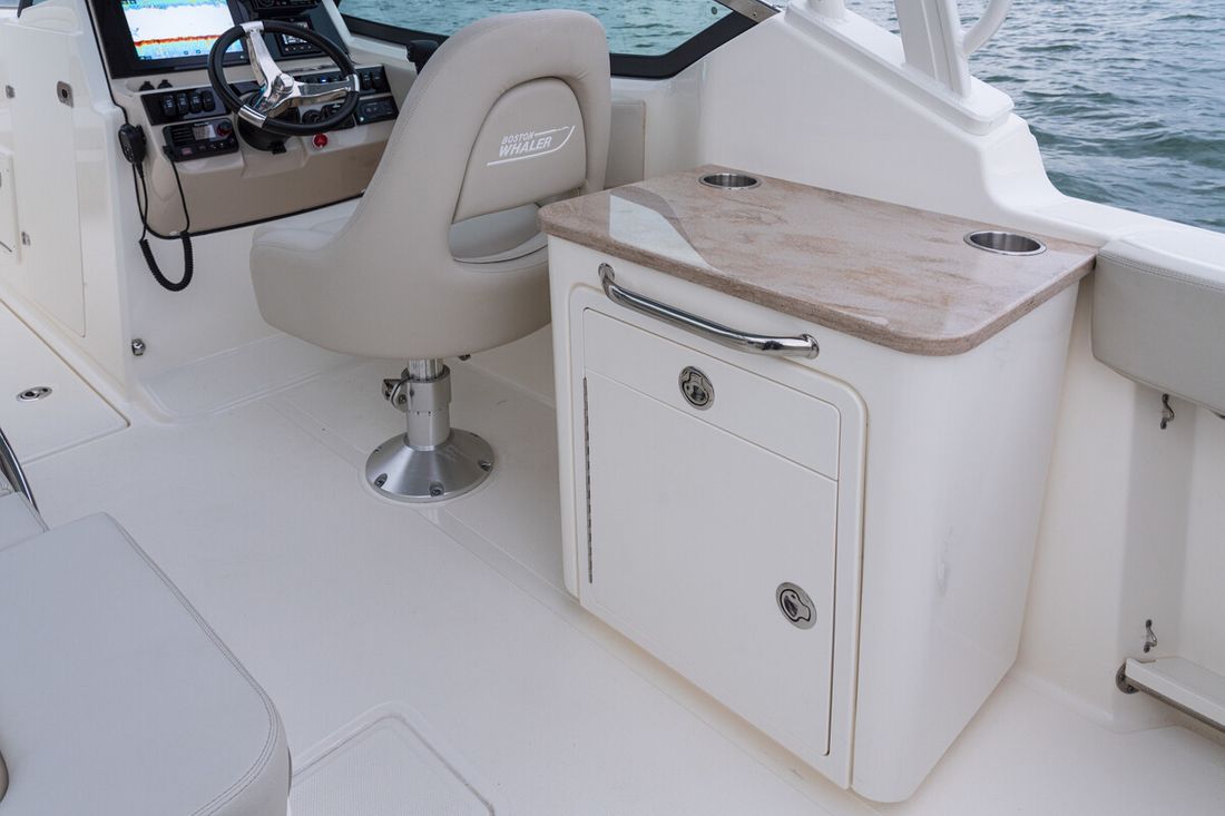 Nieuw geleverd Ontwerper Boston Whaler Werf Boston Whaler Opmerkingen CE C CE-normering C Romp, dek en opbouw Rompvorm v-bodem Opmerkingen Rompvorm diepe v Rompkleur wit Dek en opbouw materiaal polyester sandwich Kuip dubbele kuip Open Kuip (OK) Opbouw vorm, materiaal polyester sandwich Ramen windscherm Afmetingen en gewichten Diepgang maximaal 46 cm Besturing en driftbeperking Besturing stuurwiel Opmerkingen Besturing stuurwiel Plek besturing buiten Roer enkel Trimflaps -