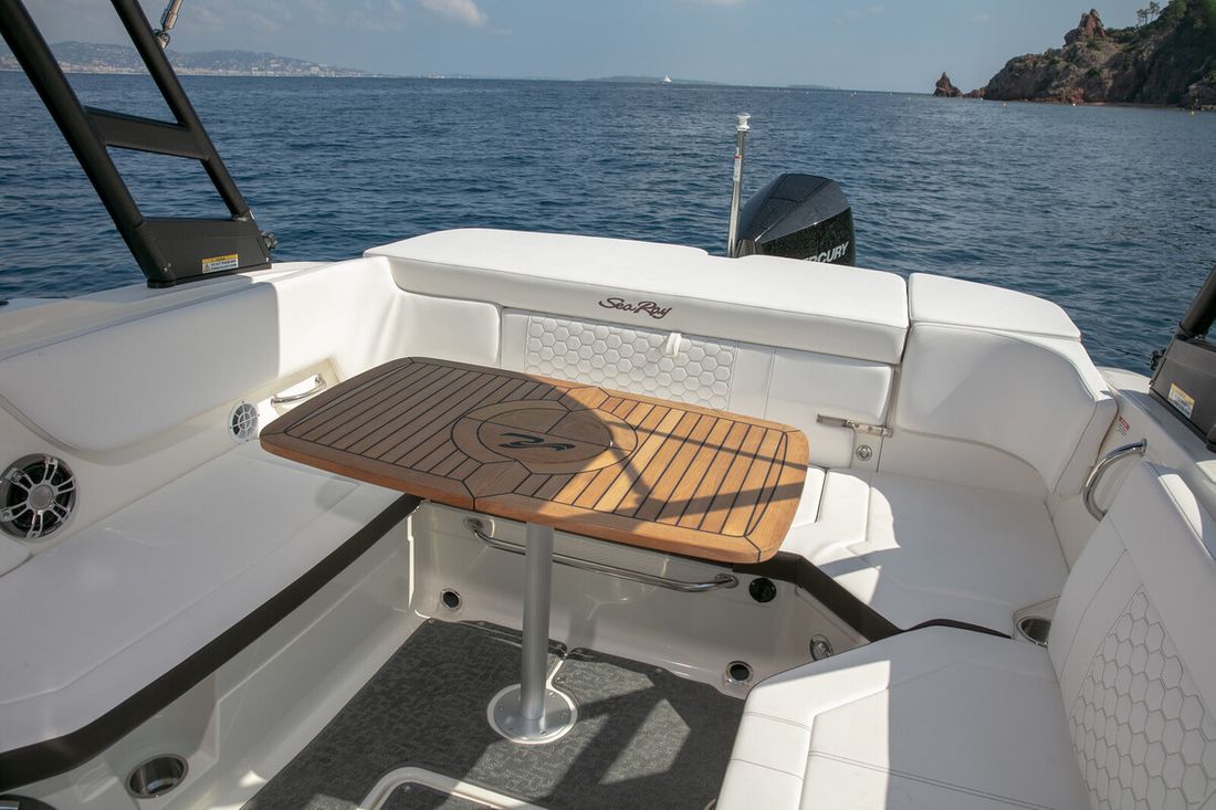 Met een hoog niveau van afwerking en vorm is het duidelijk een Sea Ray. De Sea Ray Sun Sport 230 2024 model is het kleinste model in de sportkruiser serie van Sea Ray. Hoge kwaliteit stoffen zijn gebruikt voor optimale kussens welke UV bestendig zijn. De boot is standaard af fabriek met een Mercury 150PK EFI. Optioneeel is er een Mercury V6 200 of 250 pk buitenboordmotor leverbaar. Tot slot zijn er talloze opties om de boot volledig naar eigen wens te maken.