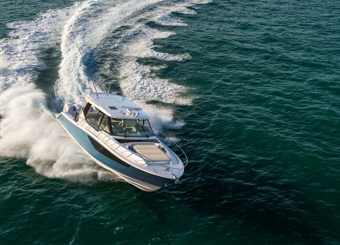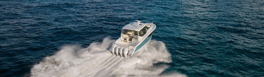 Quad 300-hp Mercury Verado® engines with optional Joystick Piloting provide impressive power and control.