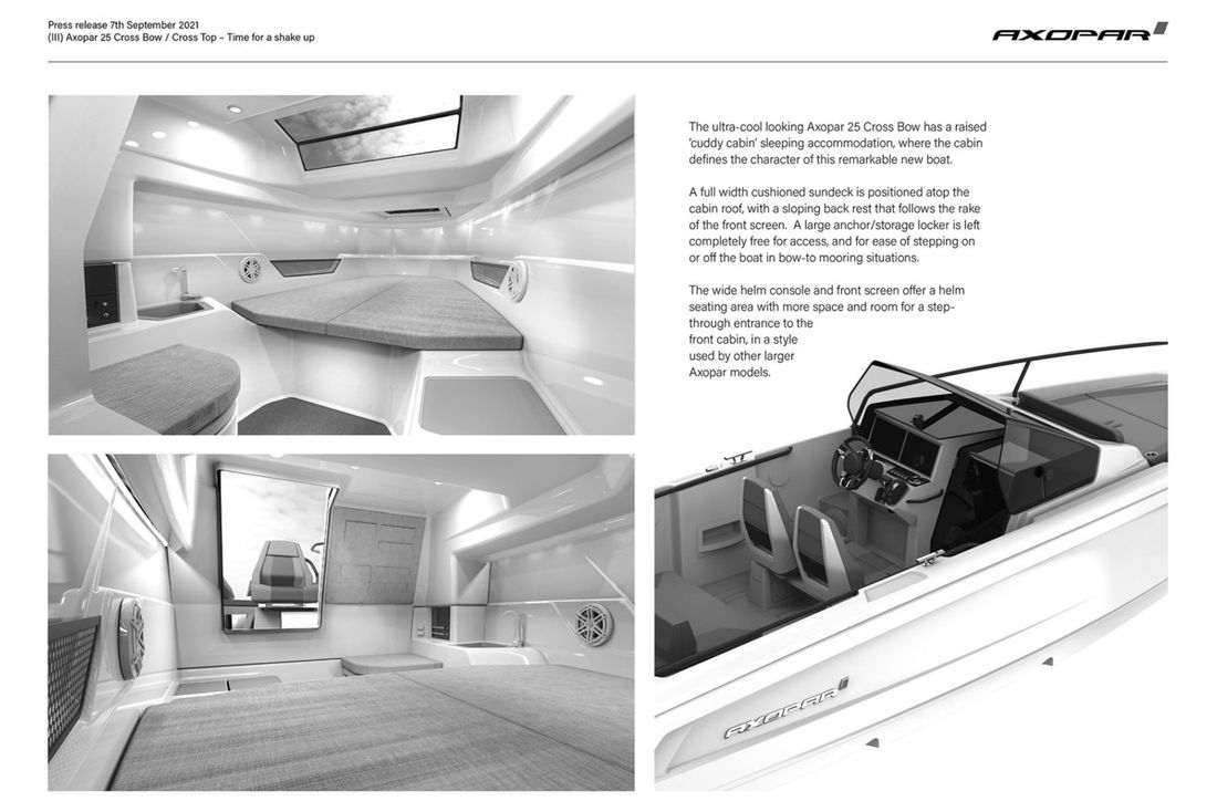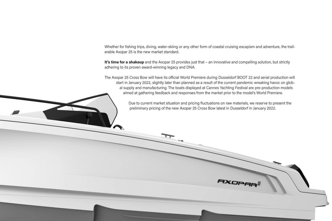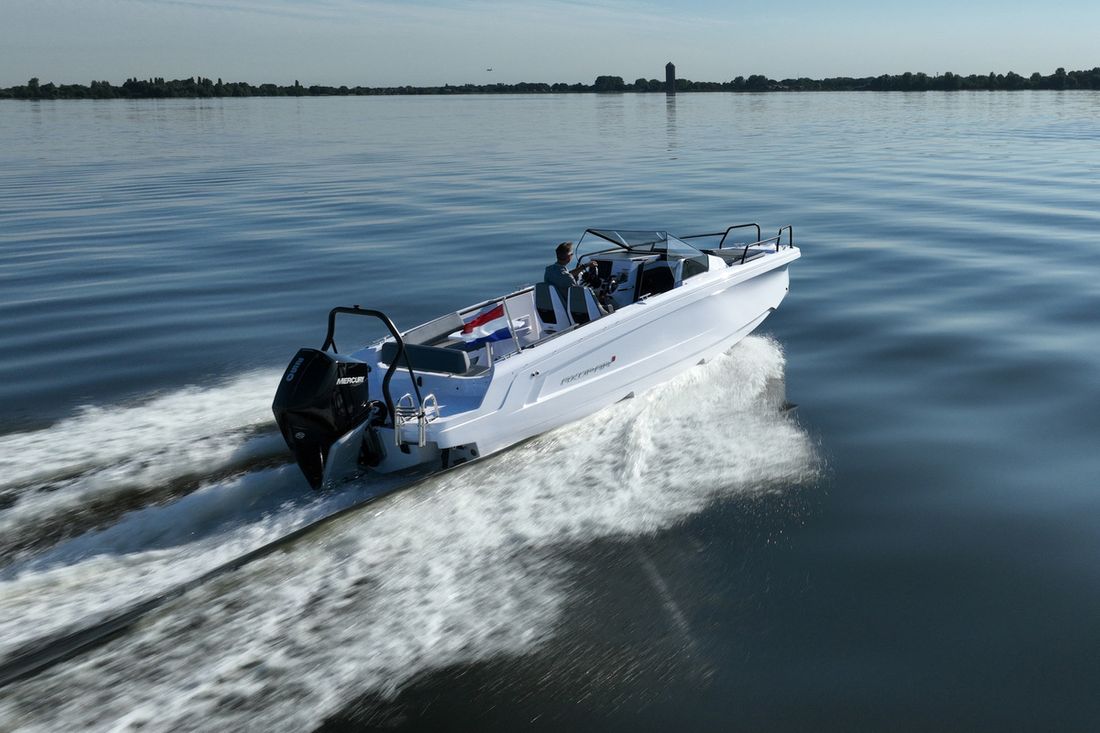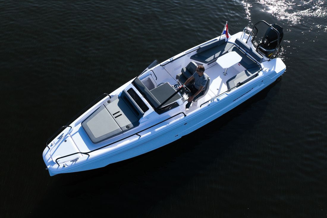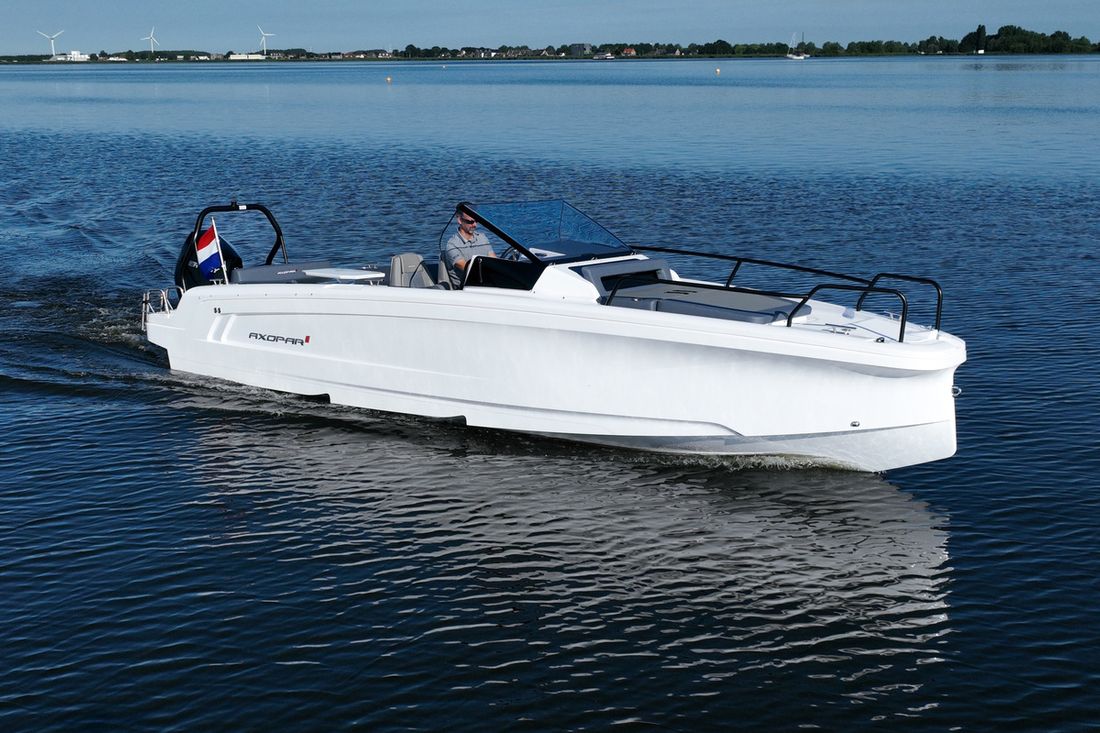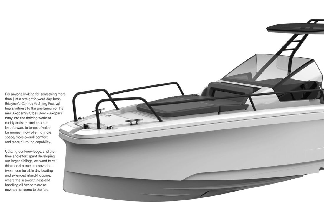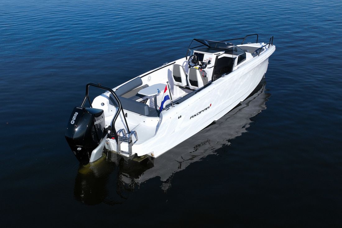 De Axopar 25 CROSS BOW & CROSS TOP is nieuw in de lijn van Axopar Boats. De Axopar 25 CROSS BOW & CROSS TOP deelt de rompkenmerken met de 22, 28, 37 en 45 voet modellen, wat zorgt voor een ongekende zeewaardigheid. Door zijn geringe gewicht vaart de 25 zuinig en is zeer gemakkelijk trailerbaar. De Axopar 25 is uit te rusten met een outboard tot 300 pk en beschikt over een fuel capaciteit van 230 liter. Voor het achterdek valt er te kiezen uit een drietal zitopties.
