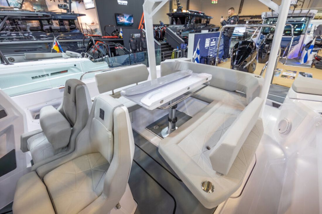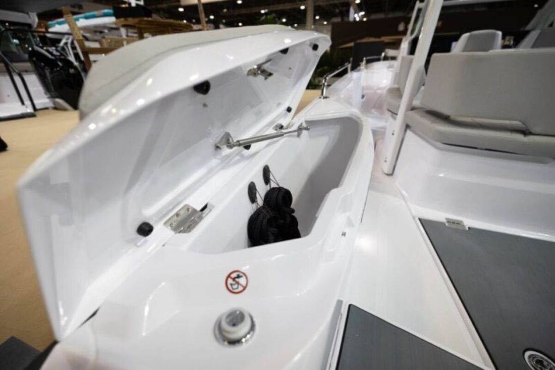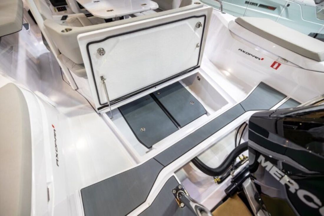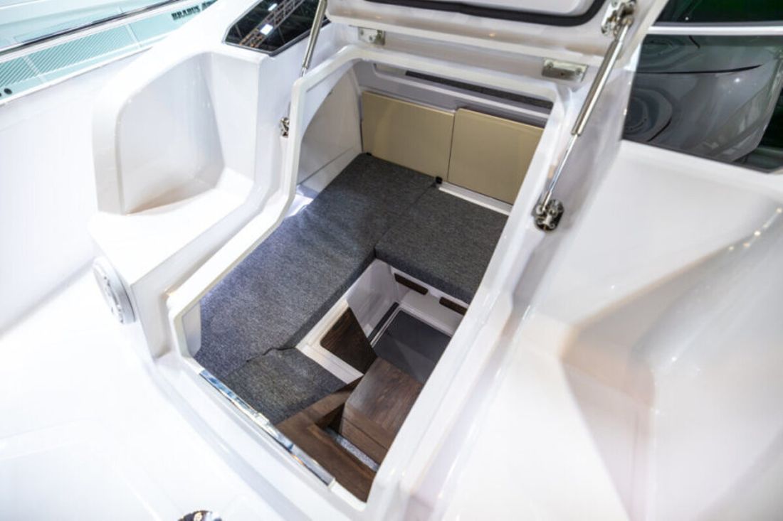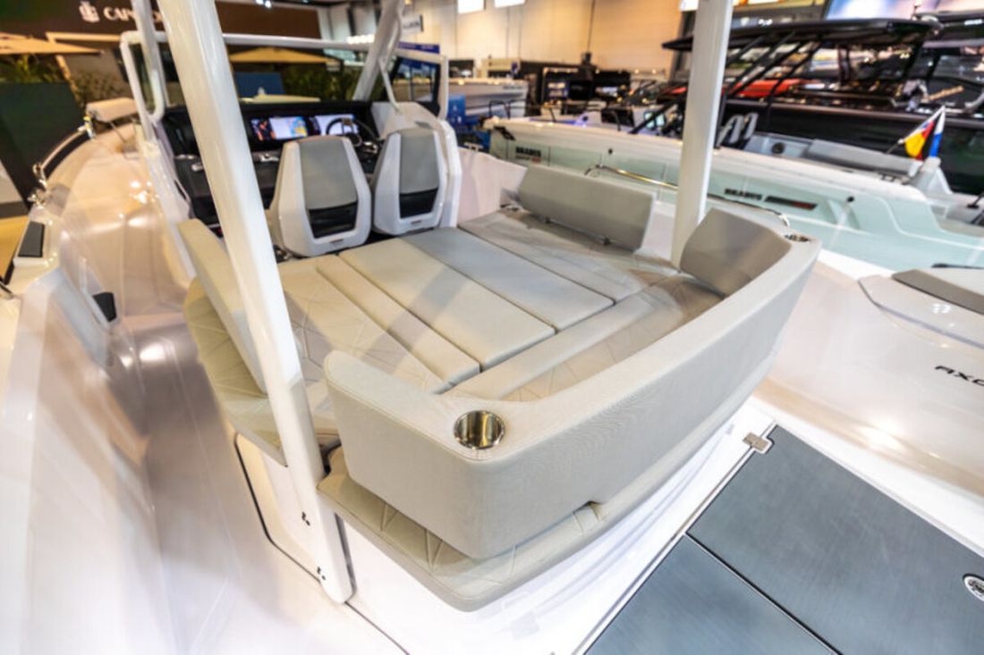 De nieuwe indeling op het voordek zorgt voor veel meer volume in de boeg en u kunt nu comfortabel plaatsnemen met maximaal 8 personen. Het gevoel van ruimte is zo groot dat je, als je vanaf het stuurconsole naar voren kijkt, je bijna kunt voorstellen dat je op de Axopar 37 zit.