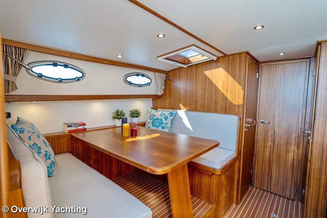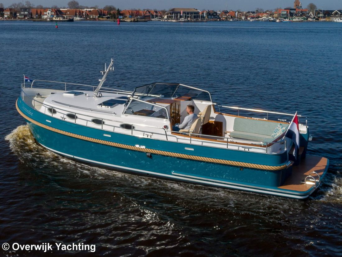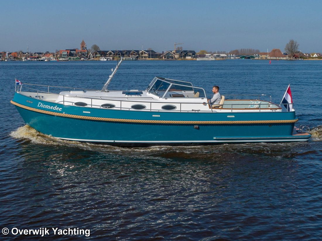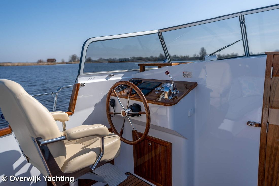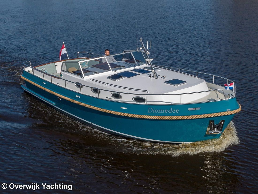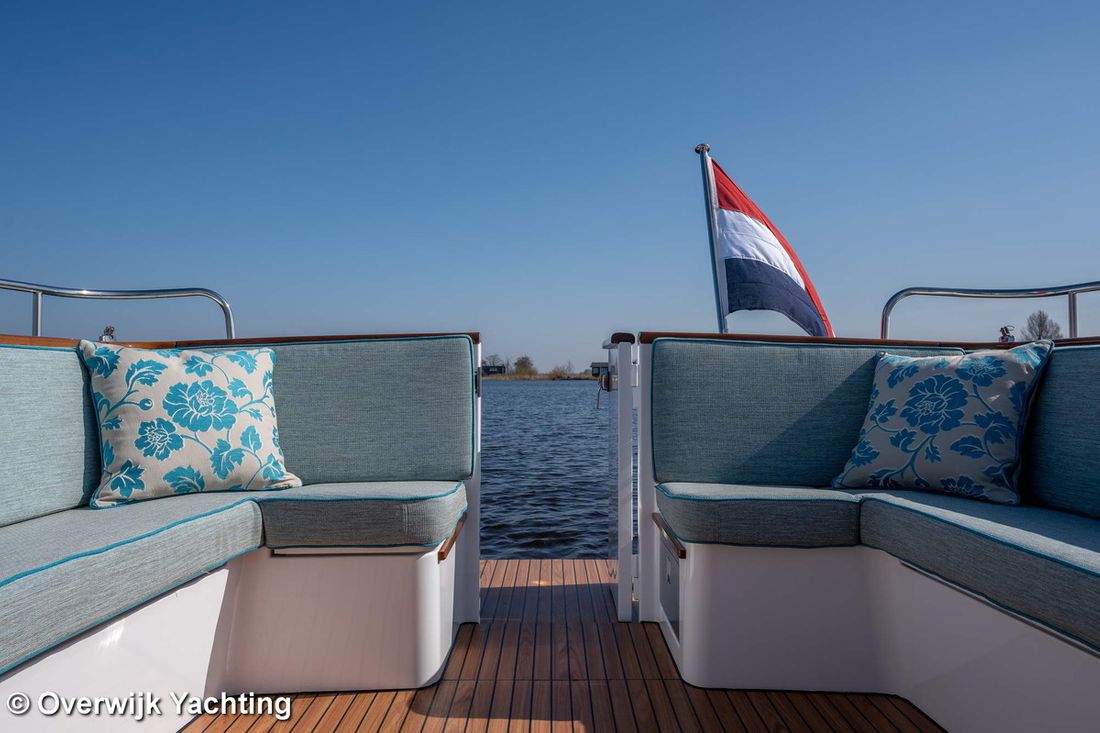 Nieuw geleverd Ontwerper Langenberg jachtontwerp Werf Overwijk Yachting CE C CE max gewicht 1000 kg CE aantal opvarenden 8 Romp, dek en opbouw Rompvorm multiknik Dek en opbouw materiaal staal Kuip achterkuip Open Kuip (OK) Afmetingen en gewichten Opmerkingen Doorvaarthoogte Met tent ca. 250 cm Kruiphoogte 215 cm Diepgang maximaal 104 cm Diepgang minimaal 99 cm Lengte waterlijn 1020 cm Waterverplaatsing 10302 kg Besturing en driftbeperking Besturing stuurwiel Plek besturing buiten Roer enkel -