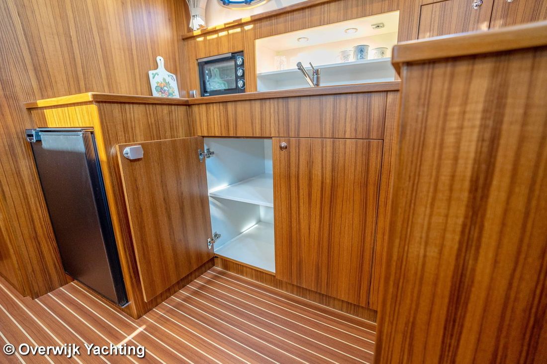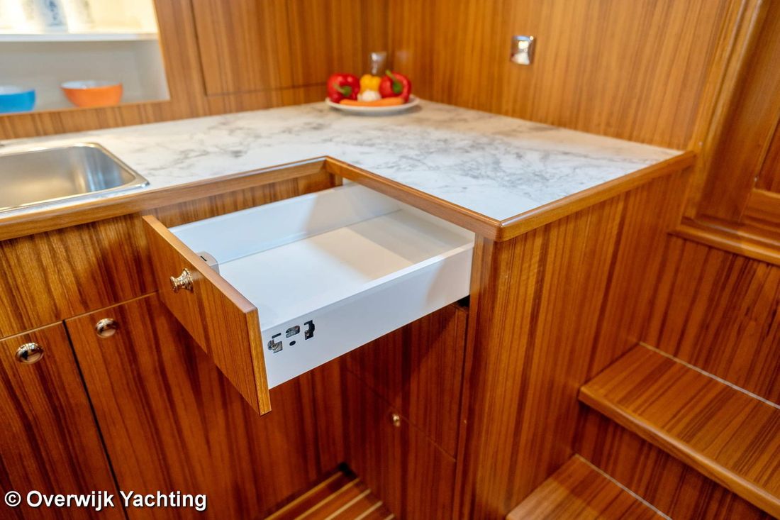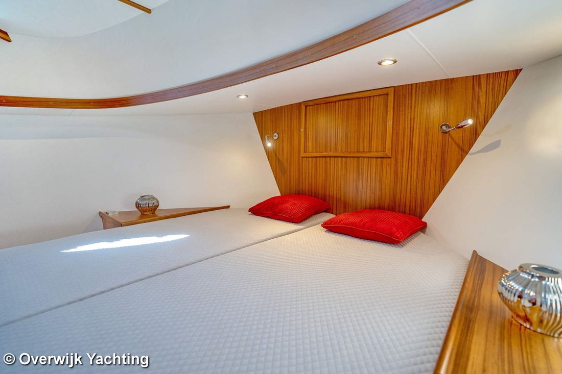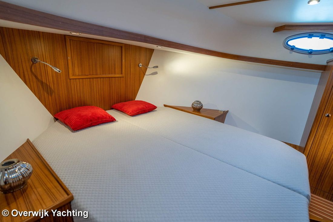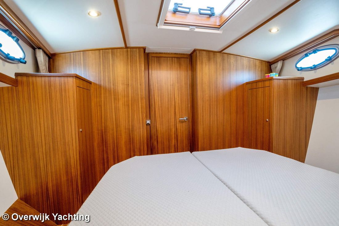 Ruimtes Hutten 1 Opmerkingen Hutten Eigenaarshut in voorpiek. Opmerkingen Slaapplaatsen 2 + 2 Aankleding Opmerkingen Type interieur Naar wens opdrachtgever. Matrassen Kussens Opmerkingen Gordijnen optie. Water Watertank & materiaal Opmerkingen Watertank & materiaal 2 tanks. Inhoud 340 liter Materiaal watertank kunststof Watertankmeter Inhoud 120 liter Materiaal vuilwatertank kunststof Vuilwatertank & materiaal Vuilwatertankmeter Vuilwatertank afvoerpomp Dekafzuiging vuilwater Watersysteem Pressure system Warm water Opmerkingen Warm water Boiler 40 liter. Sanitair Aantal douches 1 Opmerkingen Aantal douches Gescheiden. Elektrisch Keuken Kooktoestel & brandstof Aantal 3 Kookbrandstof gas Oven Opmerkingen Oven optie Magnetron Opmerkingen Magnetron optie Koelkast & voeding Inhoud Koelkast 85 liter Voeding elektrisch Klimaatregeling hete lucht Opmerkingen Verwarming optie Airconditioning Merk airconditioning Als optie -