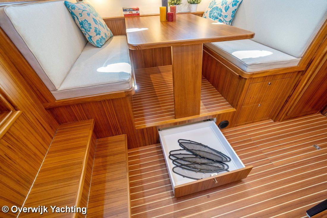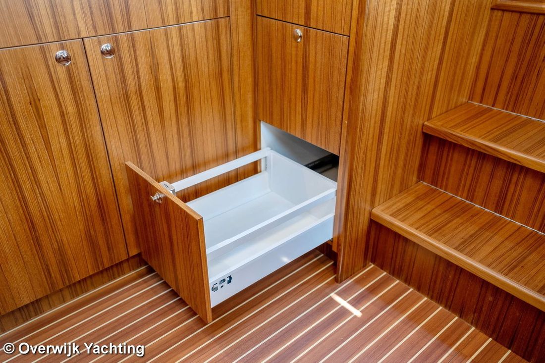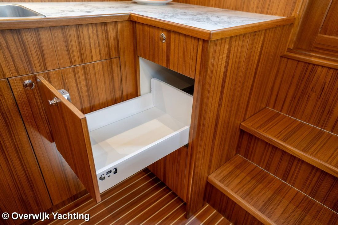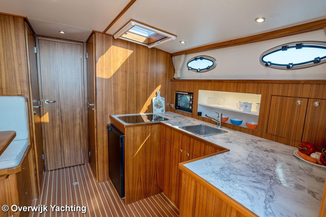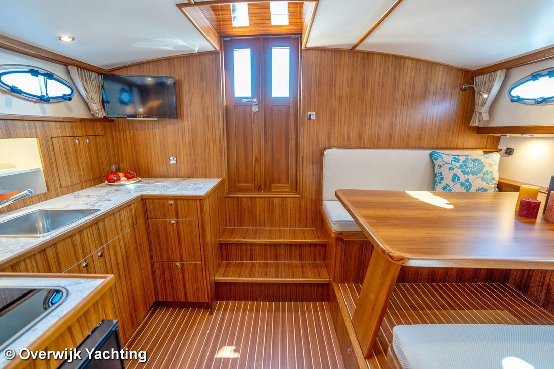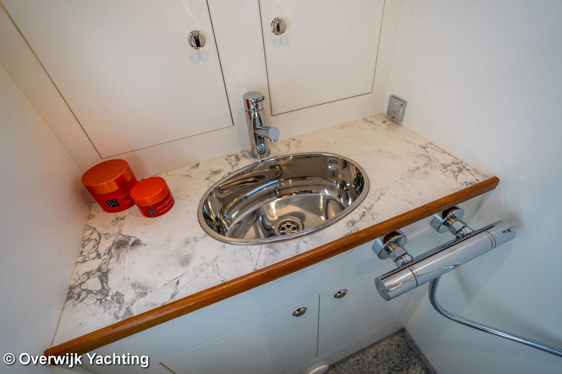 Ruimtes Hutten 1 Opmerkingen Hutten Eigenaarshut in voorpiek. Opmerkingen Slaapplaatsen 2 + 2 Aankleding Opmerkingen Type interieur Naar wens opdrachtgever. Matrassen Kussens Opmerkingen Gordijnen optie. Water Watertank & materiaal Opmerkingen Watertank & materiaal 2 tanks. Inhoud 340 liter Materiaal watertank kunststof Watertankmeter Inhoud 120 liter Materiaal vuilwatertank kunststof Vuilwatertank & materiaal Vuilwatertankmeter Vuilwatertank afvoerpomp Dekafzuiging vuilwater Watersysteem Pressure system Warm water Opmerkingen Warm water Boiler 40 liter. Sanitair Aantal douches 1 Opmerkingen Aantal douches Gescheiden. Elektrisch Keuken Kooktoestel & brandstof Aantal 3 Kookbrandstof gas Oven Opmerkingen Oven optie Magnetron Opmerkingen Magnetron optie Koelkast & voeding Inhoud Koelkast 85 liter Voeding elektrisch Klimaatregeling hete lucht Opmerkingen Verwarming optie Airconditioning Merk airconditioning Als optie -