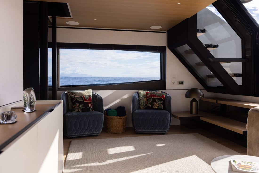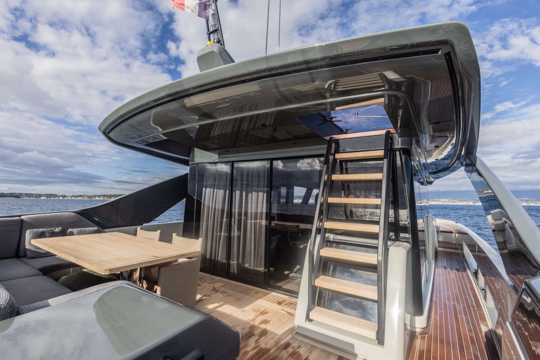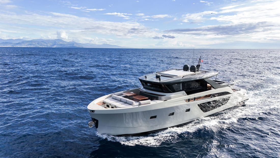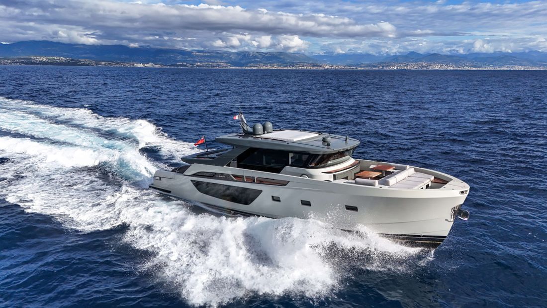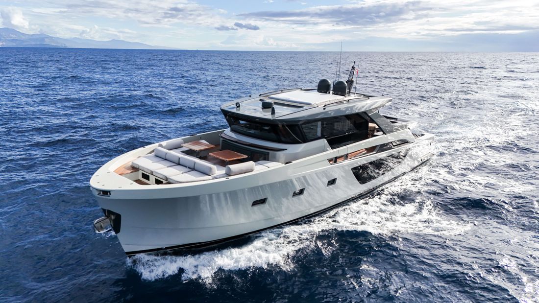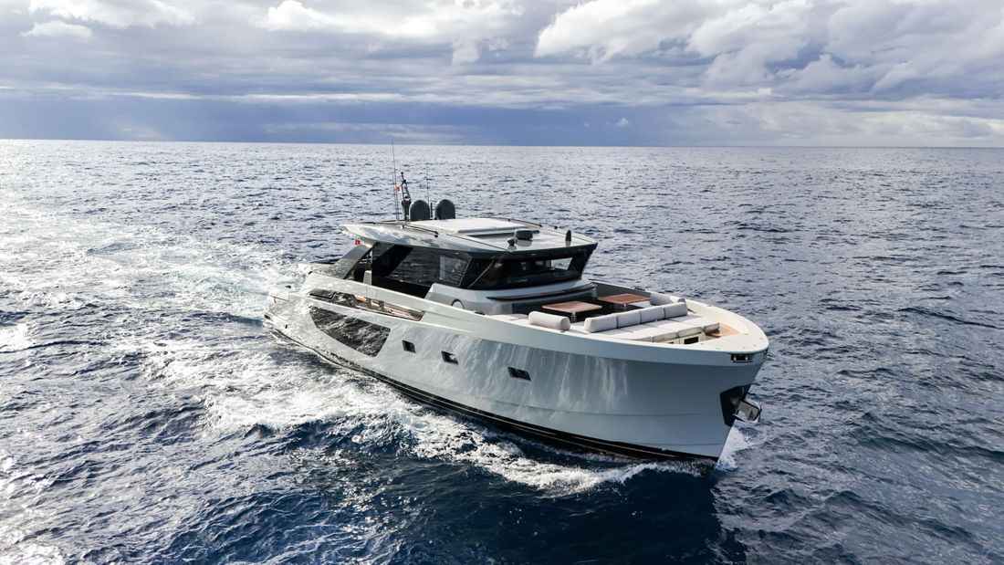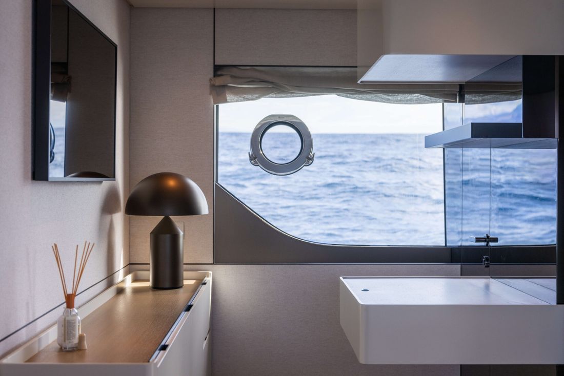 Bluegame BGX70 #02 built 2020, now exclusively available at Lengers Yachts. The BGX70 sophisticated and revolutionary exterior design and distinct layout perfectly combines elegant lines and wide living spaces. The centrality of the owner's cabin, finds one of its highest expressions in this model. It is in fact centrally located with access both to the living area and to a private area, which can be used as a guest room if necessary. Light plays a fundamental role, particularly in the living areas, where the percentage of glass surfaces is so large that exteriors and interiors merge as a part of the same environment.
