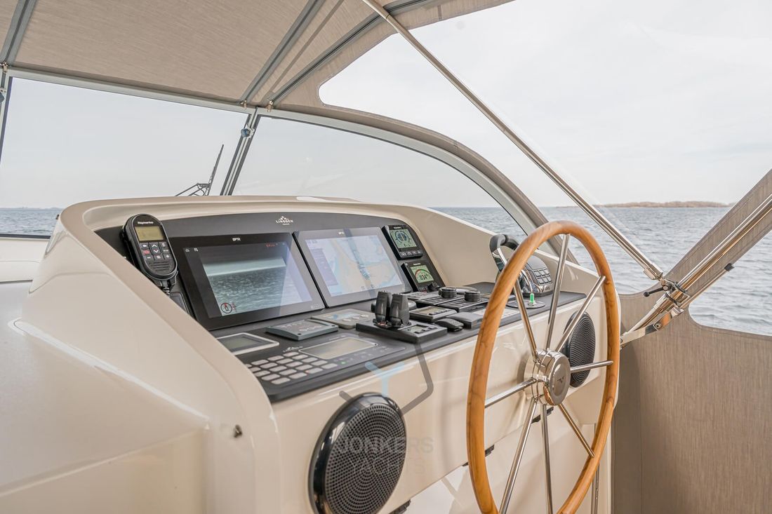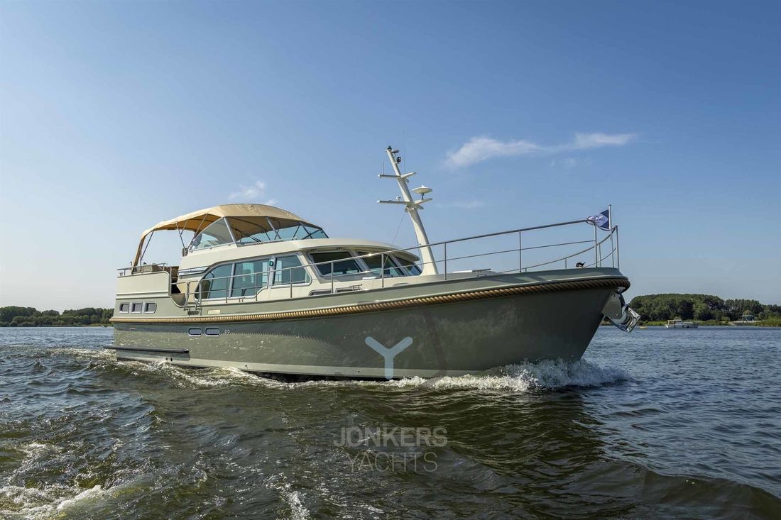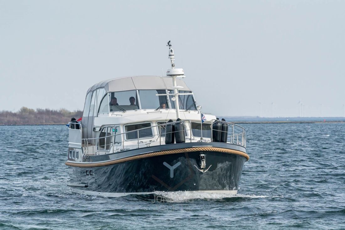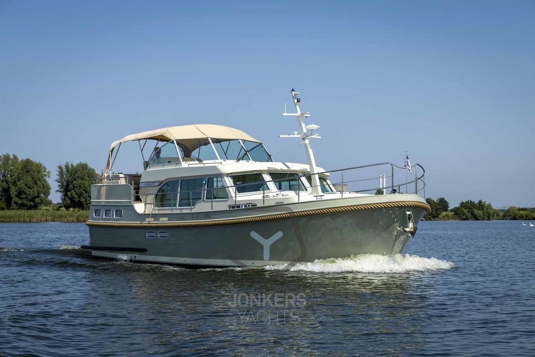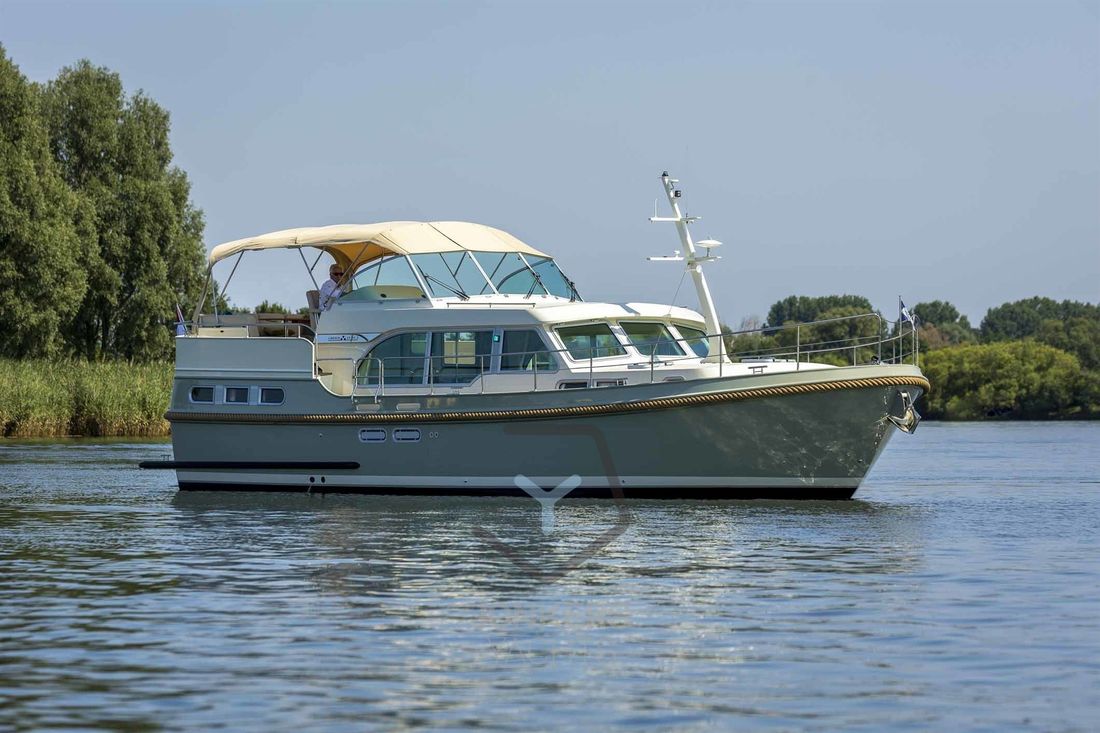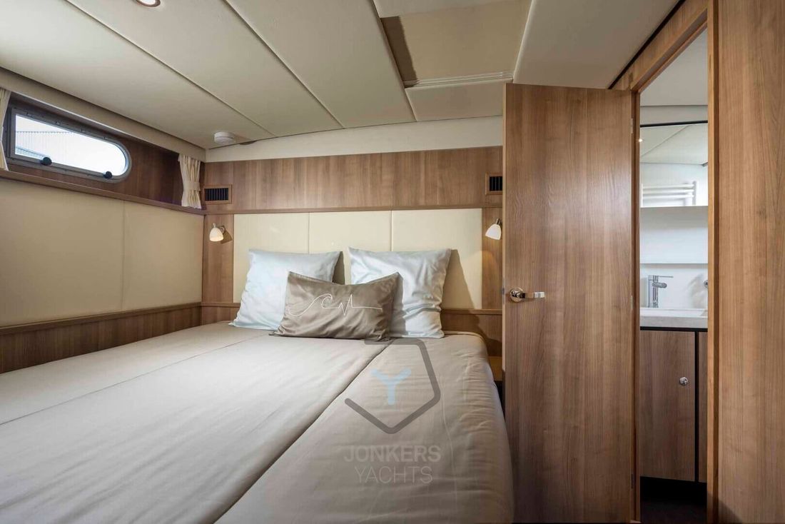 Linssen Grand Sturdy 45.0 AC INTERO De Grand Sturdy 45.0 is het voorbeeld van een luxe stalen motorjacht met veel leefruimte en alle luxe aan boord. Zoals elke Grand Sturdy® biedt de 45.0 AC diverse opbergruimtes en alle luxe die je gewend bent. Dat maakt de Grand Sturdy 45.0 AC tot een echt luxe motorjacht. U zult versteld staan van het 'standaard' comfort aan boord van de 45.0 AC. Als je het niet hebt gevonden, is het als optie beschikbaar. De achterkajuit met tweepersoonsbed aan stuurboordzijde biedt een toiletruimte met elektrisch toilet en wastafel, douche en ruime inloopkast. Een ruime voorkajuit biedt een vrijstaand tweepersoonsbed met kasten, aangrenzend een aparte douche- en toiletruimte met elektrisch toilet en een middenkajuit met twee eenpersoonsbedden. In de salon kan de U-vormige zithoek worden omgebouwd tot een comfortabel tweepersoonsbed met behulp van het Easy Sleep Convert System®. Dat geeft de Grand Sturdy 45.0 AC 6+2 slaapplaatsen. 2-motorig optioneel