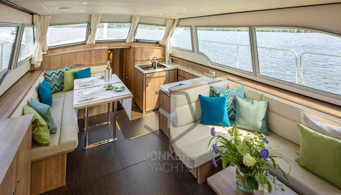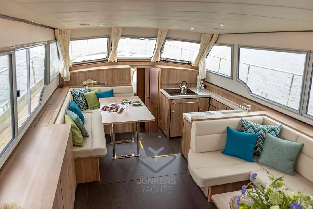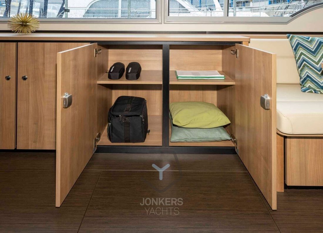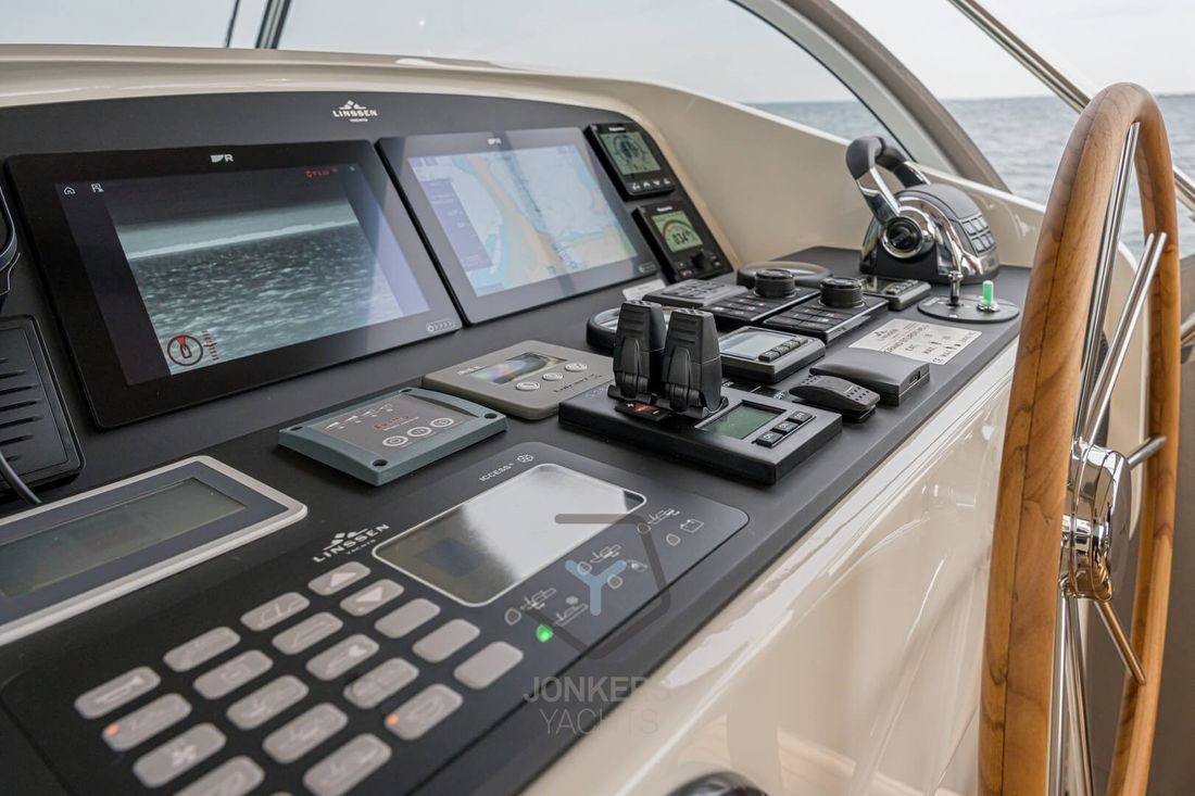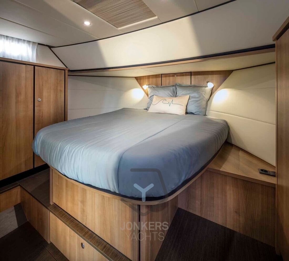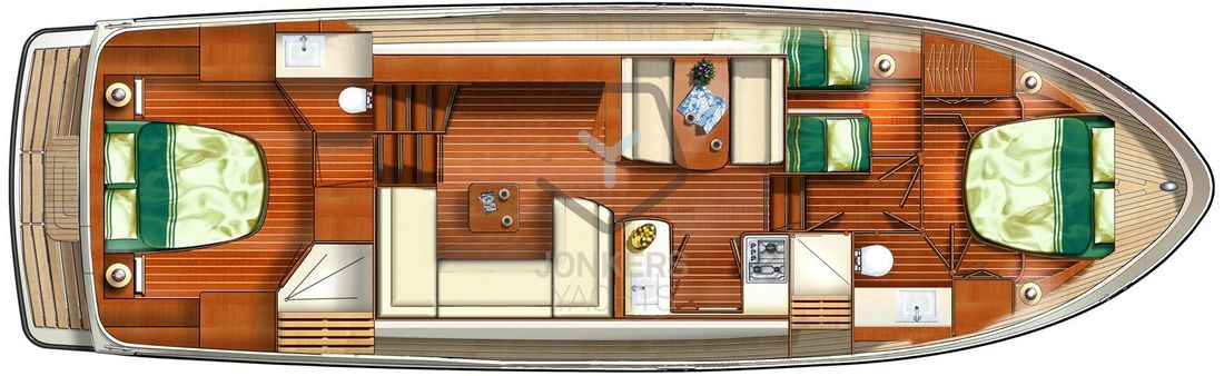 Linssen Grand Sturdy 45.0 AC INTERO De Grand Sturdy 45.0 is het voorbeeld van een luxe stalen motorjacht met veel leefruimte en alle luxe aan boord. Zoals elke Grand Sturdy® biedt de 45.0 AC diverse opbergruimtes en alle luxe die je gewend bent. Dat maakt de Grand Sturdy 45.0 AC tot een echt luxe motorjacht. U zult versteld staan van het 'standaard' comfort aan boord van de 45.0 AC. Als je het niet hebt gevonden, is het als optie beschikbaar. De achterkajuit met tweepersoonsbed aan stuurboordzijde biedt een toiletruimte met elektrisch toilet en wastafel, douche en ruime inloopkast. Een ruime voorkajuit biedt een vrijstaand tweepersoonsbed met kasten, aangrenzend een aparte douche- en toiletruimte met elektrisch toilet en een middenkajuit met twee eenpersoonsbedden. In de salon kan de U-vormige zithoek worden omgebouwd tot een comfortabel tweepersoonsbed met behulp van het Easy Sleep Convert System®. Dat geeft de Grand Sturdy 45.0 AC 6+2 slaapplaatsen. 2-motorig optioneel