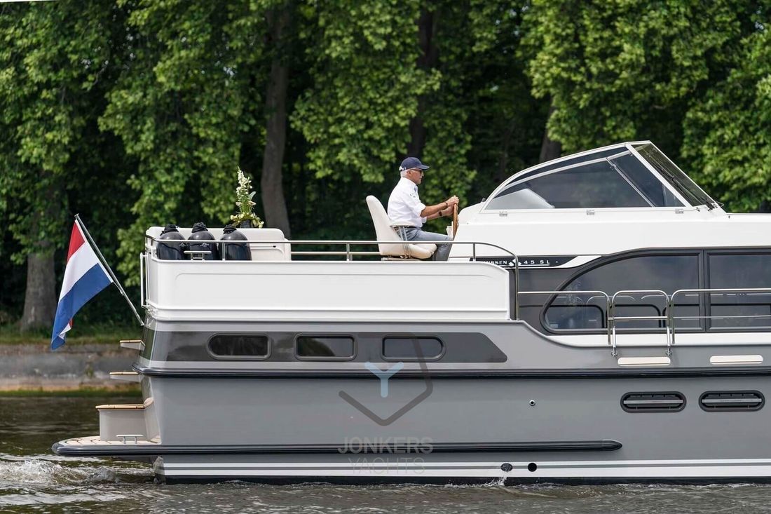 45 SL wisselstroom Ruim. Ruimer. Ruimste. De Linssen 45 SL is het grootste motorjacht uit onze SL-serie sportieve jachten. Een elegante verschijning die bijzonder geschikt is voor langere cruises met familie en vrienden door heel Europa. Maar natuurlijk ook gewoon voor een lang weekend niet zo ver van huis. Wie de 45 SL van buitenaf bekijkt, wordt visueel geprikkeld door de antracietkleurige accenten, de hoogwaardige roestvrijstalen elementen en de krachtige boeglijn. Zij zijn de blikvangers van onze nieuwe SL motorjachtserie. Een stijlrichting waarmee we er bewust voor kiezen om te innoveren in design, kleurstelling en interieur. Indeling Aan boord van de 45 SL ervaart u de luxe van de ruimte. En je vindt er volop ruimte voor luxe. De functionele indeling en het optimaal benutten van de beschikbare vierkante meters maken elke ruimte comfortabel. Alles wat je nodig hebt is aanwezig en alles wat je van huis meeneemt op je cruises kan gemakkelijk worden opgeborgen. Bij onze SL-serie hebben onze ontwerpers veel aandacht besteed aan exterieur en interieur. Het interieur valt op door zijn lichtheid en het gebruik van contrasterende materialen. In de 45 SL is het ook letterlijk licht, want door de grote, doorlopende salonramen en meerdere patrijspoorten kan er veel daglicht naar binnen. Om een sportieve uitstraling te creëren zijn deze ramen aan de buitenzijde afgewerkt in antraciet. De 45 SL is er ook in een AC variant met achterkajuit en een Sedan variant met ruime open kuip. De keuze is aan jou en is vooral een heel persoonlijke. 2-motorig optioneel