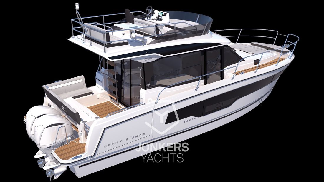weer een stap vooruit! Het concept van cruisen aan boord van 10 meter lange buitenboordmotorboten, Jeanneau doet het opnieuw, nu met een Flybridge-versie! De Merry Fisher 1095 S2 is al uniek in zijn categorie met een buitenboordmotor en drie cabines, loopt voor op de trends en is nu voorzien van een flybridge. Zeilen was nog nooit zo leuk! De Merry Fisher 1095 FLY S2 beschikt over alle kwaliteiten van de Merry Fisher 1095 S2