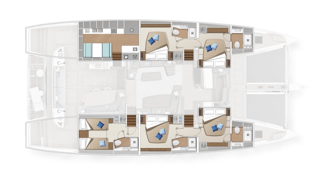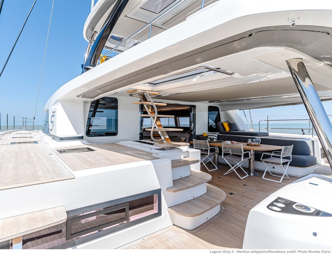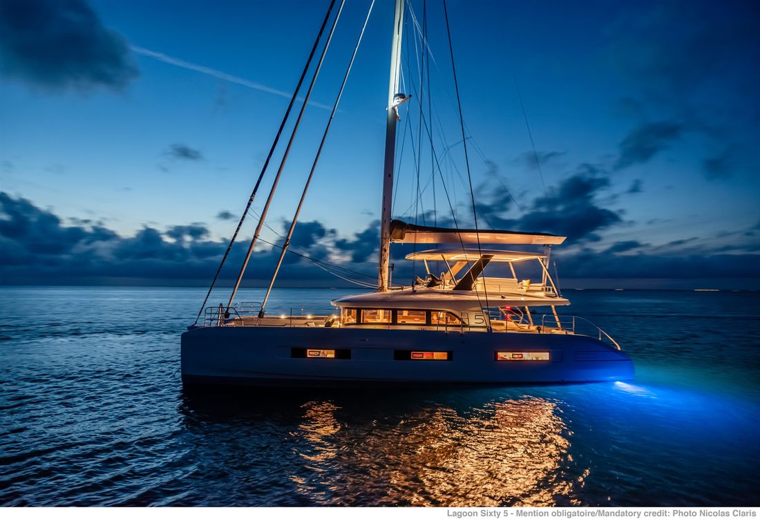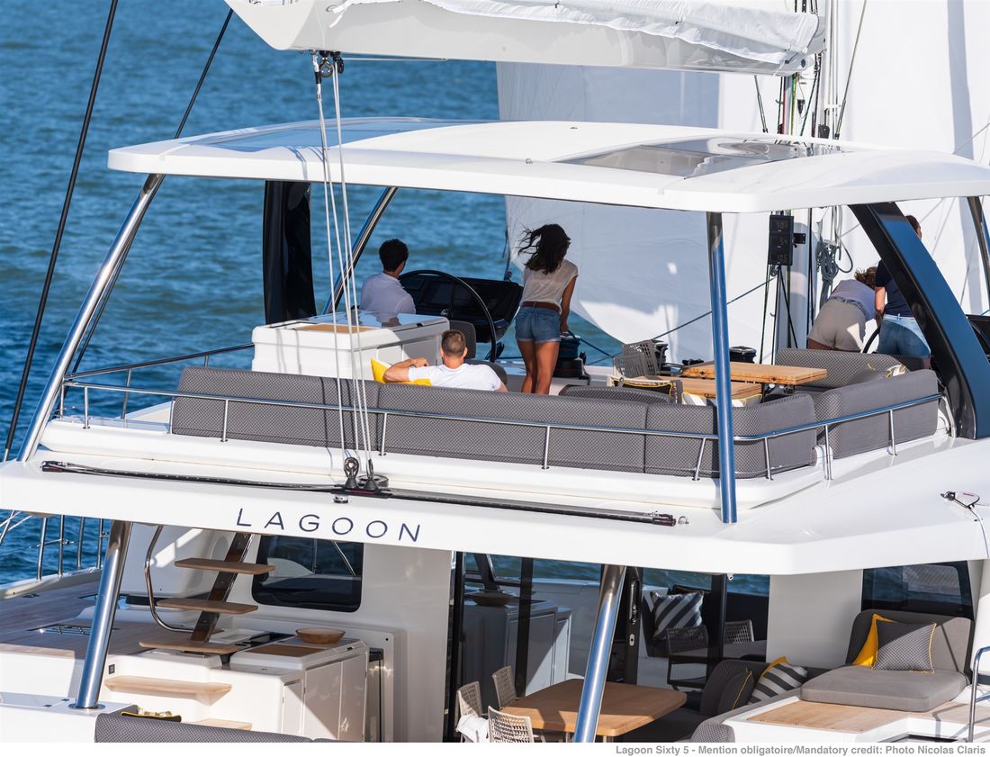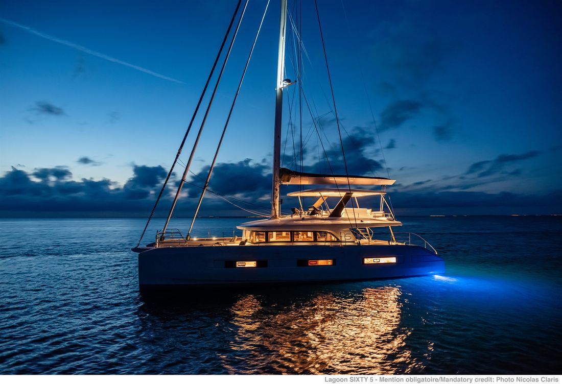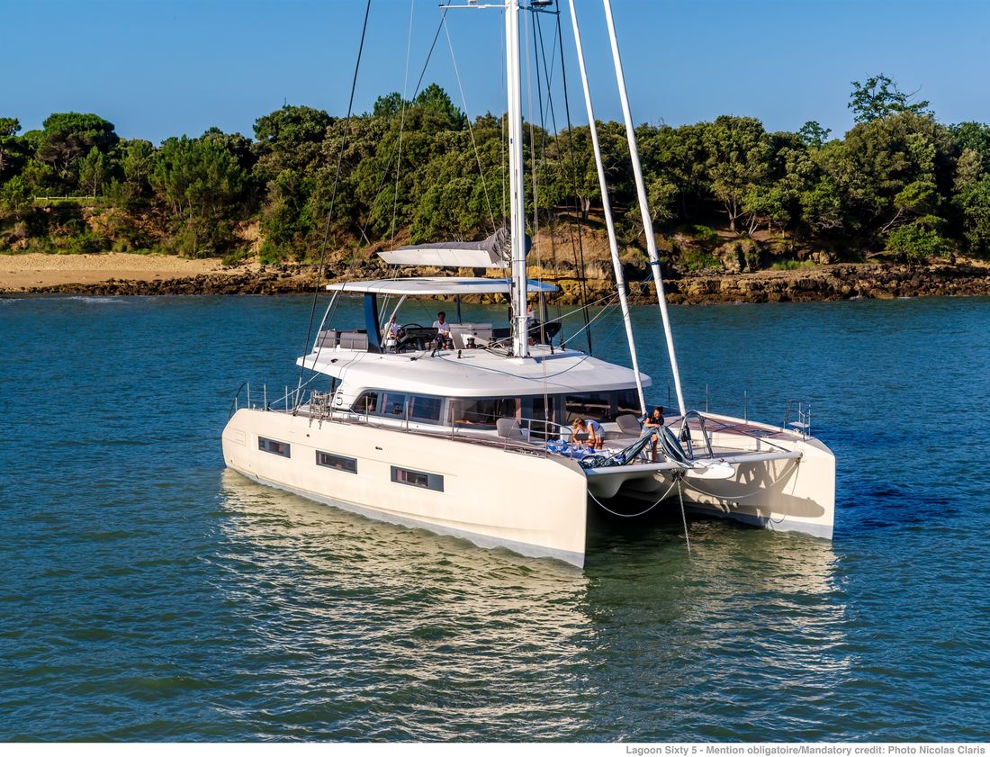 U bekijkt een modelpresentatie. Uiteraard kunt u dit jacht binnen de mogelijkheden naar wens configureren. Van indeling en uitrusting tot stoffering en afwerking ? er zijn opties genoeg! Voor meer informatie, advies op maat of het samenstellen van uw ideale jacht, bent u van harte welkom bij Nautisch Kwartier Stavoren. Wij begeleiden u graag bij het gehele traject, van oriëntatie tot oplevering. De Lagoon SIXTY5 Van voor naar achter heeft u prachtig 360-graden zicht waardoor u heerlijk van de omgeving kunt genieten. De salon is ruimtelijk, comfortabel en luxueus met open ruimtes en veel daglicht. Dit vindt u tevens terug in de cabin, waar u geniet van een royale stahoogte, fijn lichtinval en een adembenemend uitzicht. De eigenaarshut beschikt over een eigen uitgang naar de buitenruimte en het zwemplateau. Comfort, luxe en stijl komen samen met sublieme zeileigenschappen op de Lagoon SIXTY5. Neem voor meer informatie contact op met Nautisch Kwartier Stavoren. Elektronische navigatie-instrumenten: AIS, Navtex (weerschrijver), SSB. Technische- en dekuitrusting: Alternator, Trailer, Buitendouche (deck), Dubbele besturing, Windgenerator, Kraan voor bijboot, Kraan voor bijboot, Zonnepanelen, Platform, Handmatige bilgepomp, Teakdek, Walaansluiting 230V, Zwemtrap, Stabilisatoren, Kuiptafel, Bijboot, Hydraulische lier. Huishoudelijke apparatuur aan boord: Warmwater boiler, Satellietinternetverbinding, Watermaker. Veiligheidsuitrusting: Navigatiekaarten, Reddingsvesten, Signaalraketten, Reddingsboei. Vermaak: Blu-ray, Radio AM/FM, Satelliet ontvanger. Keuken & Apparatuur: 5 Fornuis. Bekleding: Kuiptent, Kussens, Boothoes.