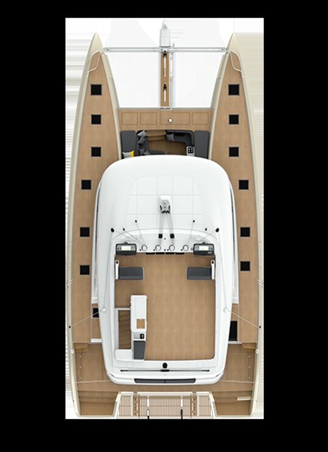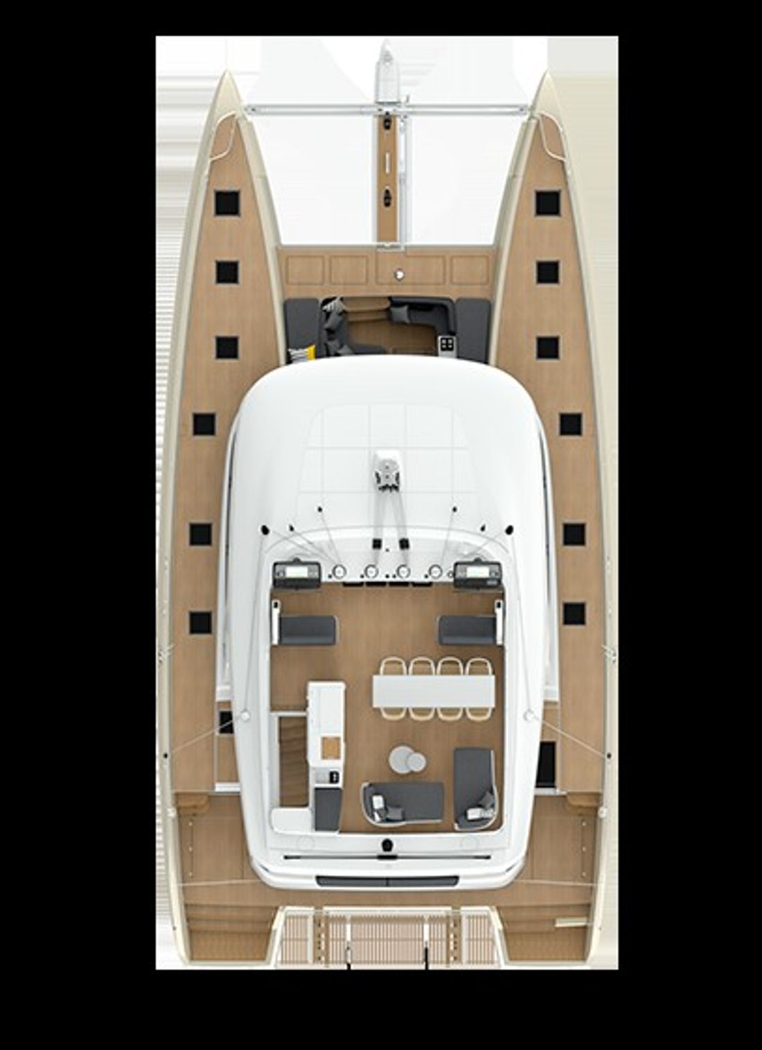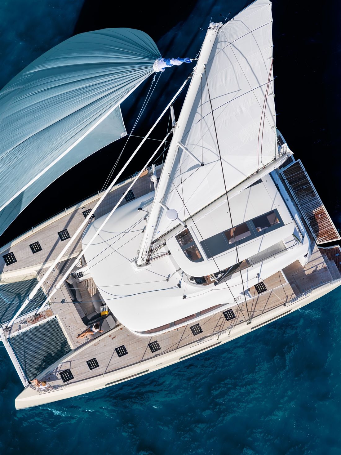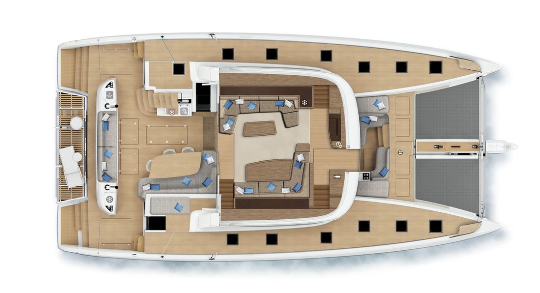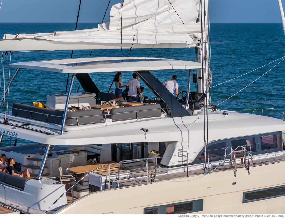 U bekijkt een modelpresentatie. Uiteraard kunt u dit jacht binnen de mogelijkheden naar wens configureren. Van indeling en uitrusting tot stoffering en afwerking ? er zijn opties genoeg! Voor meer informatie, advies op maat of het samenstellen van uw ideale jacht, bent u van harte welkom bij Nautisch Kwartier Stavoren. Wij begeleiden u graag bij het gehele traject, van oriëntatie tot oplevering. De Lagoon SIXTY5 Van voor naar achter heeft u prachtig 360-graden zicht waardoor u heerlijk van de omgeving kunt genieten. De salon is ruimtelijk, comfortabel en luxueus met open ruimtes en veel daglicht. Dit vindt u tevens terug in de cabin, waar u geniet van een royale stahoogte, fijn lichtinval en een adembenemend uitzicht. De eigenaarshut beschikt over een eigen uitgang naar de buitenruimte en het zwemplateau. Comfort, luxe en stijl komen samen met sublieme zeileigenschappen op de Lagoon SIXTY5. Neem voor meer informatie contact op met Nautisch Kwartier Stavoren. Elektronische navigatie-instrumenten: AIS, Navtex (weerschrijver), SSB. Technische- en dekuitrusting: Alternator, Trailer, Buitendouche (deck), Dubbele besturing, Windgenerator, Kraan voor bijboot, Kraan voor bijboot, Zonnepanelen, Platform, Handmatige bilgepomp, Teakdek, Walaansluiting 230V, Zwemtrap, Stabilisatoren, Kuiptafel, Bijboot, Hydraulische lier. Huishoudelijke apparatuur aan boord: Warmwater boiler, Satellietinternetverbinding, Watermaker. Veiligheidsuitrusting: Navigatiekaarten, Reddingsvesten, Signaalraketten, Reddingsboei. Vermaak: Blu-ray, Radio AM/FM, Satelliet ontvanger. Keuken & Apparatuur: 5 Fornuis. Bekleding: Kuiptent, Kussens, Boothoes.