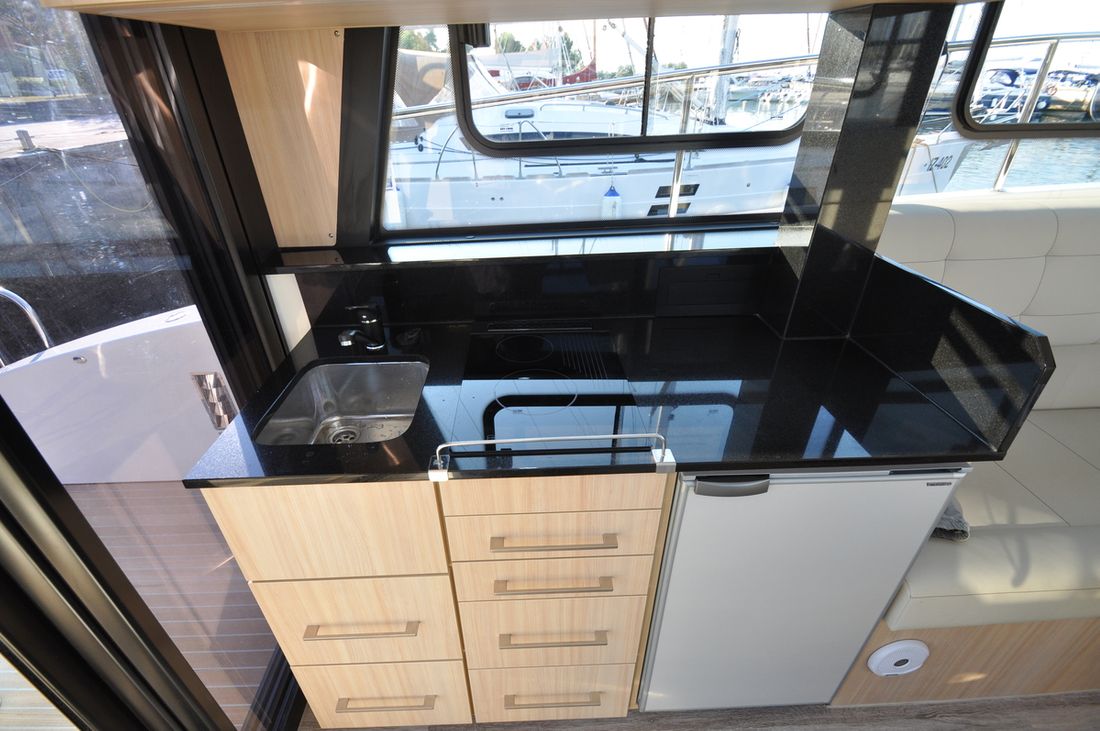 Ruimtes Salon Eethoek Machinekamer Hutten 3 Aankleding Type interieur Modern, licht Matrassen Kussens Gordijnen Water Watertank & materiaal Watertankmeter Vuilwatertank & materiaal Vuilwatertankmeter Vuilwatertank afvoerpomp Watersysteem druksysteem Warm water Sanitair Aantal douches 3 Toiletten 3 Elektrisch Keuken Kooktoestel & brandstof Oven Opmerkingen Oven Optioneel Aantal 1 Magnetron Opmerkingen Magnetron Optioneel Aantal 1 Koelkast & voeding Opmerkingen Koelkast & voeding extra koelkast op Flybridge is mogelijk Voeding elektrisch Klimaatregeling hete lucht Airconditioning Opmerkingen Airconditioning Optioneel:- Airconditioning in de salon- Airconditioning in de salon en de hutten -