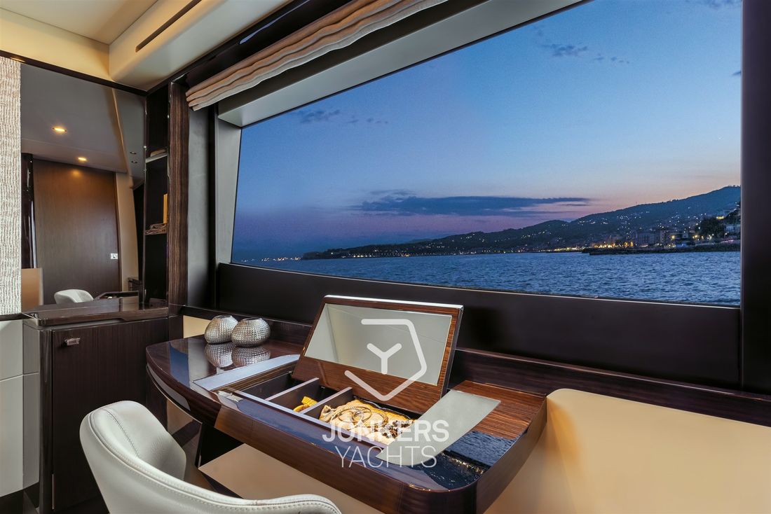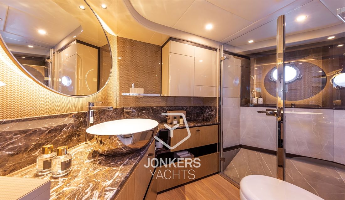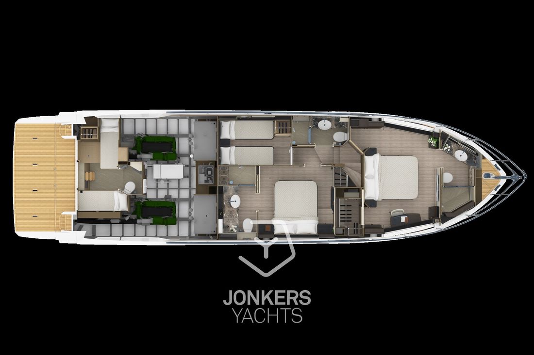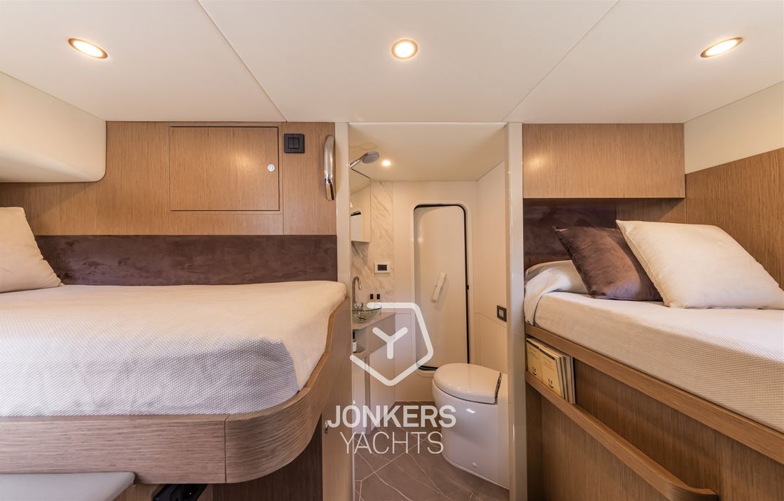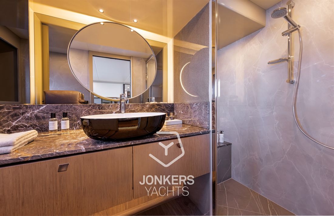 een cabine over de volle breedte. Het is verhoogd en heeft hoge plafonds, en beschikt over exclusief meubilair en een elegante afwerking. De verfijnde en rustige sfeer verbetert het comfort en de privacy met een grote inloopkast, een ijdelheid met uitzicht op zee en grote zijramen om je omringd te voelen door de natuur. De VIP-cabine heeft alle kenmerken van de mastercabine