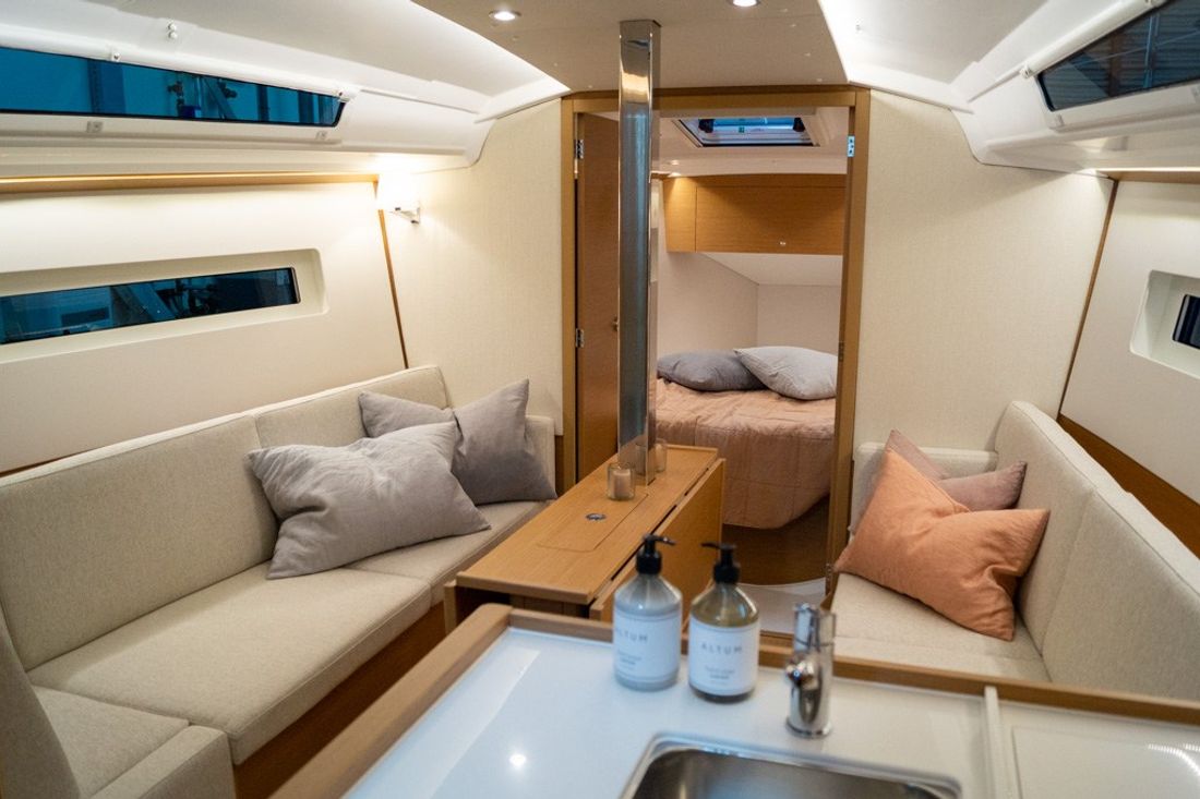 Nu op voorraad bij Nautisch Kwartier Stavoren: een gloednieuwe Jeanneau Sun Odyssey 350! Dit model is uitgevoerd met twee cabines, één natte cel en een korte kiel, waarmee het jacht een diepgang van 1,50 m heeft. De Jeanneau Sun Odyssey 350 is een modern en sportief jacht, uitgerust met de nieuwste opties om zorgeloos en comfortabel te zeilen. De uitvoering van het model combineert performance, innovatie en luxe, precies zoals u dat van Jeanneau mag verwachten. - Downwind Pack ? voor optimale zeilbeleving - Spinnaker / Code 0 rigging fittings - Extra Lier handle - Extra lier op kajuitdak - Windex 15 - Geïntegreerde boegspriet met anker - Electronic Pack Cruising ? navigatie en controle - Raymarine i70s multifunction display - Diepte- en snelheidsensor - Masthead windsensor - Raymarine Ray63 VHF - Raymarine p70s autopilot + ACU200 core unit en gyrokompas - Anchoring Kit ? veilig en betrouwbaar ankeren - Delta anker 16 kg - 28 meter ketting (Ø 10 mm) - 40 meter ankerlijn (Ø 18 mm) Comfort & afwerking - Houten bladen voor de kuiptafel - Trim Level Première ? inclusief hoogwaardige afwerking en extra comfort Deze Sun Odyssey 350 is te bezichtigen bij Nautisch Kwartier Stavoren. Wilt u meer informatie of een afspraak maken? Neem contact met ons op en wij vertellen u graag alles over dit fantastische zeiljacht. Elektronische navigatie-instrumenten: Kettingteller, Log (Diepte en snelheidsmeter), Autopiloot (RAYMARINE p70s AUTOPILOT + ACU200 CORE UNIT AND GYROCOMPAS), Marifoon (Raymarine RAY 63), Meetinstrumenten (Raymarine i70s display). Technische- en dekuitrusting: Anker (16kg Delta anker), Selftailing lier, Accu's (2x 100 Ah), Acculader (40Ah), Walstroomkabel, Railing, Zeerailing, Buitendouche, Anker bevestiging (Lijn en ketting), Accumonitor, Stootwillen, Platform (Uitklapbaar zwemplatform), Handmatige bilgepomp, Walaansluiting 230V, Elektrische ankerlier, Gangboord (Unieke doorlopende gangboorden), Kuiptafel, Windex (Windex 15). Huishoudelijke apparatuur aan boord: Warmwater boiler, Fecaliëntank, Brandstoftankindicator, Watertankmeter, Vuilwatertankmeter, 12V Stopcontacten, 230V Stopcontacten, Watersysteem. Veiligheidsuitrusting: Zelflozende kuip, Reddingsboei. Accessoires Zeilen: Spinnaker uitrusting, Rolfok systeem, Lazy Bag (Kleur Graphite), Giek neerhouder. Keuken & Apparatuur: Keuken, Fornuis (2-Pits gasfornuis), Kompressor koelkast. Bekleding: Verduistering.
