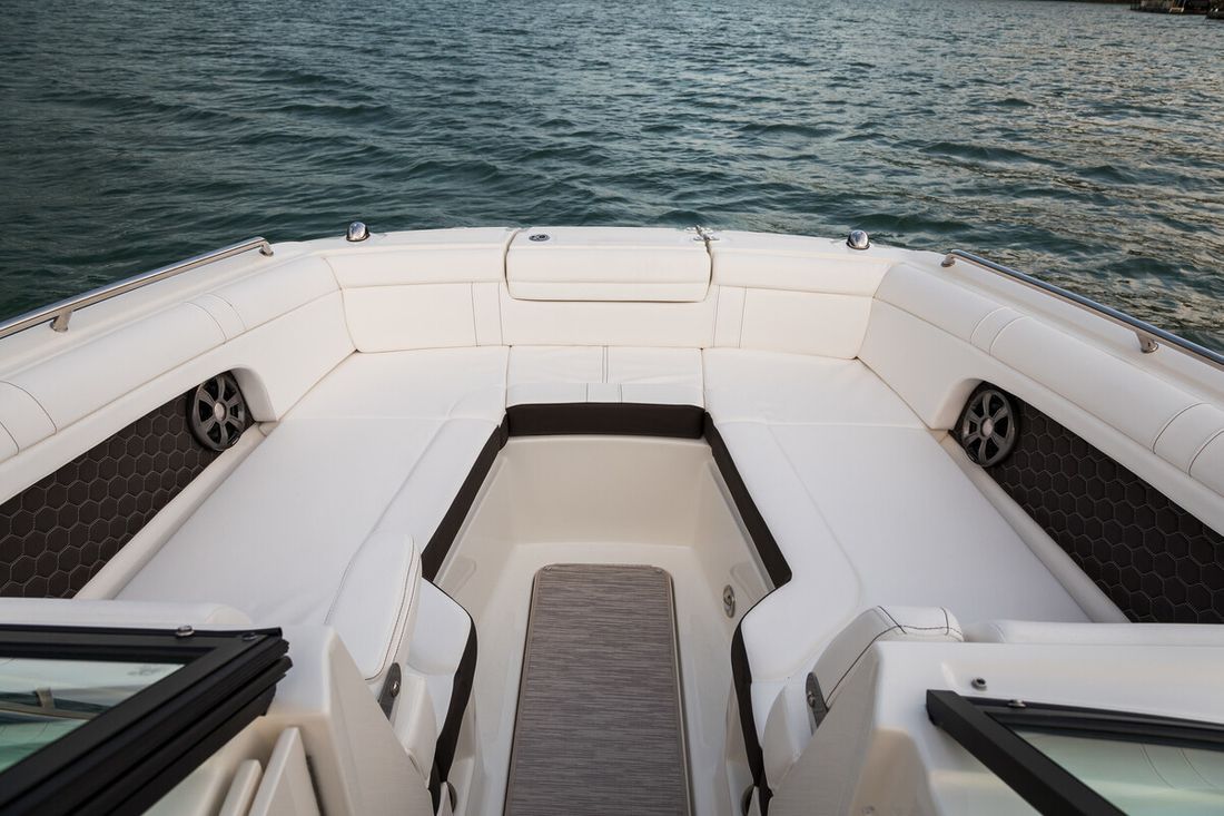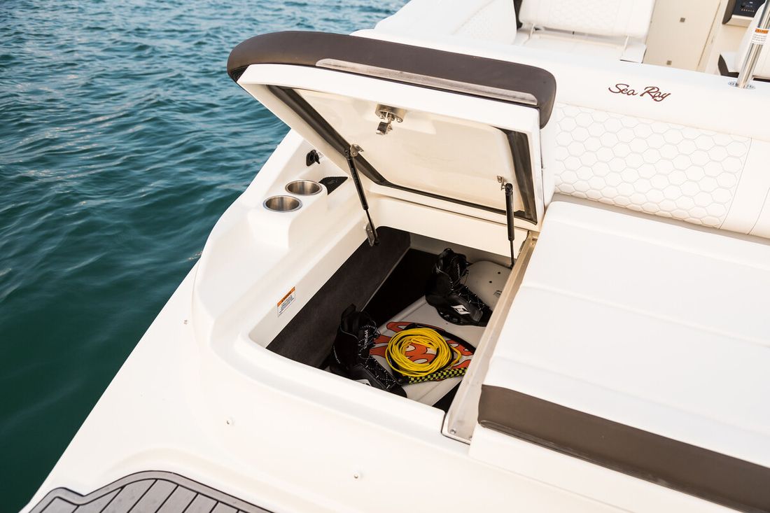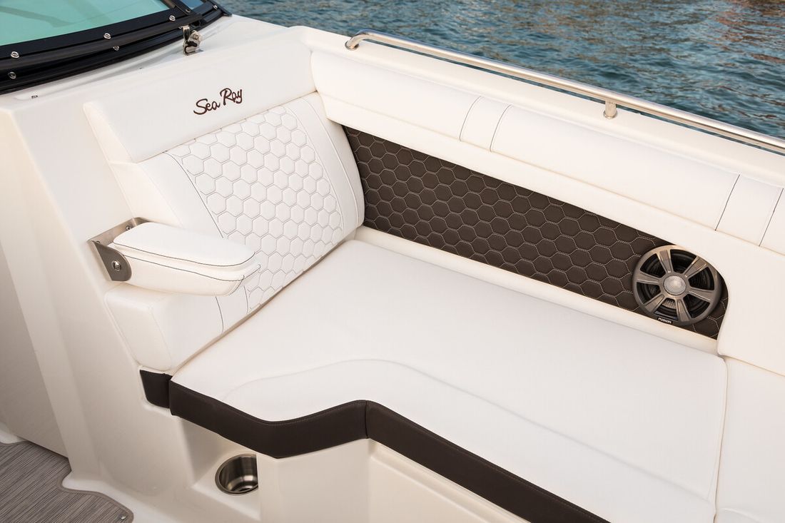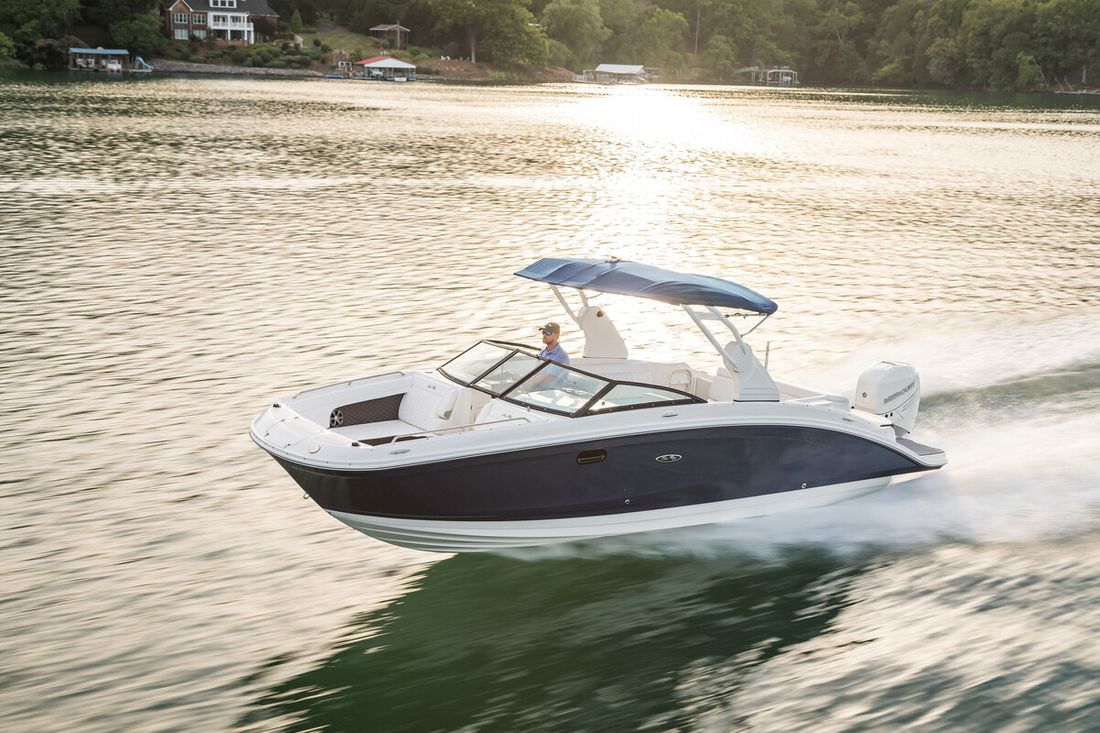 De Sea Ray SDX 270 Outboard 2021 model is een robuuste sportieve bowrider met een lengte van 8.30 en een breedte van 2.59. De hull van de Sea Ray SDX 270 is te verkrijgen in meerder kleuren, hetzelfde geldt voor het interieur. De Sea Ray SDX 270 is standaard voorzien van een krachtige Mercury 250 pk Verado en ook te verkrijgen in de 300 en 250 pk versie voor extra kracht en snelheid. De 300 en 350 pk Outboards zijn beschikbaar in een witte en een zwarte uitvoering. Voor de SDX 270 zijn er volop opties beschikbaar om de boot naar eigen wens te maken.