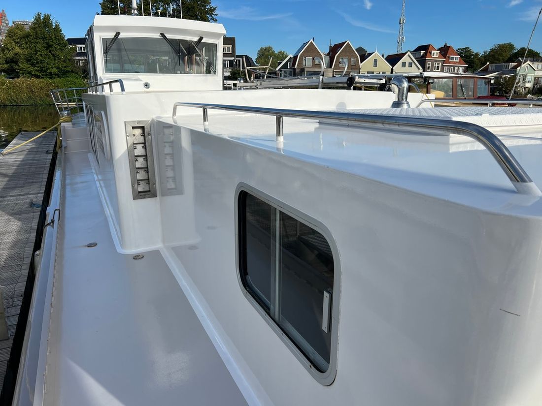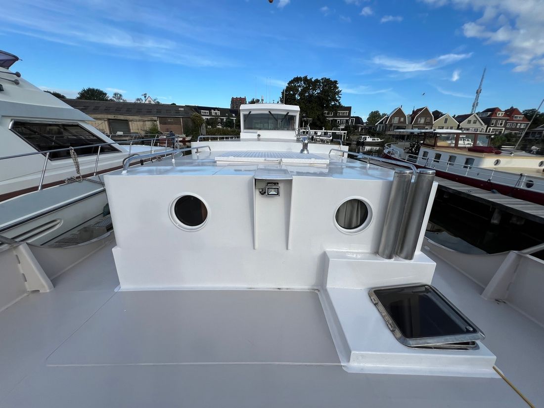? Stuurhut: De stuurhut is volledig uitgerust en biedt een panoramisch uitzicht, ideaal voor ontspannen vaarbewegingen of als extra leefruimte.