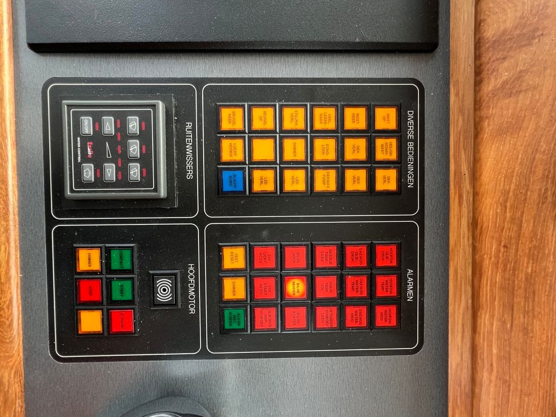 Ruimtes Salon Opmerkingen Salon Ruime kamer annex keuken. Keuken voorzien van L-vormig keukenblok, met aanrecht en 1 spoelbak. Bauknegt combimagnetron, Siemens koelkast, Siemens vriezer, Siemens 4 kookzones inductie, en een luik met gasveren naar ruime berging onder de vloer. 3 slaapkamer en 2 douche ruimtes. 1 dagtoilet Machinekamer Hutten 3 Salon Indeling en verblijfsruimtes Ruime living met L-vormige keuken, 3x 2 persoons slaapkamers waarvan 2 met douche. Ruime stuurhut met een prachtig uitzicht. Aankleding Type interieur Klassiek, warm Opmerkingen Type interieur Mahonie interieur met lichte meubelen. Gordijnen Water Watertank & materiaal Inhoud 12000 liter Materiaal watertank kunststof Watertankmeter Watersysteem druksysteem Warm water dekwaspomp Sanitair Aantal douches 2 Opmerkingen Aantal douches In 2 van de 3 slaapkamers. Toiletten 1 Klimaatregeling CV Opmerkingen Verwarming Elco Olie gestookte cv ketel met radiatoren door gehele schip. -