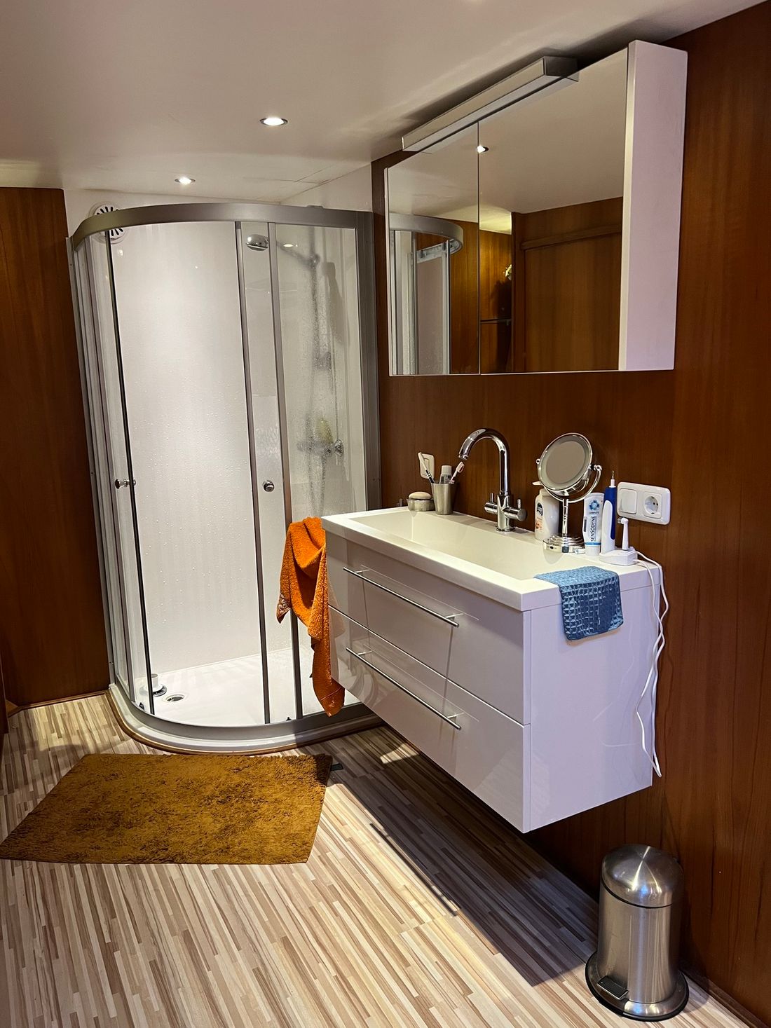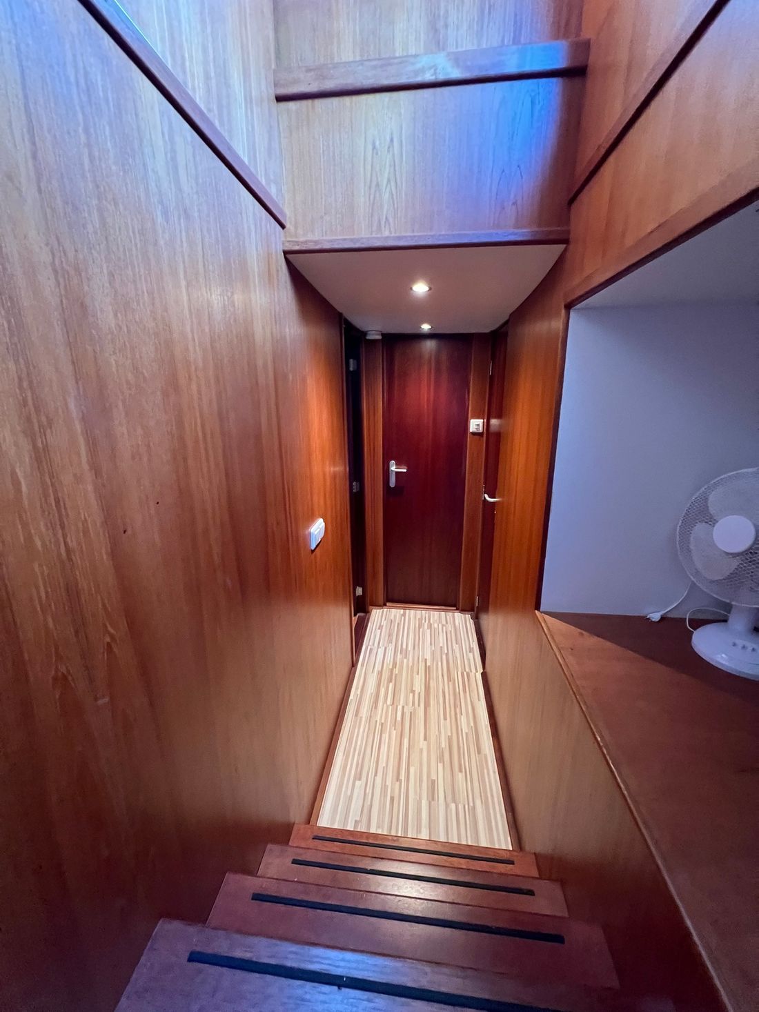 ? Slaapkamers: Het schip beschikt over drie slaapkamers, elk met voldoende ruimte voor comfortabel verblijf. De kamers zijn licht en efficiënt ingericht, ideaal voor langere verblijven of bewoning. 2 badkamers en een centroe toiletruimte.