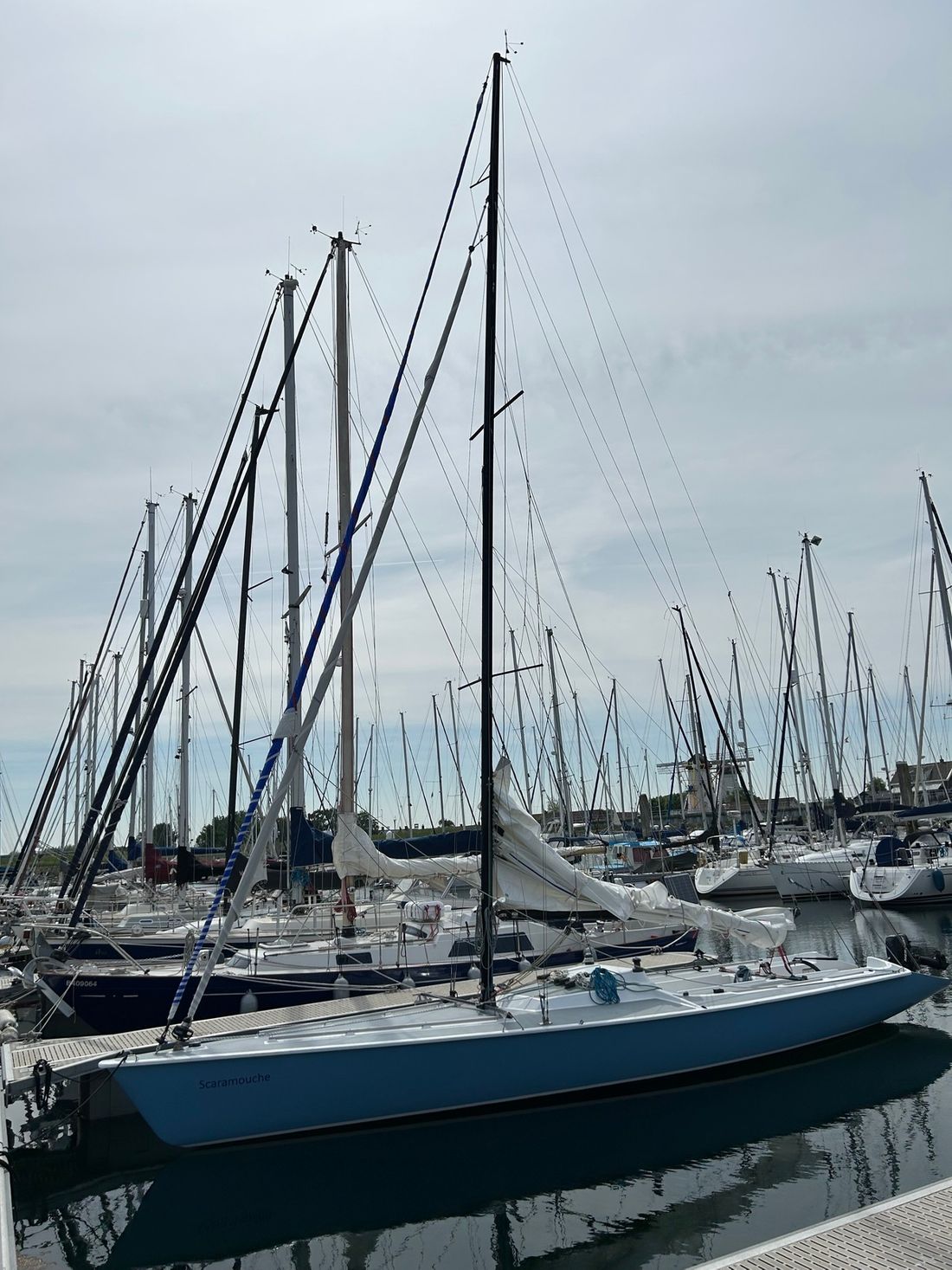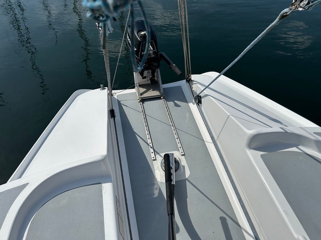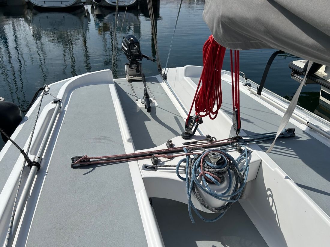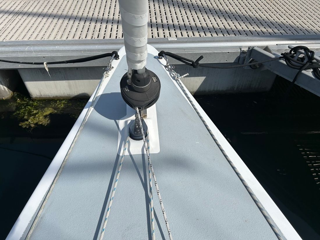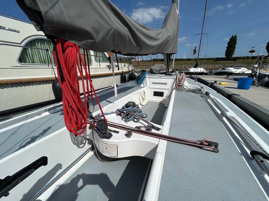 Algemeen Type tuigage fractioneel Aantal masten 1 Mast materiaal aluminium Verstaging staaldraad Aantal zeilen 3 Groot- en achterzeilen Grootzeil Opmerkingen Grootzeil Dacron Dimension Polyant 27 m2 Zeilmaker De Jong Sails Voorzeilen Fok Opmerkingen Fok Dacron Dimension Polyant 15 m2 Voorzeil rolsysteem Merk Voorzeil rolsysteem Selden Furlex 104S Gennaker Opmerkingen Gennaker Elvstrom met Selden furling Lieren Aantal 2 -