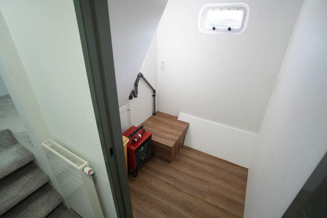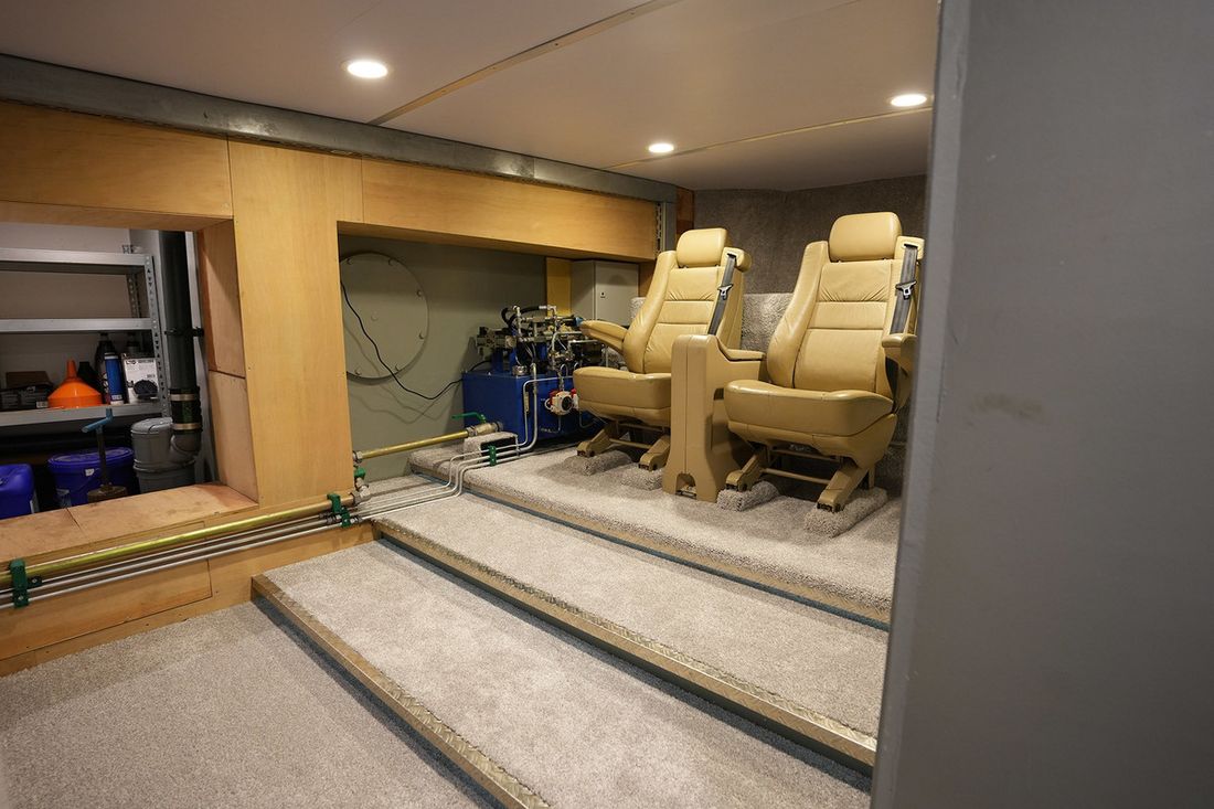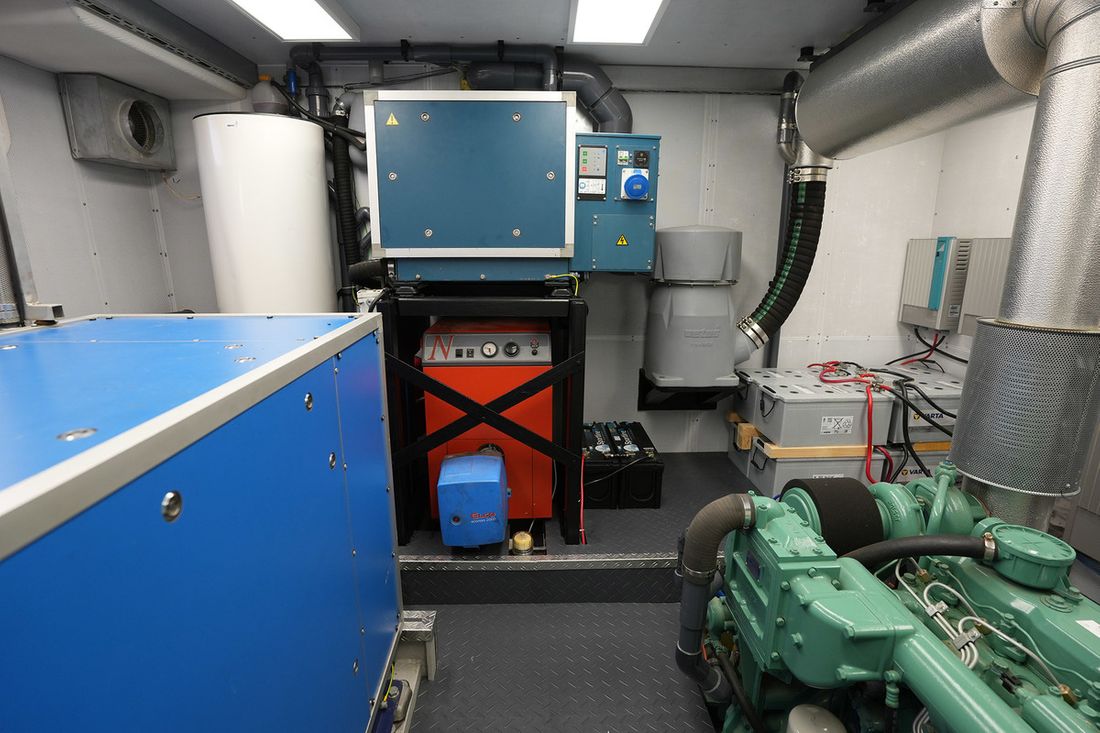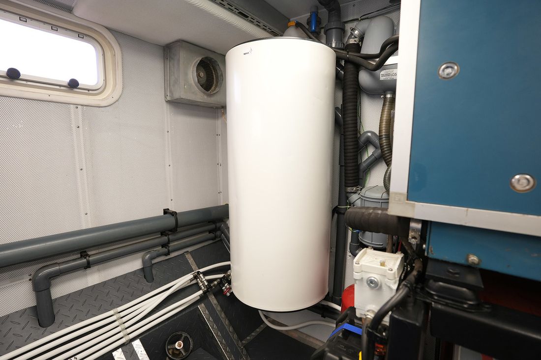 De Trawler is professioneel gebouwd en uitgerust met alles wat nodig is voor een zelfvoorzienend leven aan boord, zoals centrale verwarming, zonnepanelen, en een uitgebreide technische ruimte.