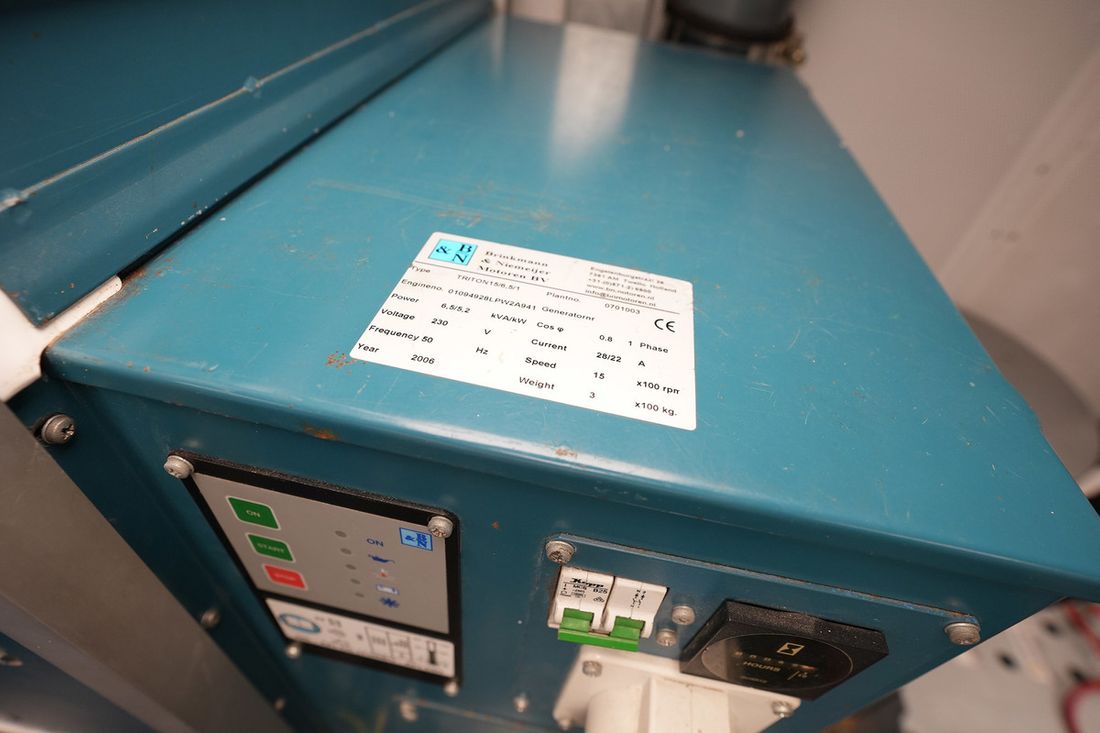Motorisatie Aantal identieke motoren 1 Start type elektrisch Hoofdmotor Type binnenboord Merk Doosan Daewoo L126TIH Serienummer 706113 Bouwjaar 2007 Aantal cilinders 6 Vermogen 360 pk Urenteller Draaiuren 164 Opmerkingen Draaiuren Ca. 165 vaaruren Brandstof diesel Aandrijving Overbrenging schroefas Voortstuwing schroef Koeling direct Tank Brandstoftank aantal Totale inhoud brandstoftank(s) 10000 liter Materiaal brandstoftank staal Meetinstrumenten motor Brandstoftankmeter Merk brandstoftankmeter Vetus Toerenteller Merk toerenteller Doosan Oliedrukmeter Merk oliedrukmeter Doosan Temperatuurmeter Merk temperatuurmeter Doosan Boeg- en hekschroef Boegschroef elektrisch Opmerkingen Boegschroef 380V / 50pk Elektriciteit Accu Aantal 13 Acculader Opmerkingen Acculader 380V=200A / 220V=120A + zonnelader 60A Dynamo Accumonitor Generator Opmerkingen Generator 2 stuks Omvormer Voltmeter Walstroom Walstroomkabel Zonnepaneel Opmerkingen Zonnepaneel 6 stuks Verbruiksmonitor 24V 220V Opmerkingen Voltage + 380 V -