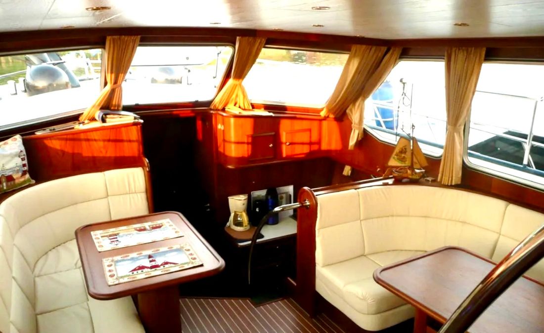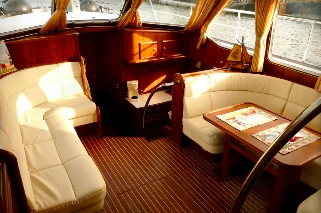 Goed onderhouden motorjacht Drait 42 de Luxe. Voorzien van boeg- en hekschroef, acculader/omvormer. Voorzien van e slaapkamers meg 8 slaapplaatsen. Ruim achterdek met grote rondzitgroep op achterdek en een XXL cabriokap. Jacht geschilderd in 2 componenten verfsysteem. Roerstandaanwijzer, Dieptemeter etc.
