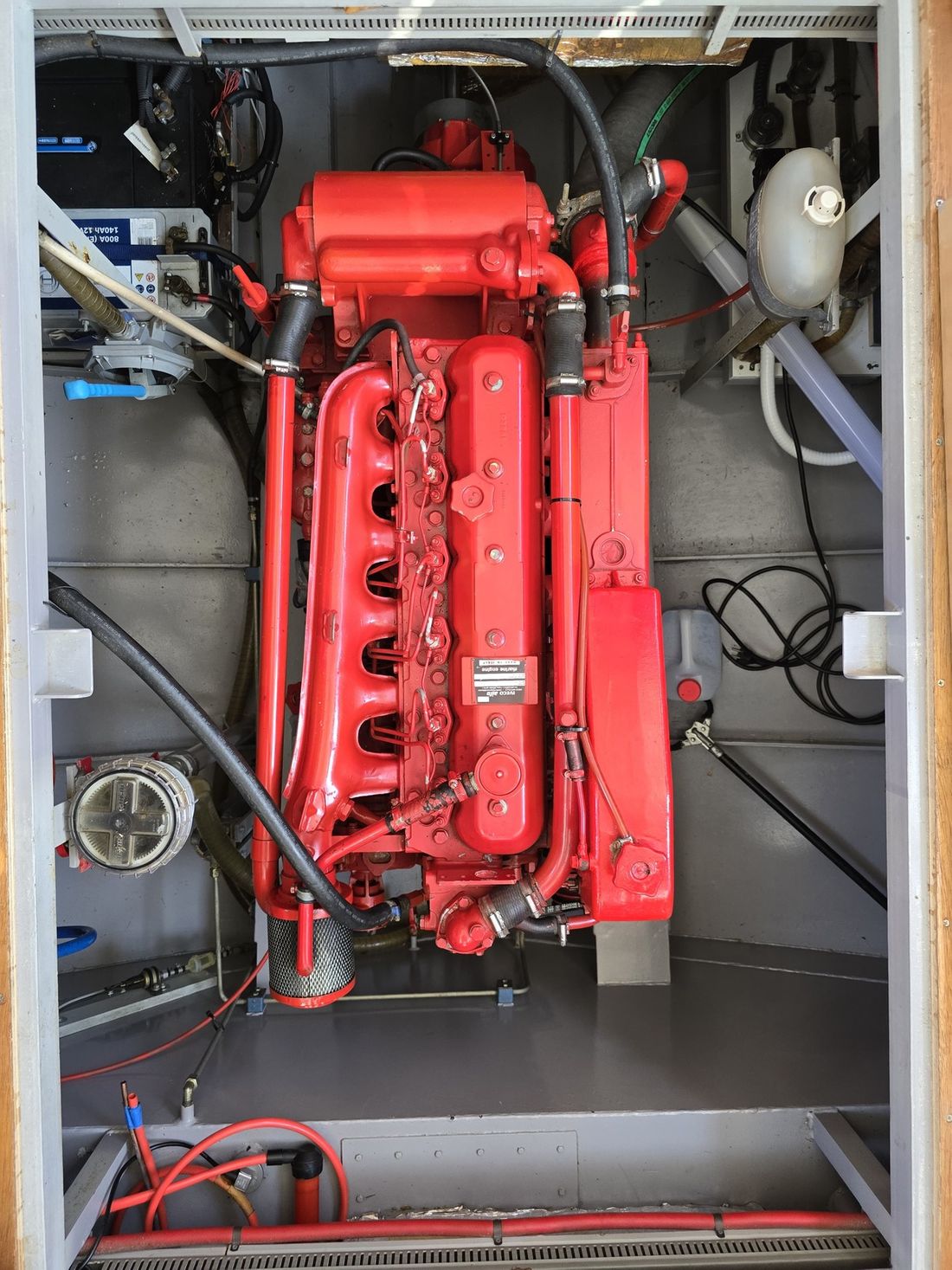 Hoofdmotor Merk Iveco Bouwjaar 1996 Vermogen 120 pk Draaiuren 2600 Brandstof diesel Aandrijving Voortstuwing schroef Koeling indirect Tank Brandstoftank aantal Aantal 1 Totale inhoud brandstoftank(s) 400 liter Meetinstrumenten motor Brandstoftankmeter Toerenteller Oliedrukmeter Temperatuurmeter Boeg- en hekschroef Boegschroef elektrisch Elektriciteit Accu Acculader Dynamo Omvormer Capaciteit 2000 Voltmeter Walstroom 12V 220V -