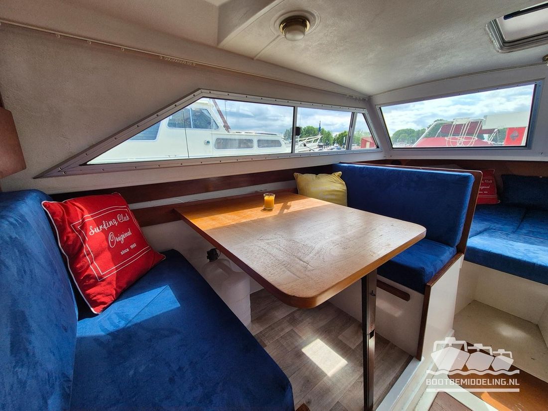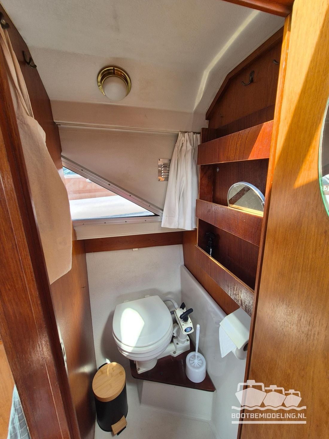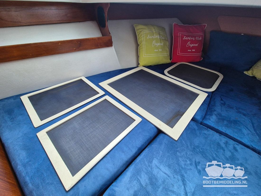 Ruimtes Salon Opmerkingen Stahoogte Stahoogte onder buiskap: 190 cm, binnen in cabin: 175 cm. Eethoek Opmerkingen Slaapplaatsen V-bed: 210 breed x 175 diep. Bakboord 205 cm lang, stuurboord 195 cm lang. Dinette 195 x 105 cm Aankleding Type interieur Klassiek, warm Kussens Gordijnen Water Watertank & materiaal Inhoud 100 liter Vuilwatertank & materiaal Dekafzuiging vuilwater Watersysteem druksysteem Sanitair Toiletten 1 Handmatig Keuken Kooktoestel & brandstof Aantal 2 Kookbrandstof gas Magnetron Opmerkingen Magnetron Inventum Koelkast & voeding Opmerkingen Koelkast & voeding Dometic, compressor Voeding elektrisch -