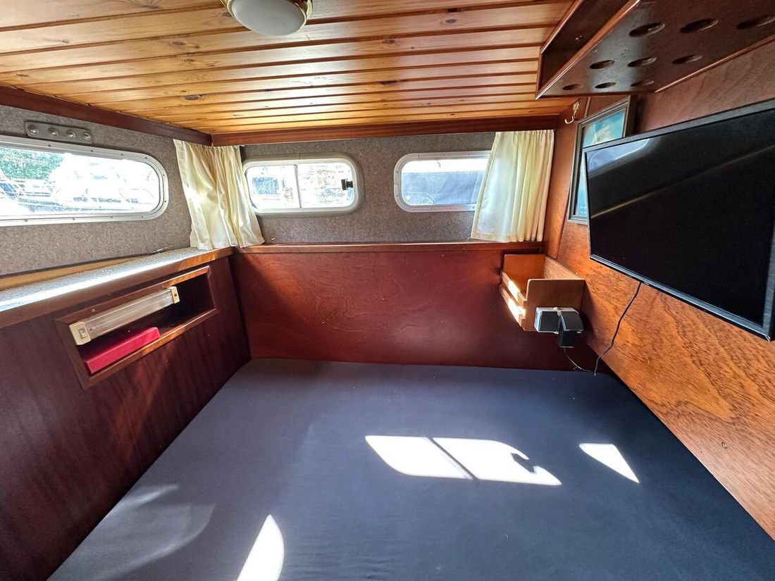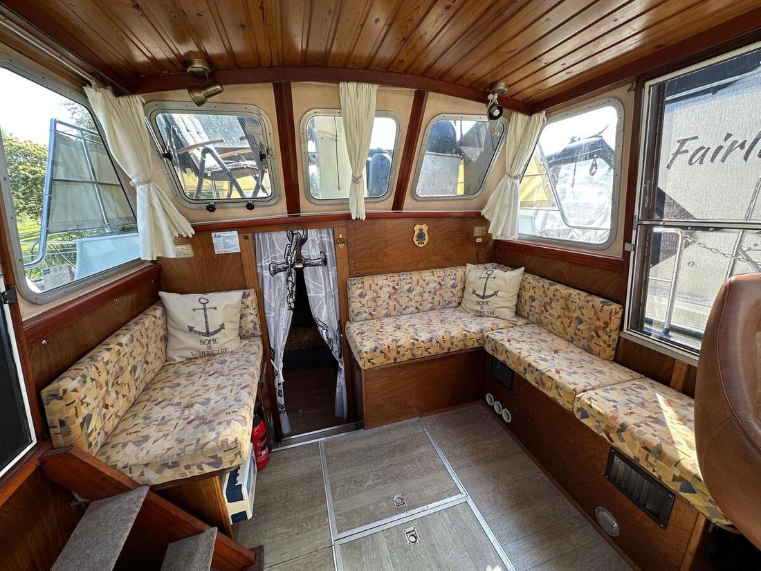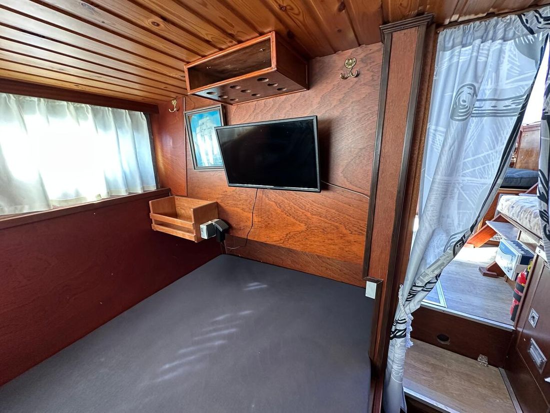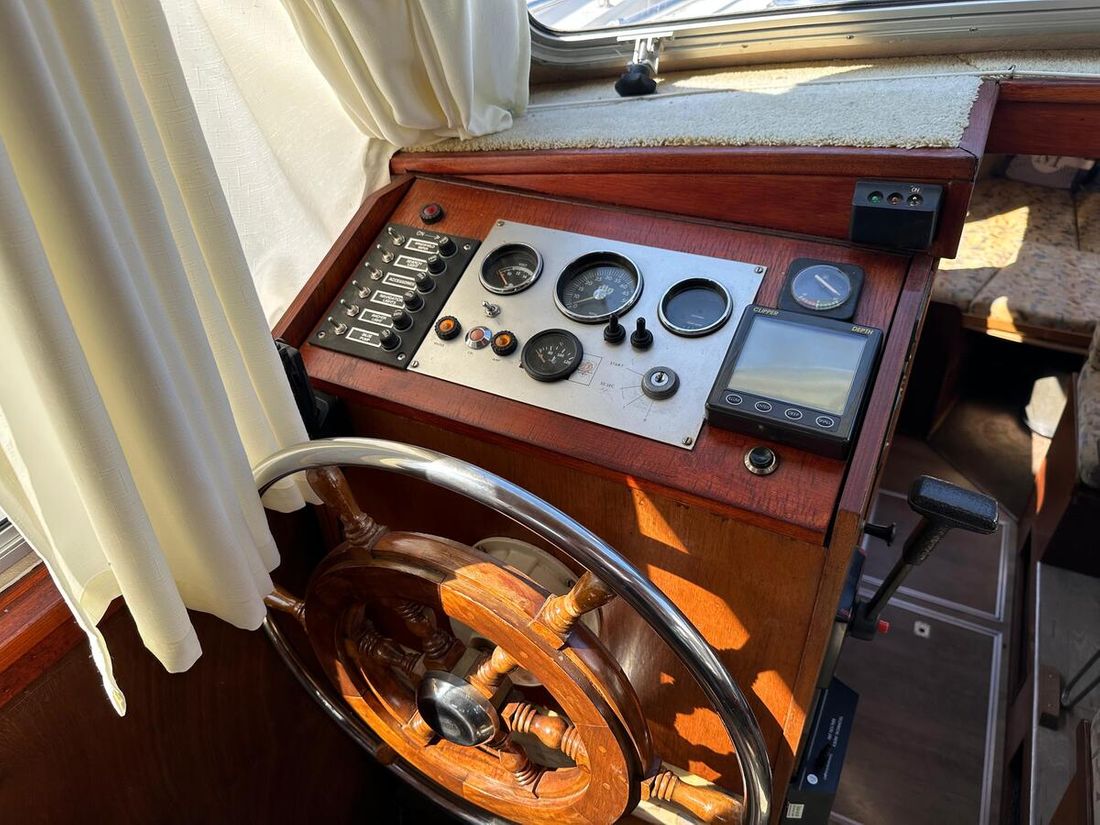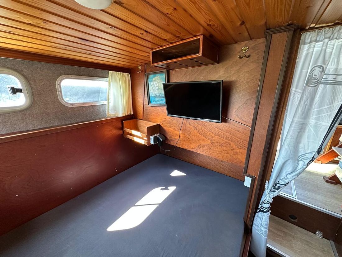 Motorisatie Aantal identieke motoren 1 Start type elektrisch Hoofdmotor Type binnenboord Merk Peugeot Model DTP50 Serienummer 3123957 Aantal cilinders 4 Vermogen 62 pk Urenteller Draaiuren 8355 Brandstof diesel Verbruik 3 liter/uur Aandrijving Overbrenging schroefas Voortstuwing schroef Koeling indirect Opmerkingen Koeling via warmtewisselaar Tank Brandstoftank aantal Aantal 1 Totale inhoud brandstoftank(s) 175 liter Materiaal brandstoftank staal Prestaties Max snelheid 14 liter Kruissnelheid 10 liter Meetinstrumenten motor Brandstoftankmeter Opmerkingen Brandstoftankmeter Peilglas Toerenteller Temperatuurmeter Elektriciteit Accu Opmerkingen Accu 1x start 125Ah 1x service 230Ah Aantal 2 Acculader Opmerkingen Acculader Waeco IU252A PerfectCharge Dynamo Walstroom Zonnepaneel Opmerkingen Zonnepaneel Solar30 regelaar 12V -