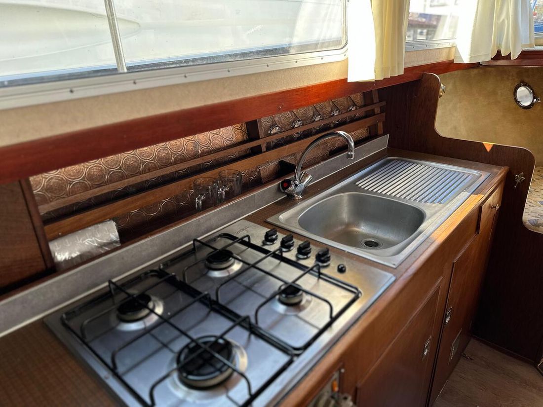 Ruimtes Eethoek Hutten 1 Opmerkingen Slaapplaatsen Dinette 190cmx120cm Punt 170x220 Achterkajuit 195 x 135 Salon Aankleding Type interieur Klassiek, warm Kleur stoffering gemêleerd Matrassen Kussens Gordijnen Water Watertank & materiaal Inhoud 170 liter Materiaal watertank kunststof Inhoud 27 liter Materiaal vuilwatertank RVS Vuilwatertank & materiaal Vuilwatertank afvoerpomp Dekafzuiging vuilwater Watersysteem druksysteem Warm water Opmerkingen Warm water 30L boiler op 220v en motor Sanitair Toiletten 1 Handmatig Entertainment TV Opmerkingen TV 2x Radio/CD-speler Satellietontvangst Keuken Kooktoestel & brandstof Aantal 4 Kookbrandstof gas Koelkast & voeding Voeding gas + elektrisch Vriezer Opmerkingen Vriezer vriesvak in koelkast Klimaatregeling Verwarming 1 hete lucht Opmerkingen Verwarming Webasto Airtop 3500ST -