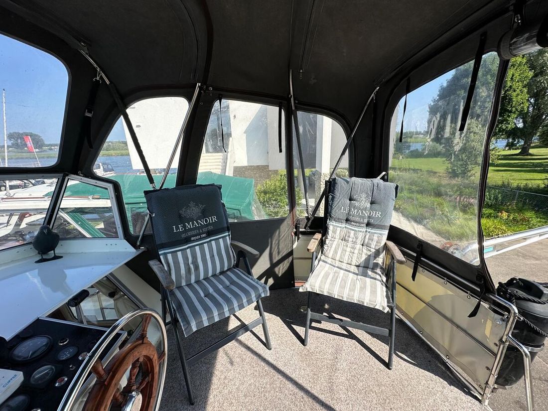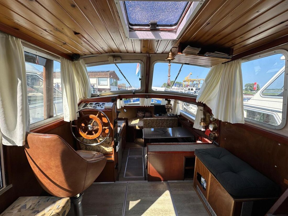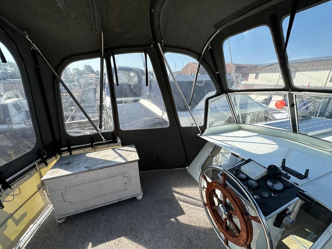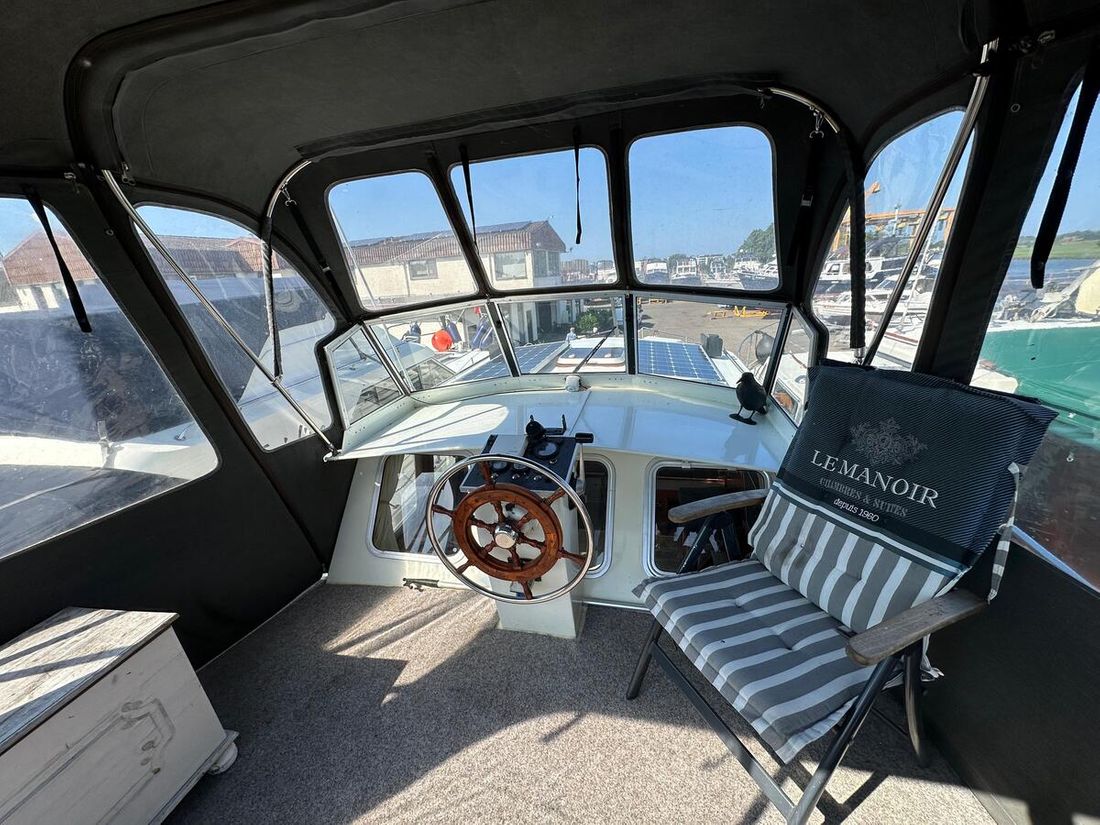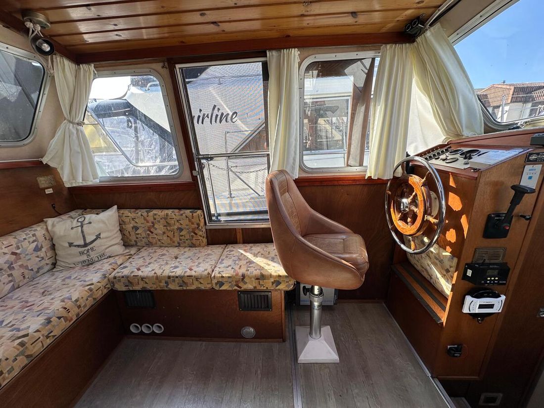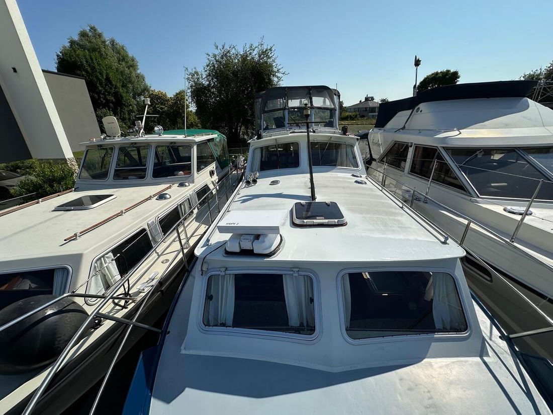 Nieuw geleverd Werf Hooveld, Nederland Romp, dek en opbouw Rompvorm knikspant Rompkleur wit Dek en opbouw kleur wit Dek en opbouw materiaal staal Achterkajuit (AK) Ramen in aluminium Afmetingen en gewichten Kruiphoogte 220 cm Waterverplaatsing 6000 kg Besturing en driftbeperking Besturing stuurwiel Plek besturing dubbel Roer enkel -