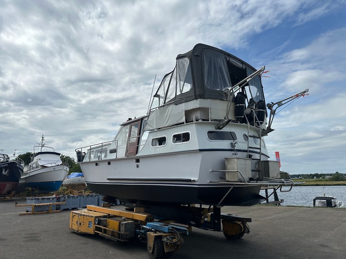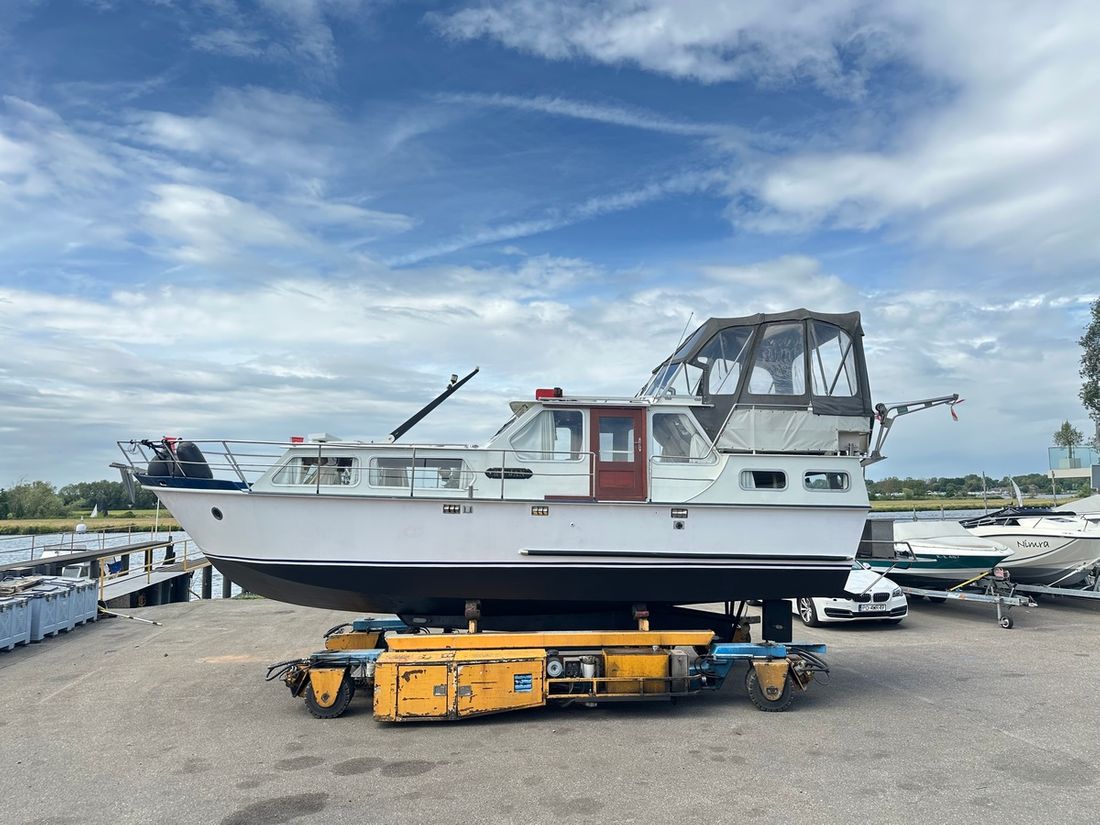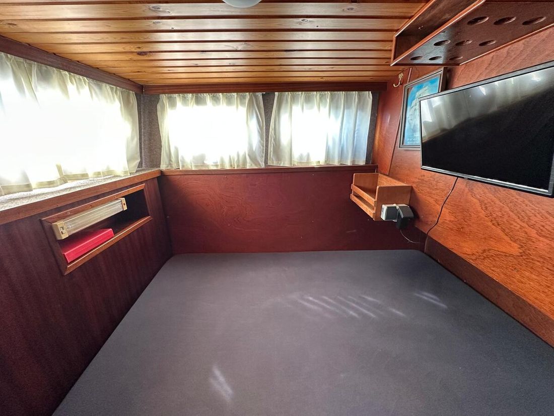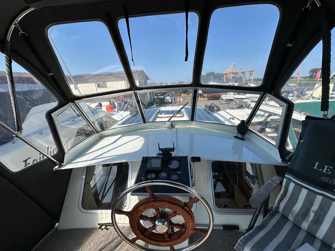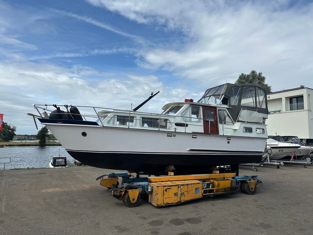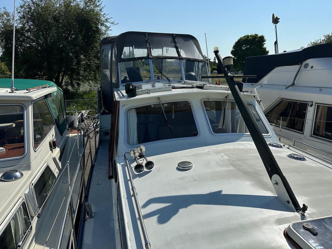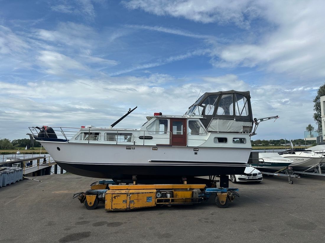 Nieuw geleverd Werf Hooveld, Nederland Romp, dek en opbouw Rompvorm knikspant Rompkleur wit Dek en opbouw kleur wit Dek en opbouw materiaal staal Achterkajuit (AK) Ramen in aluminium Afmetingen en gewichten Kruiphoogte 220 cm Waterverplaatsing 6000 kg Besturing en driftbeperking Besturing stuurwiel Plek besturing dubbel Roer enkel -