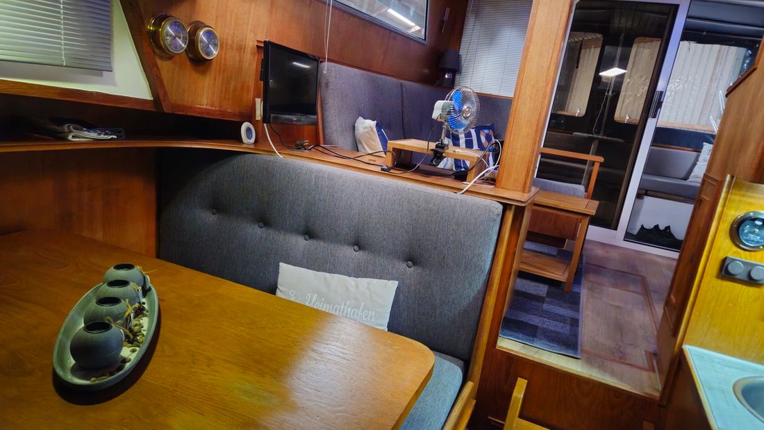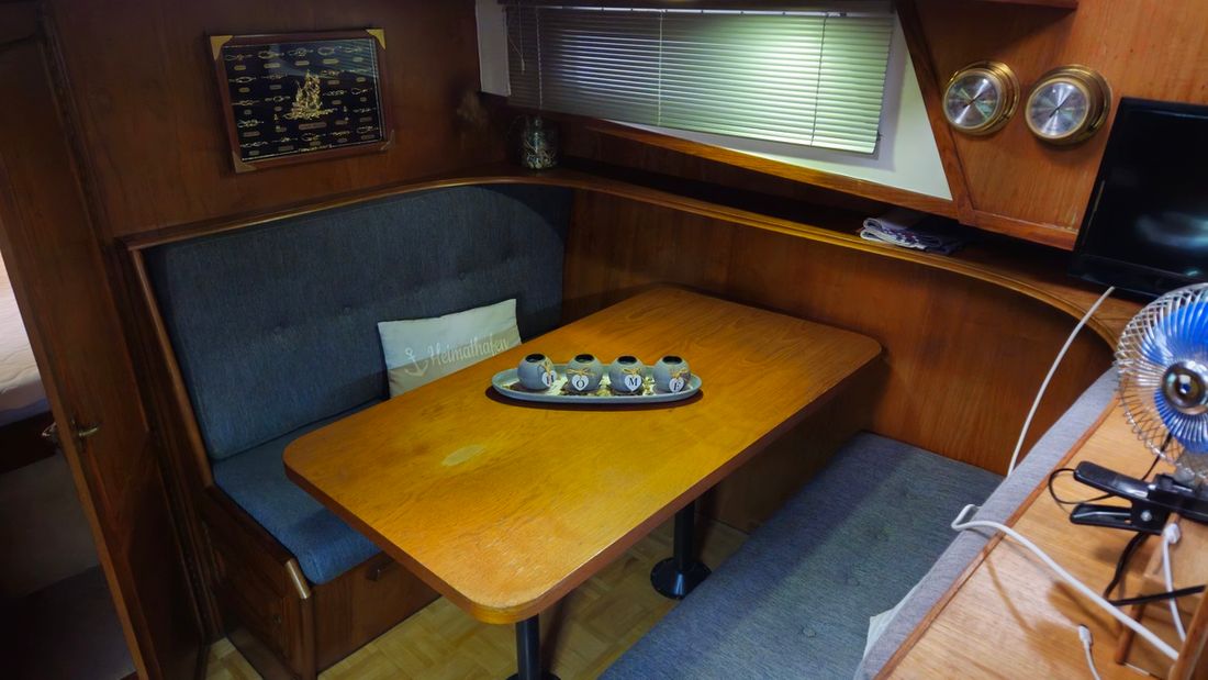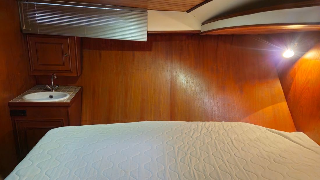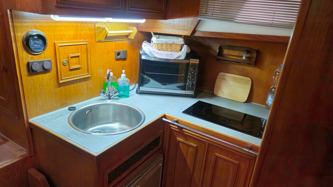 Ruimtes Salon Eethoek Machinekamer Hutten 1 Salon Indeling en verblijfsruimtes salon, keuken, toilet met douche, hut met 2 persoonsbed, eetgedeelte om te bouwen naar bed Aankleding Type interieur Klassiek, warm Opmerkingen Type interieur bekleding vernieuwd 2021 Kleur stoffering blauw Matrassen Kussens Gordijnen Water Watertank & materiaal Inhoud 600 liter Materiaal watertank staal Watertankmeter Inhoud 200 liter Materiaal vuilwatertank kunststof Vuilwatertank & materiaal Vuilwatertankmeter Vuilwatertank afvoerpomp Dekafzuiging vuilwater Watersysteem druksysteem Warm water Opmerkingen Warm water 20l Zeewaterpomp buitendouche Sanitair Aantal douches 1 Toiletten 1 Elektrisch Entertainment TV Keuken Kooktoestel & brandstof Opmerkingen Kooktoestel & brandstof Ceranfeld Aantal 2 Koelkast & voeding Opmerkingen Koelkast & voeding compressor vernieuwd in 2019 Vriezer Klimaatregeling Verwarming 1 hete lucht Opmerkingen Verwarming Webasto diesel -