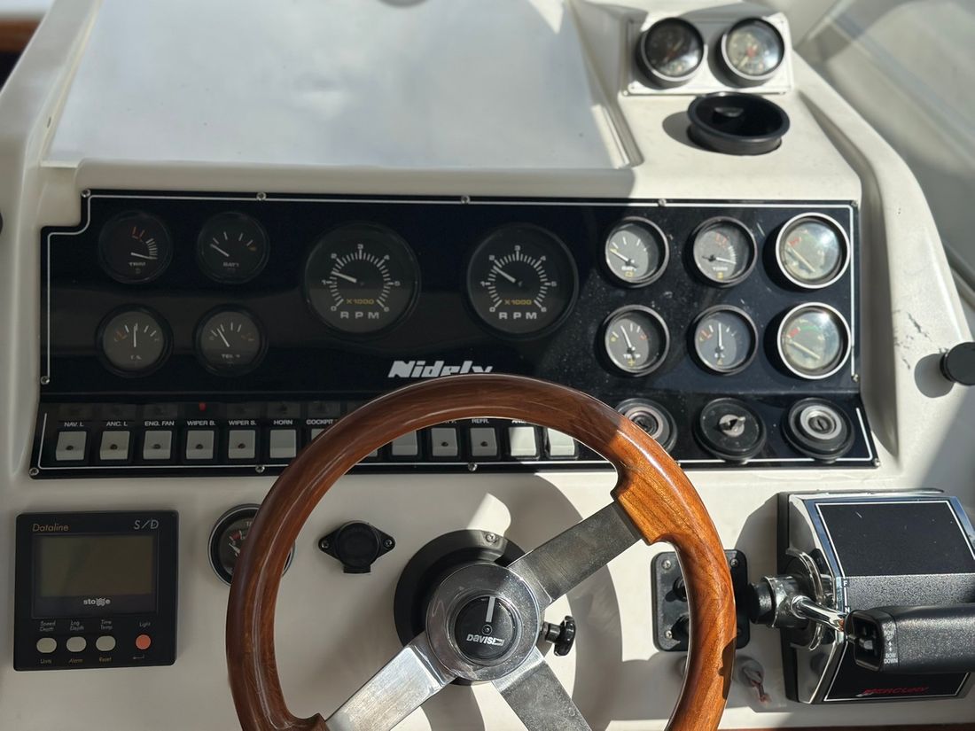 Motorisatie Aantal identieke motoren 2 Start type elektrisch Hoofdmotor Type binnenboord Merk Mercruiser Serienummer OD804960 en OD804948 Bouwjaar 1992 Vermogen 210 pk Urenteller Draaiuren 1050 Opmerkingen Draaiuren ( ongeveer ) Brandstof benzine Aandrijving Overbrenging hekdrive Voortstuwing schroef Tank Brandstoftank aantal Aantal 2 Totale inhoud brandstoftank(s) 240 pk Prestaties Max snelheid 65 km/h Elektriciteit Accu Aantal 2 Acculader Dynamo Walstroom Walstroomkabel 12V -