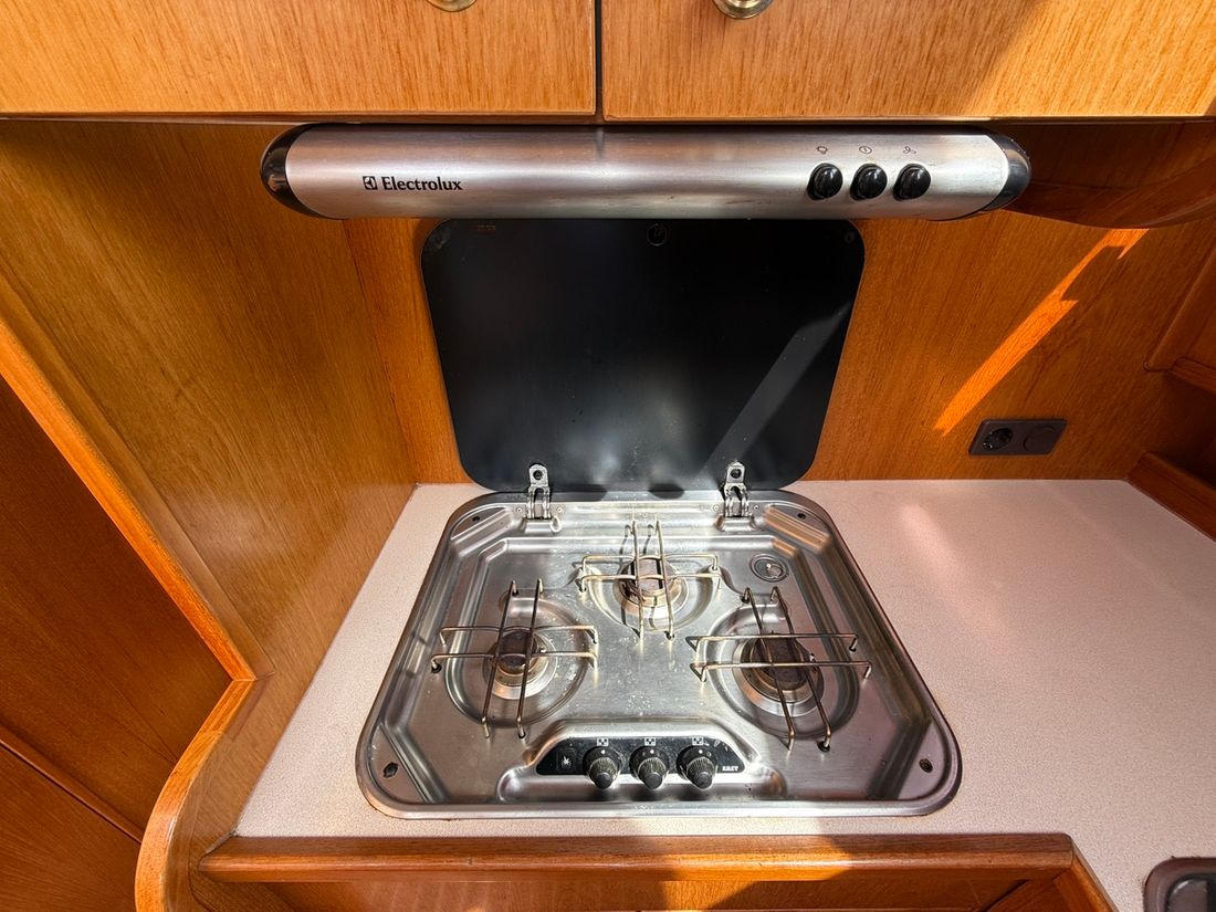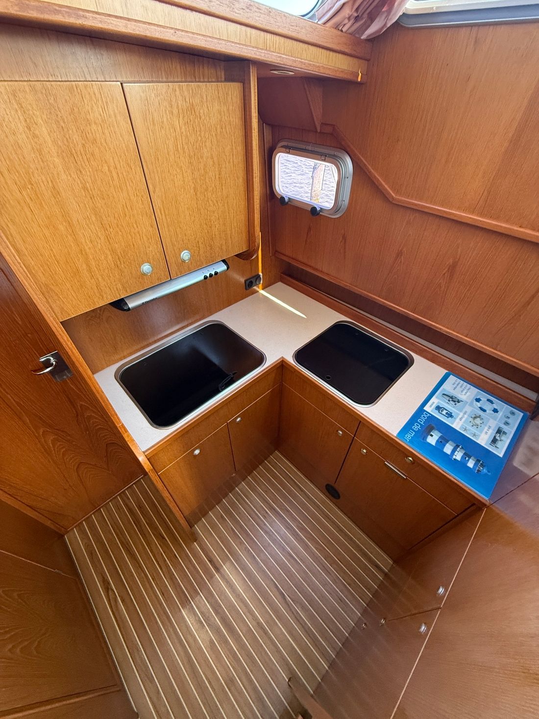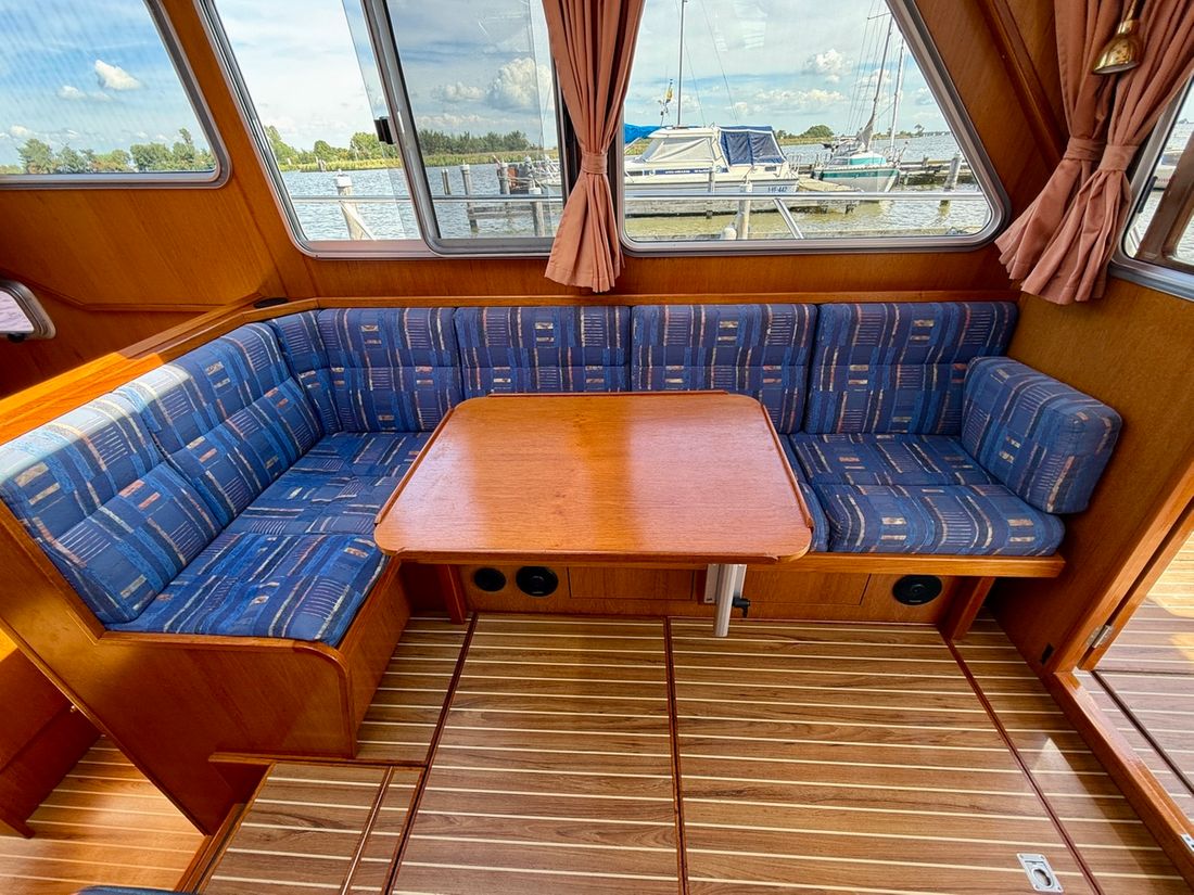 Ruimtes Salon Eethoek Machinekamer Opmerkingen Hutten 1 Salon Aankleding Type interieur Klassiek, warm Kleur stoffering blauw Matrassen Kussens Gordijnen Water Watertank & materiaal Inhoud 400 liter Inhoud 80 liter Vuilwatertank & materiaal Vuilwatertank afvoerpomp Dekafzuiging vuilwater Watersysteem druksysteem Warm water Opmerkingen Warm water 60 L boiler buitendouche Sanitair Aantal douches 2 Opmerkingen Aantal douches 1x binnen + 1x buiten Toiletten 1 Elektrisch Entertainment TV Radio/CD-speler DVD-speler Keuken Kooktoestel & brandstof Aantal 3 Kookbrandstof gas Oven Opmerkingen Oven Combi Severin Aantal 1 Magnetron Opmerkingen Magnetron Combi Severin Aantal 1 Koelkast & voeding Opmerkingen Koelkast & voeding Coolmatic MDC Voeding elektrisch Vriezer Opmerkingen Vriezer Vriesvak Klimaatregeling hete lucht Opmerkingen Verwarming Webasto 5000 in alle ruimtes Airconditioning Opmerkingen Airconditioning In de voorhut + uitblaas in keuken en salon -