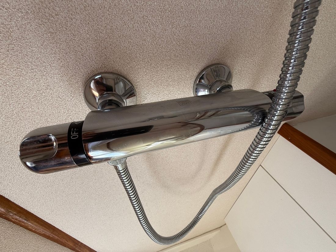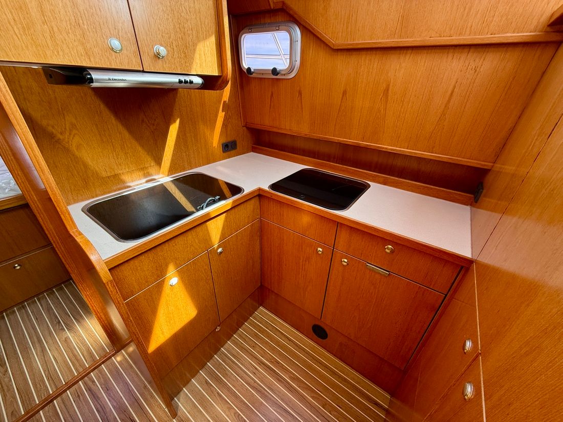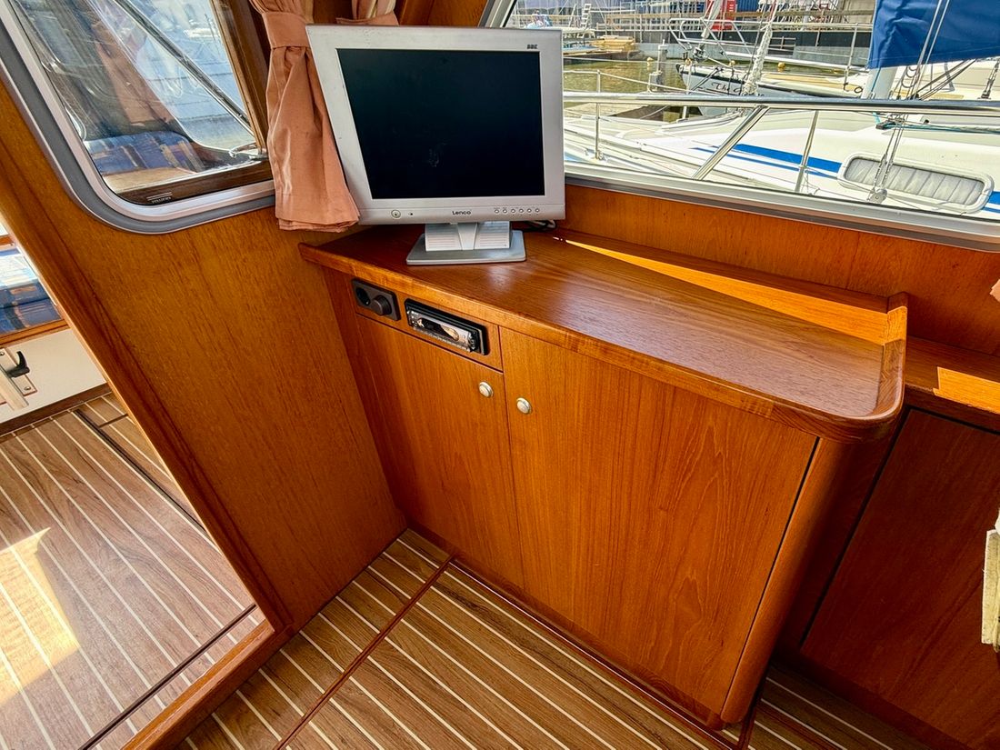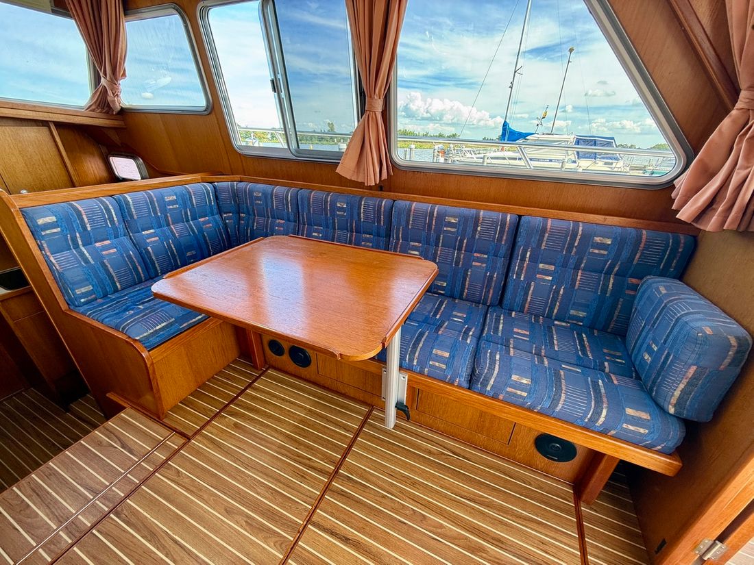 Ruimtes Salon Eethoek Machinekamer Opmerkingen Hutten 1 Salon Aankleding Type interieur Klassiek, warm Kleur stoffering blauw Matrassen Kussens Gordijnen Water Watertank & materiaal Inhoud 400 liter Inhoud 80 liter Vuilwatertank & materiaal Vuilwatertank afvoerpomp Dekafzuiging vuilwater Watersysteem druksysteem Warm water Opmerkingen Warm water 60 L boiler buitendouche Sanitair Aantal douches 2 Opmerkingen Aantal douches 1x binnen + 1x buiten Toiletten 1 Elektrisch Entertainment TV Radio/CD-speler DVD-speler Keuken Kooktoestel & brandstof Aantal 3 Kookbrandstof gas Oven Opmerkingen Oven Combi Severin Aantal 1 Magnetron Opmerkingen Magnetron Combi Severin Aantal 1 Koelkast & voeding Opmerkingen Koelkast & voeding Coolmatic MDC Voeding elektrisch Vriezer Opmerkingen Vriezer Vriesvak Klimaatregeling hete lucht Opmerkingen Verwarming Webasto 5000 in alle ruimtes Airconditioning Opmerkingen Airconditioning In de voorhut + uitblaas in keuken en salon -