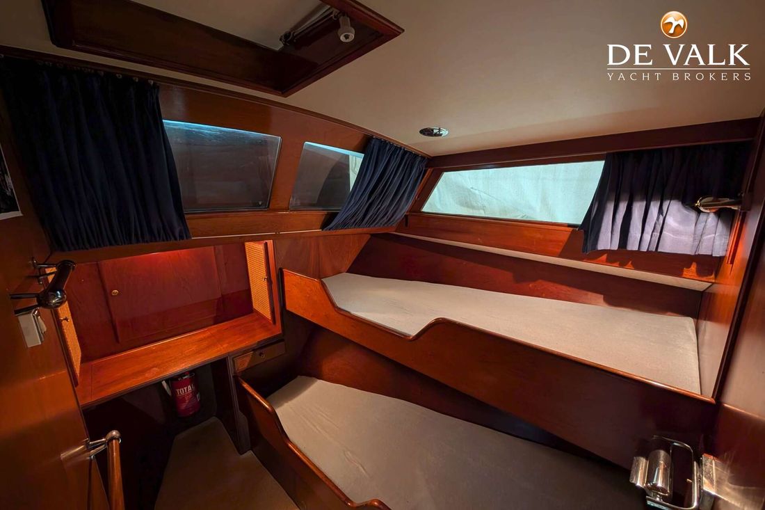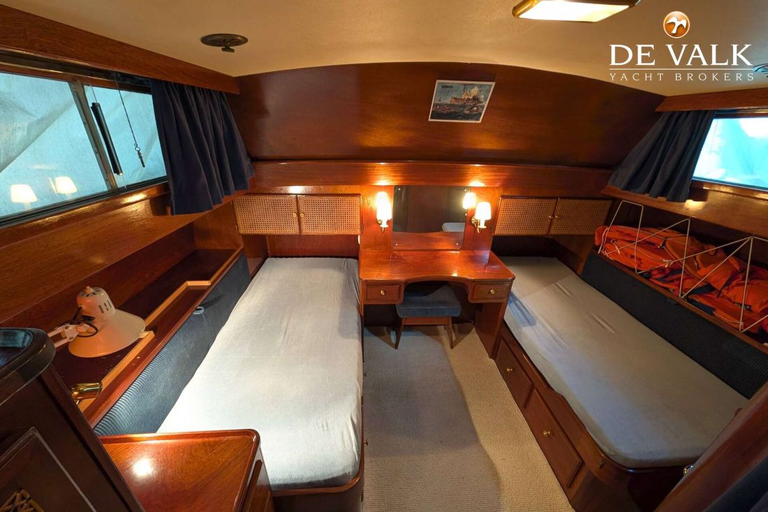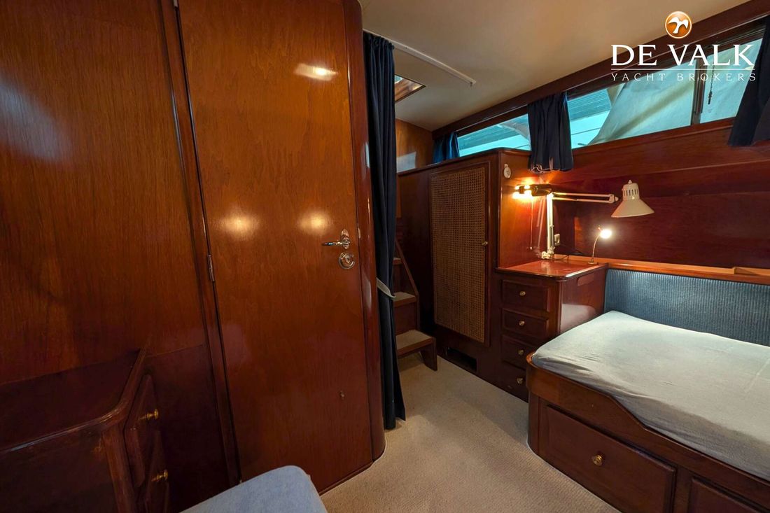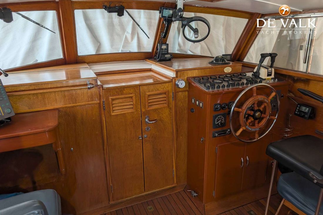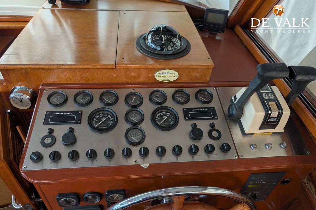 The Visch 45 Classic steel motor yacht was built by the renowned Visch shipyard in Warmond, Holland. Its classic hull lines and period-typical wooden superstructure give the motor yacht a special charm. Everything is in its original condition. The Volvo Penta engines were reinstalled in 1998, as were the propellers. In 1999, the engine room was newly soundproofed.