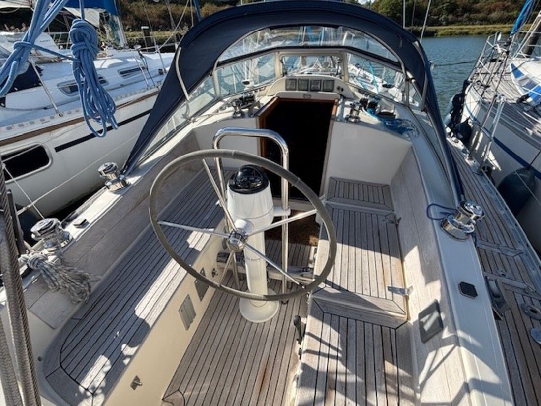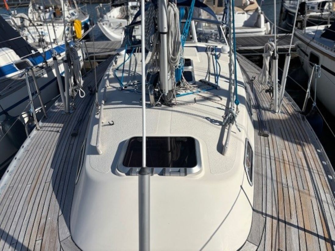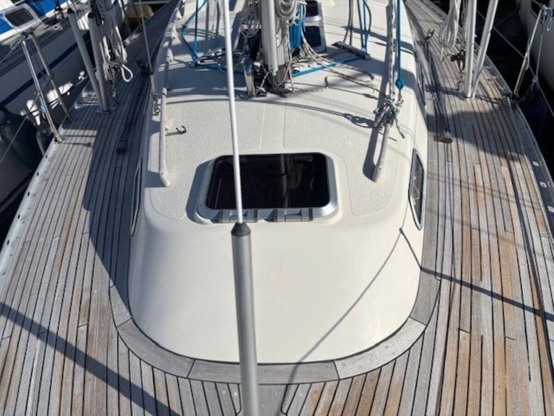 Nieuw geleverd Ontwerper German Frers Werf Hallberg Rassy Bouwnummer 42 CE A Romp, dek en opbouw Rompvorm rondspant Dek en opbouw materiaal polyester Afmetingen en gewichten Waterverplaatsing 4500 kg Besturing en driftbeperking Besturing stuurwiel Roer enkel Kiel/zwaard vaste kiel -
