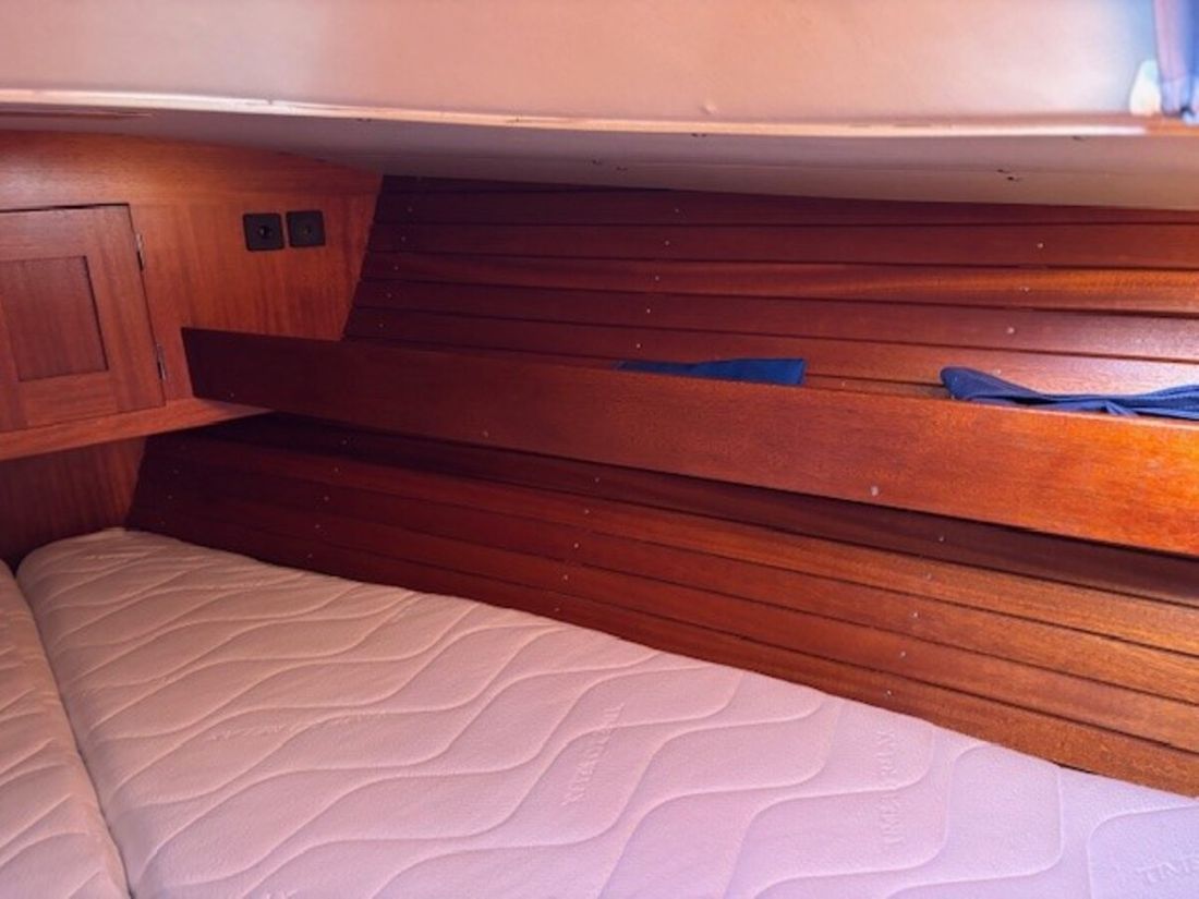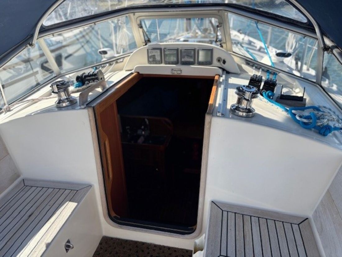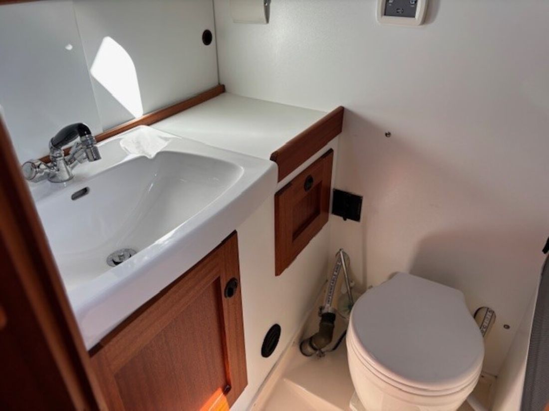 Met de luxe van een stuurstand en elektrische lieren op een 31 foot jacht voelt u direct hoe gemakkelijk en plezierig het zeilen kan zijn. De nieuwe dakluiken zorgen voor een zee van licht en frisse lucht in de kajuit, waar een vernieuwd toilet en sfeervolle LED-verlichting zorgen voor een eigentijdse en comfortabele sfeer. Alles ademt zorg en aandacht, waardoor deze boot méér is dan zomaar een Hallberg-Rassy ' het is een juweel dat klaarstaat om nieuwe avonturen te beleven.
