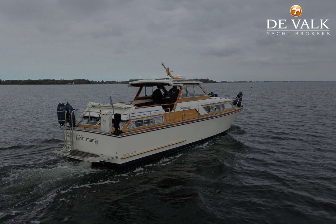 Very well maintained Storebro 34 Royal Cruiser called "Norman" built in 1983. The "Norman" is a great motor yacht to sail both inland and coastal waters. This Storebro 34 Royal Cruiser 34 is equipped with two strong and economical Volvo Penta diesel engines and a bow thruster. The interior has a new floor, diesel hot air heating, two cabins, etc.... In short, a very spacious classic motor yacht, also for longer stays on board.