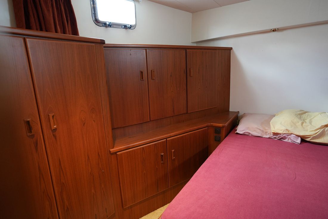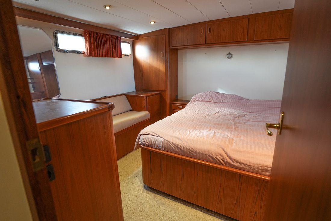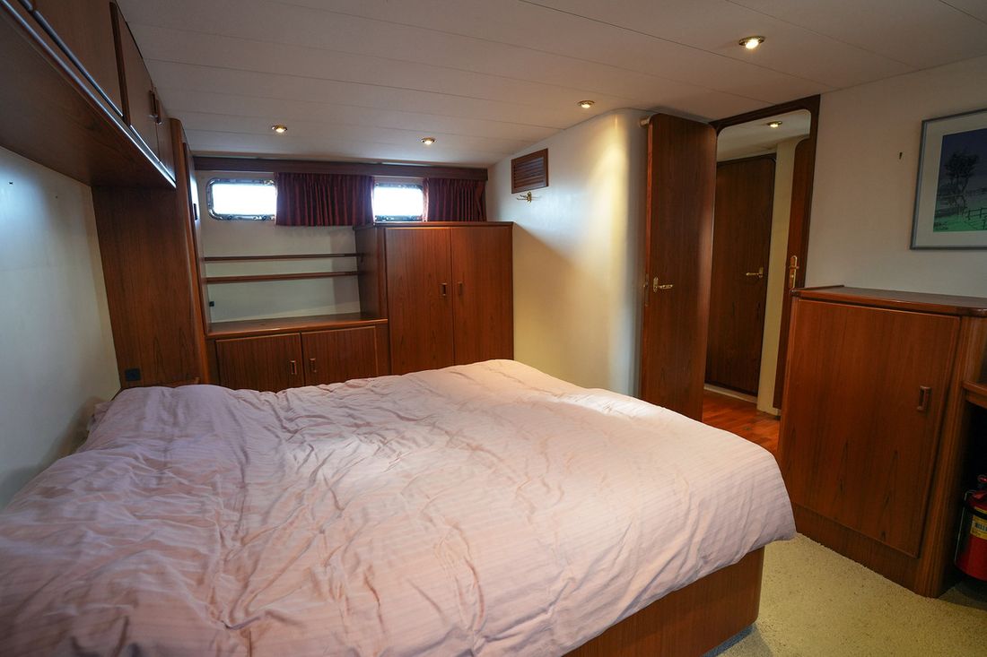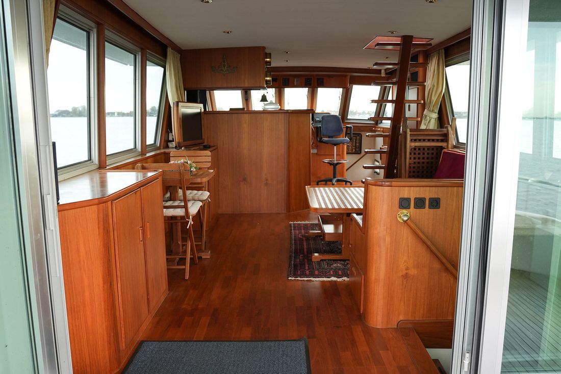 Mooi rondspant motorjacht waarvan het casco door de bekende werf Moonen is gebouwd waarna het door scheepswerf J. Kok is afgebouwd. Het schip is bijzonder ruim met een grote salon en keuken met rondom uitzicht en overdekt achterdek. Grote flyingbridge met ruimte voor de bijboot. Het teak betimmerde interieur is nog zeer netjes. Via een trap in de salon kom je in het achterschip waar de eigenaarshut is met badkamer en aparte gastenhut met stapelbed. Via de trap voor kom je in het vooronder met nog een ruime 2 persoonshut met eigen badkamer. Via de waterdichte deur in het vooronder komt u in de machinekamer met stahoogte. In 2018 is de volledige voorstuwing met schroefassen vervangen, daarnaast zijn er lithium accus' geplaatst met de nodige elektrische aanpassingen.